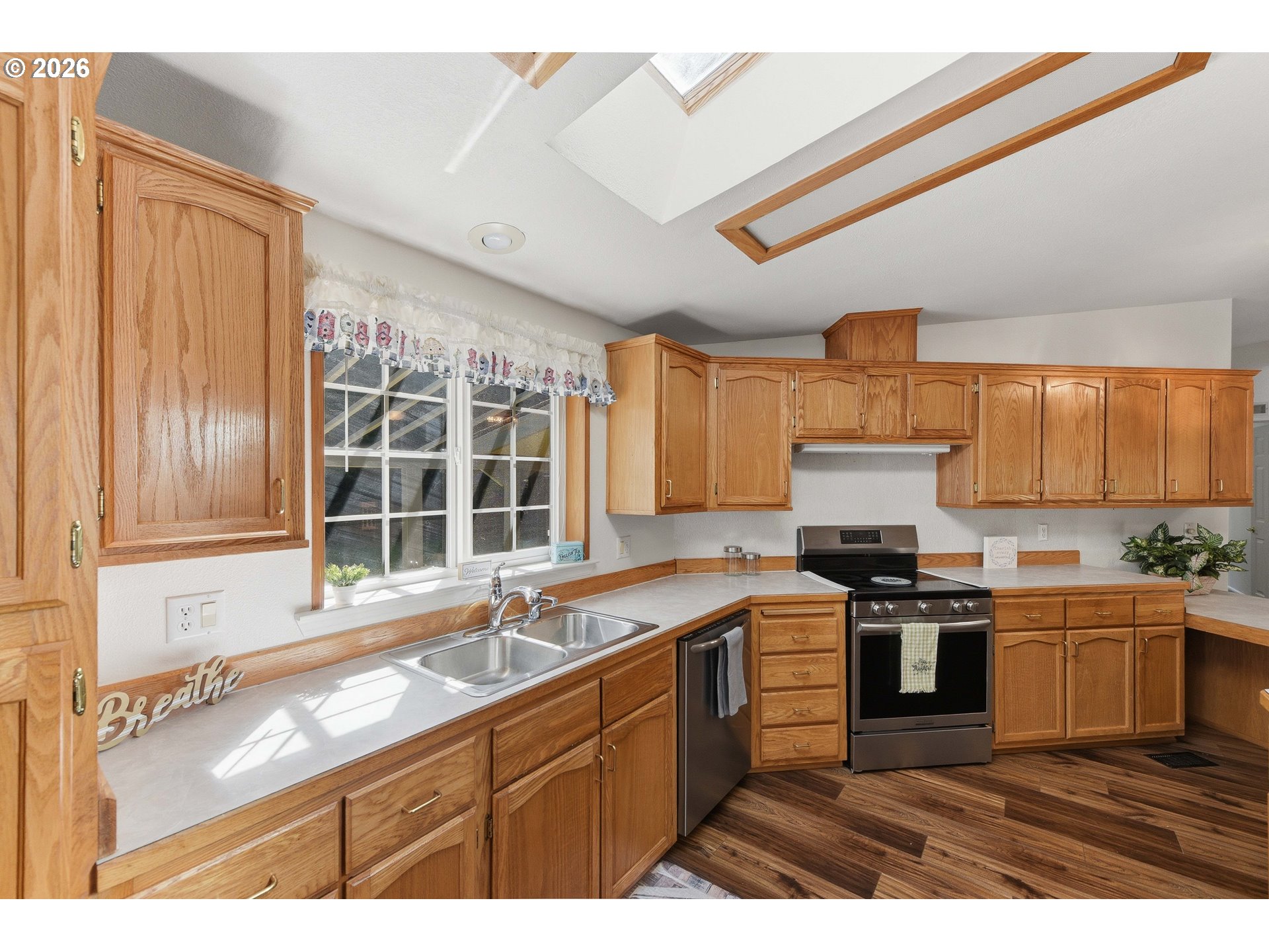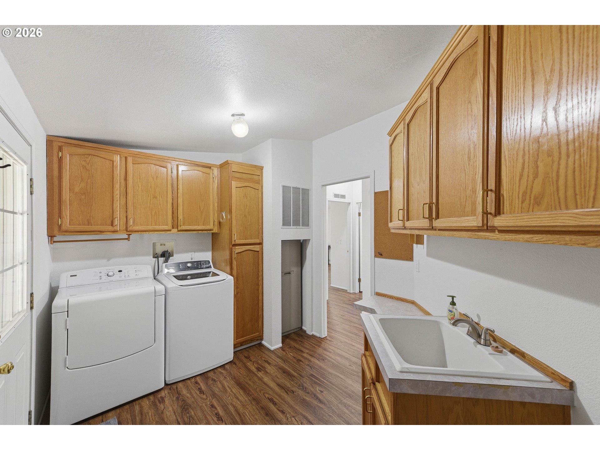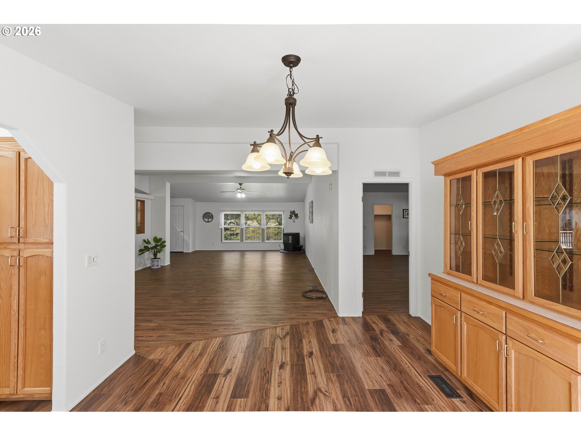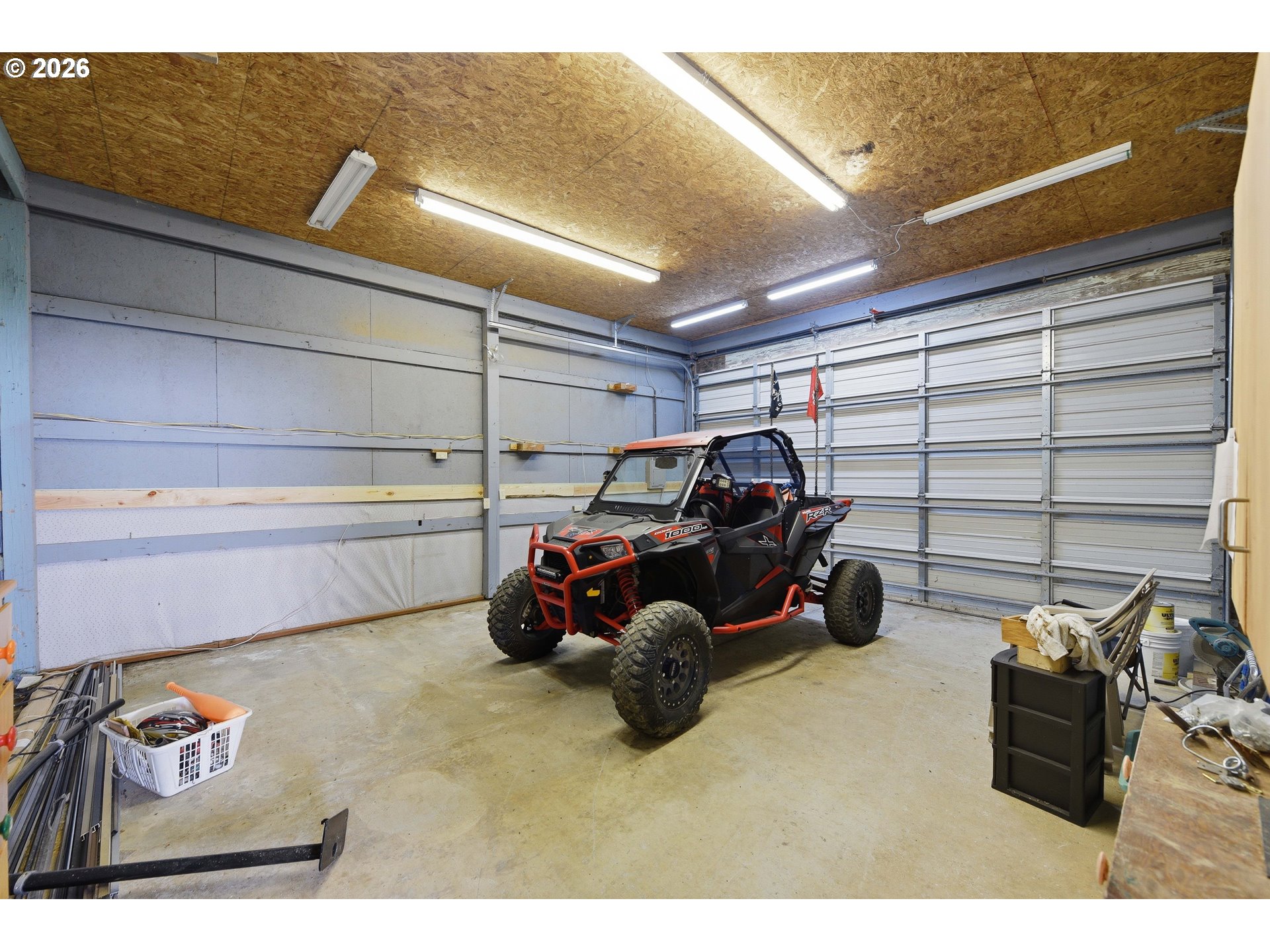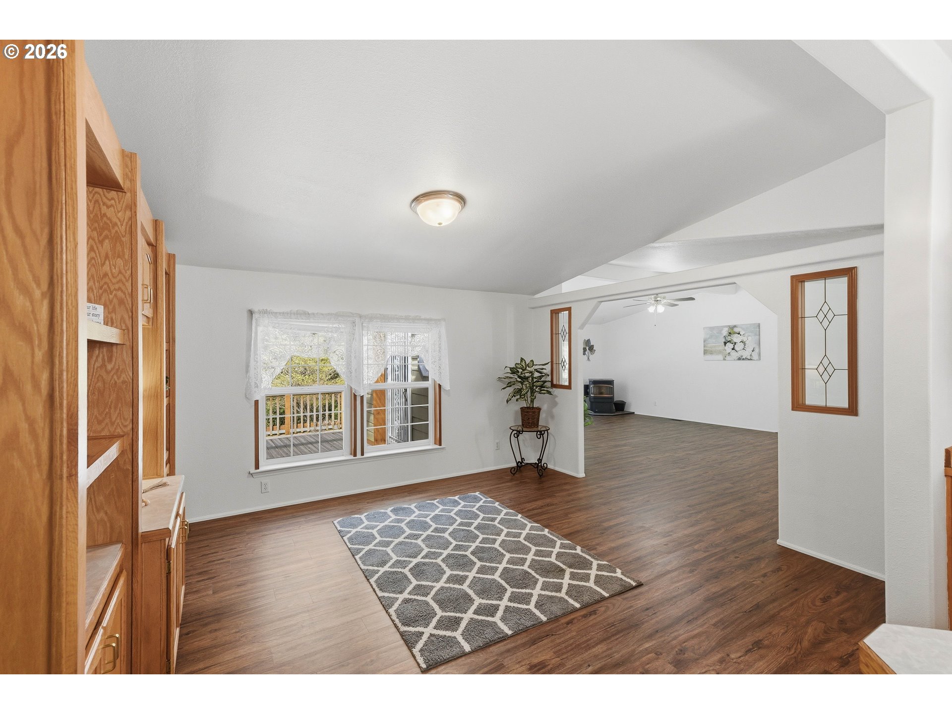 Peaceful and private retreat offering comfort and space on a beautifully maintained .94-acre lot. This 3-bedroom, 2-bathroom home spans 2,226 square feet and features an inviting layout with new waterproof plank flooring flowing through the spacious living area, dining space, and family room, all seamlessly connected to the kitchen and both front and rear decks. The freshly painted main gathering area includes a pellet stove, creating warmth and ambiance, while the dining and family spaces showcase attractive built-ins with illuminated shelving. Designed for convenience, the floor plan supports easy single-level living, highlighted by a generously sized primary suite with an en-suite bath featuring a walk-in shower, dual vanities, and a soaking tub. Just outside the laundry area, you will find a freshly updated bonus room also with new flooring offering flexibility for hobbies, craft projects, or workspace for gardening. Outdoors, the mature landscaping enhances the serene setting, complemented by an 2 expansive decks ideal for entertaining or unwinding. A substantial 1,536-square-foot shop includes a concrete floor, 220-volt power, and an upper-level storage area, providing ample room for tools, equipment, boat, or recreational vehicles. Additional covered parking is available in the carport, complete with RV or electric vehicle charging outlet.