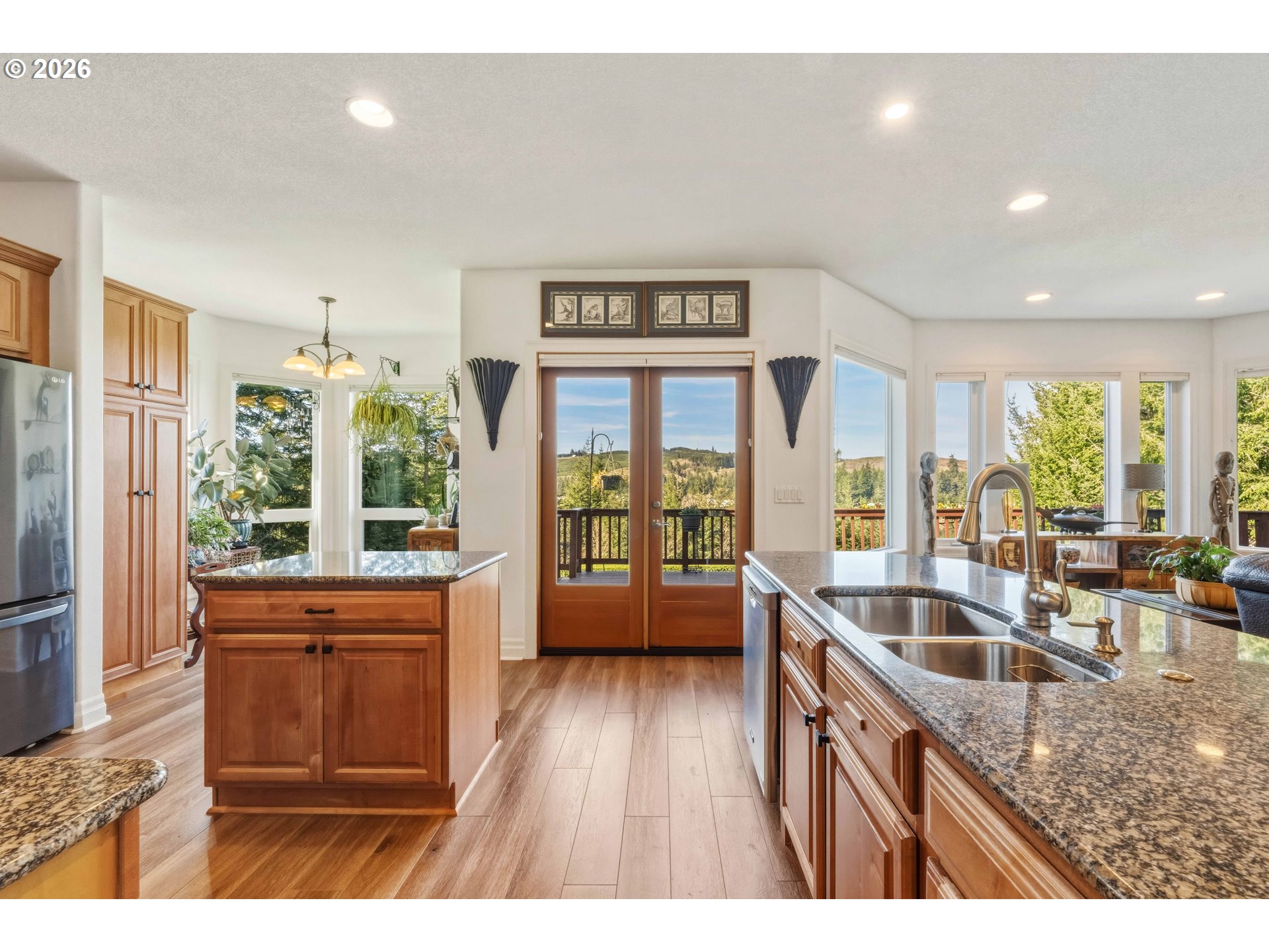 (503) 893-8874Tucked away at the end of the road in a gated community, this beautifully maintained 3-bedroom, 2.5-bath home offers the perfect blend of privacy, comfort, and scenic beauty. Set on 2.18 acres, you’ll enjoy peaceful surroundings paired with captivating water views from your main living spaces and outdoor areas. Inside, the open-concept layout is ideal for both everyday living and entertaining, featuring a spacious kitchen with granite countertops, stainless steel appliances, and seamless flow into the living and dining areas. A cozy gas fireplace anchors the space, while direct access to the deck and pristine yard invites effortless indoor-outdoor living. The primary suite is a true retreat, complete with a spa-like bathroom featuring a walk-in tiled shower and soaking tub—perfect for unwinding after a long day. Step outside to a thoughtfully designed, south-facing terraced lower yard—ideal for gardening - or the upper yard which is fully fenced/gated and is ideal for pets, or collecting the many colorful blooms for your vases. Enjoy the soothing sounds of a cascading waterfall feature, patio spaces, a fully fenced and gated upper yard, and mature, vibrant landscaping that creates a private oasis. Spacious garage with ample storage, and generator. Generous parking for guests, RVs, and/or toys. Propane BBQ hookup for easy outdoor entertaining. This is a rare opportunity to own a peaceful, view-filled property with space, privacy, and move-in-ready comfort.