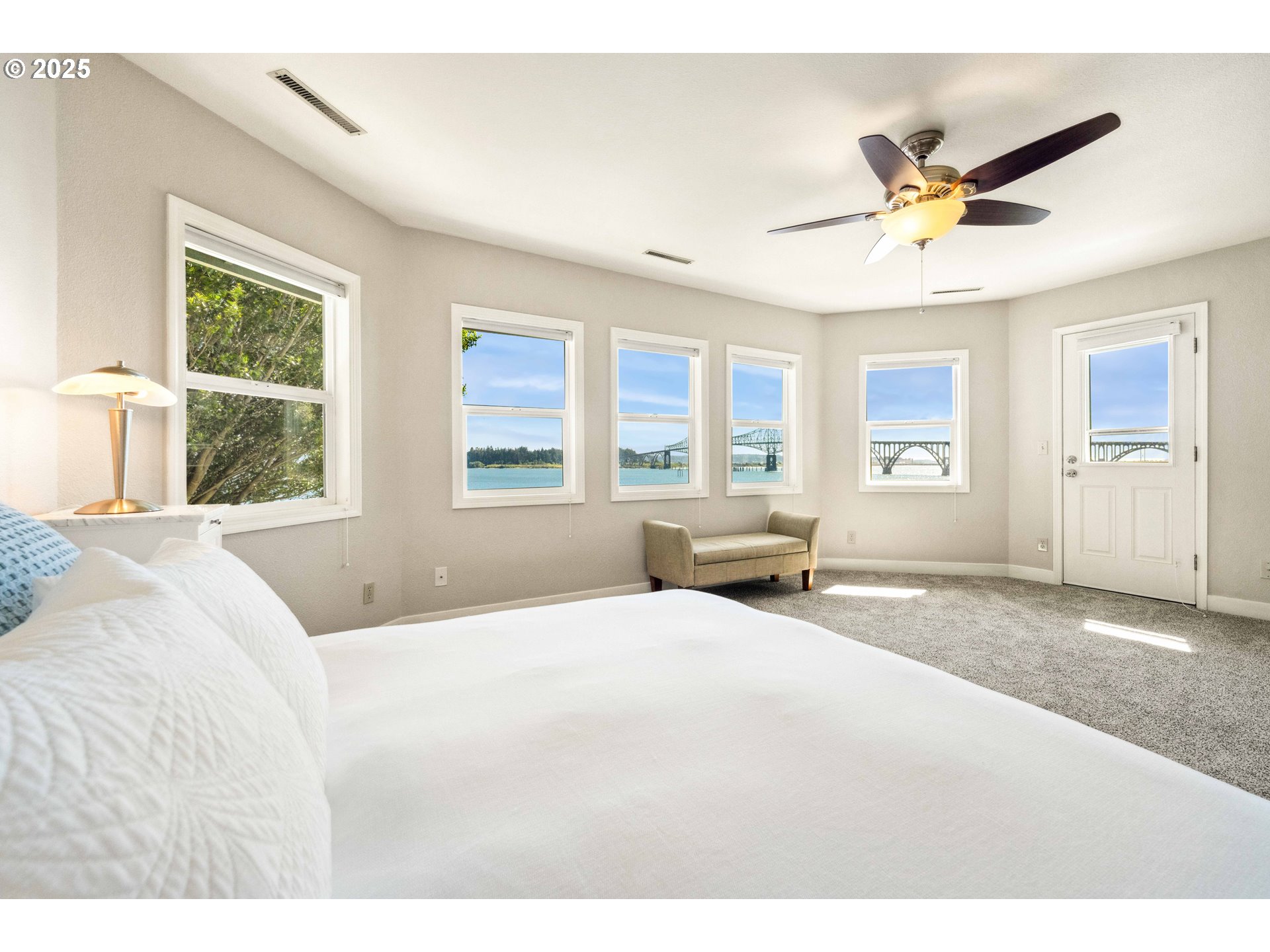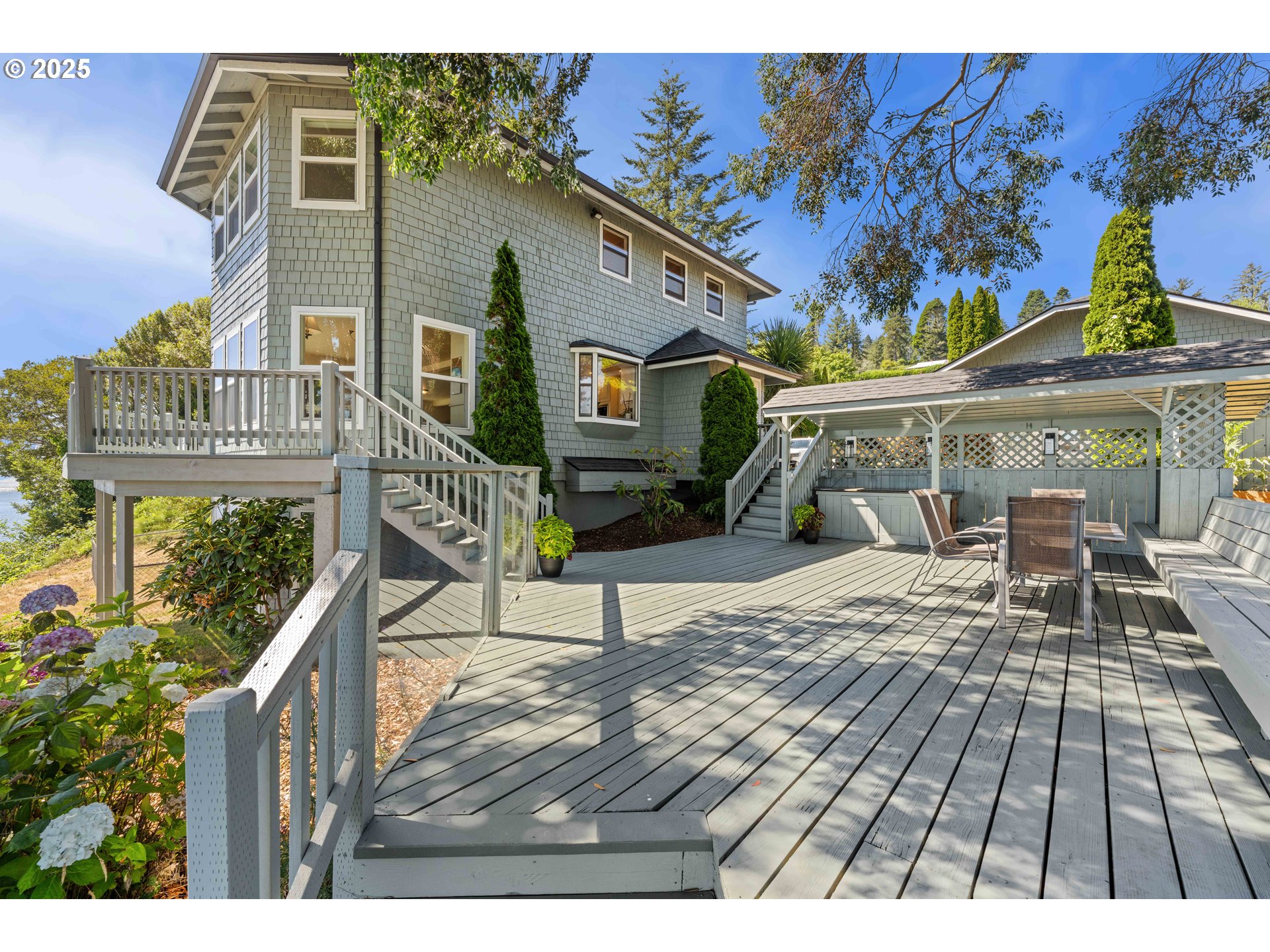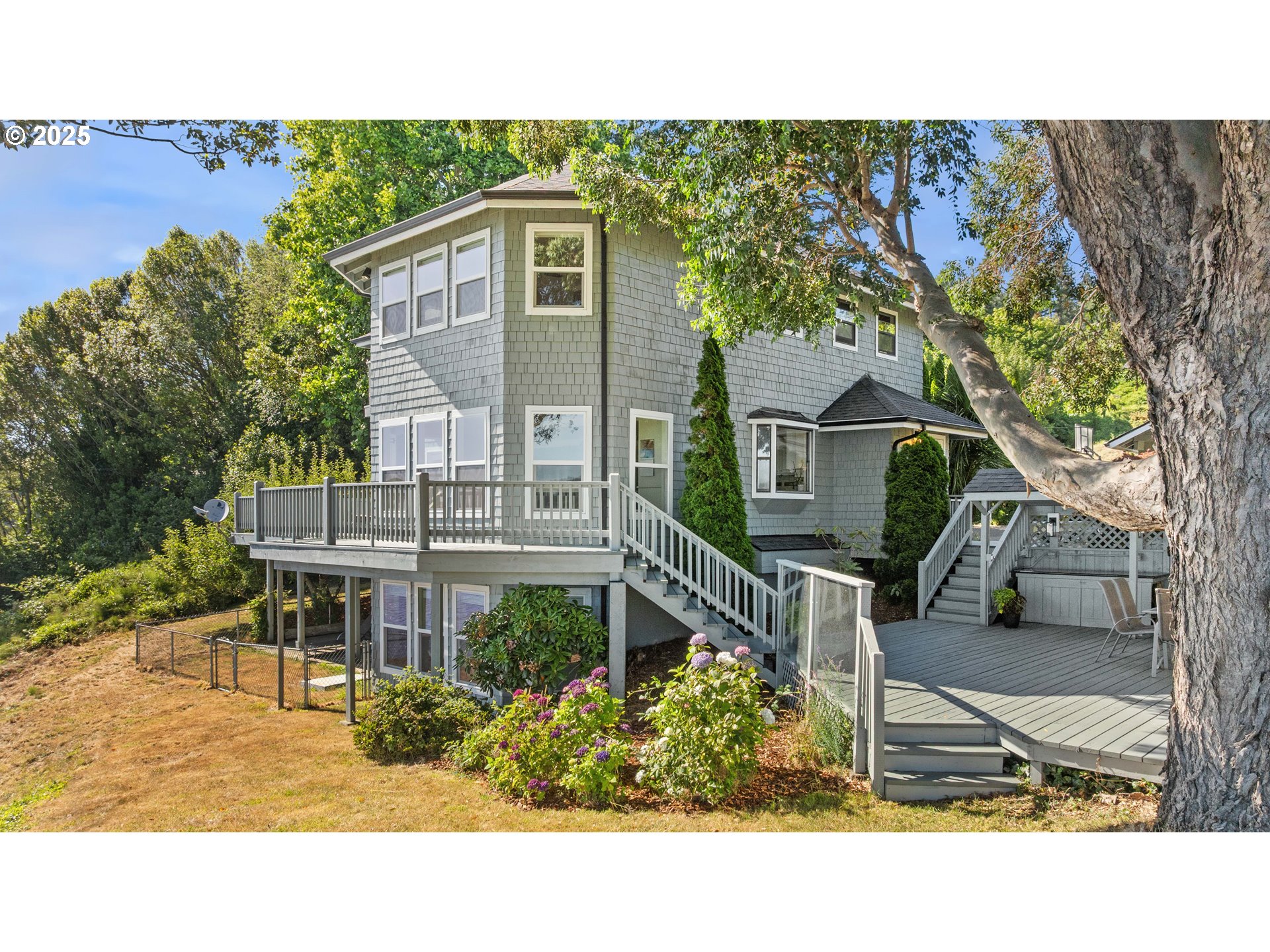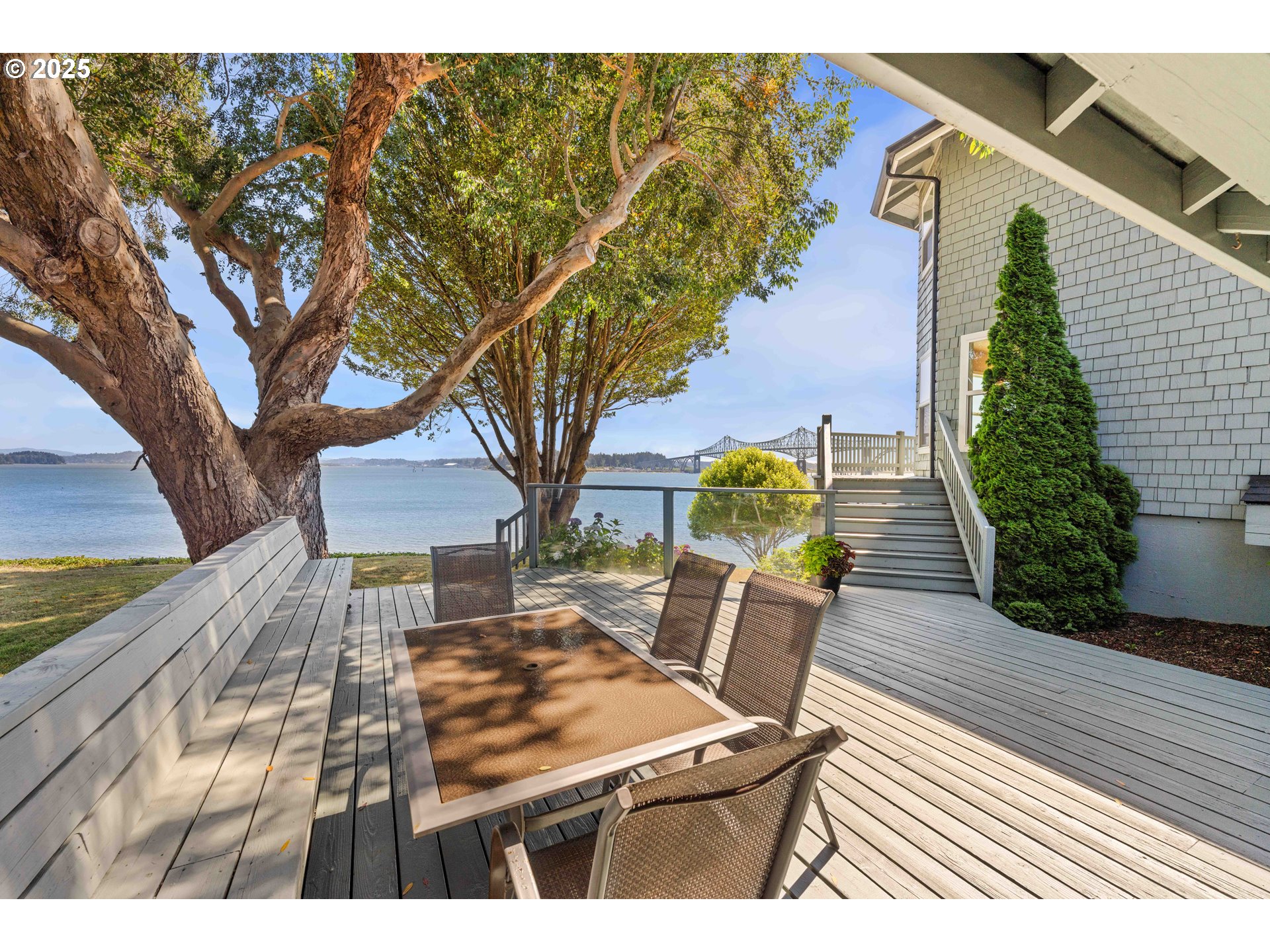 Once-in-a-Lifetime Waterfront Views – Wrapped in Warmth, Elegance & Comfort. There are views… and then there are these views. Perfectly perched above the bay yet right at the water’s edge, this stunning custom home offers a front-row seat to nature’s masterpiece — bridges, boats, sparkling city lights, and dramatic coastal skies. Thoughtfully designed, it blends high-end finishes with inviting warmth, creating a space that’s both luxurious and livable. Upstairs, the dreamy primary suite is your personal sanctuary, complete with jaw-dropping water and bridge views, a private balcony, spa-inspired ensuite with clawfoot tub, walk-in shower, and generous walk-in closet. Two additional spacious bedrooms, a stylish full bath, and a laundry room complete the upper level. On the main floor, the heart of the home features an open kitchen and dining area with custom cabinetry, Dacor propane cooktop, double ovens, island, trash compactor, travertine floors and pantry. The cozy living room—with a propane fireplace insert and wall of windows—flows out to a spectacular deck setup: a large entertaining deck that connects to a wraparound deck and a charming, covered porch, all overlooking the stunning scenery. Step into the backyard oasis with lush lawn, vibrant plantings, and a covered BBQ area with built-in propane hook-up—ideal for gatherings or peaceful sunset moments. A detached triple garage with electric openers, ductless heat pump, and covered side storage completes the package. All set on ¾ of an acre in the sunny and sought-after Glasgow neighborhood—this is more than a home. It’s your view-filled escape, your coastal dream come true.