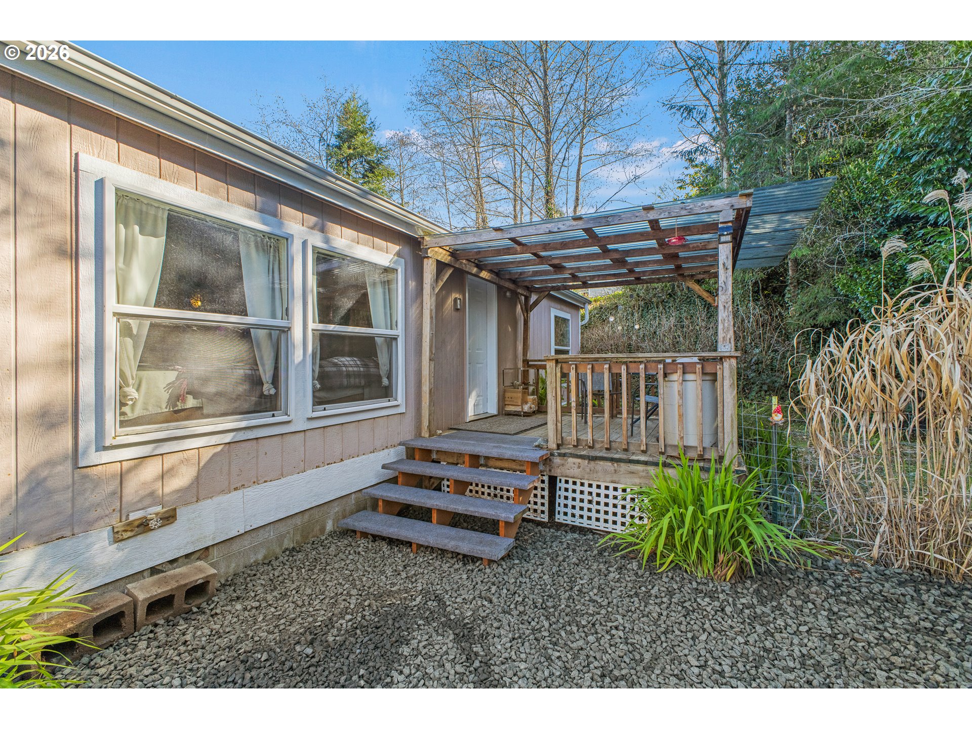 (503) 893-8874Welcome home to this spacious manufactured home perfectly situated on a corner lot in beautiful Coos Bay. Perched on a hill you get a water view of the Slough below. The interior boasts a large open floor plan featuring both a living room and a family room, anchored by a kitchen that feels "fresh and fun" with freshly painted cabinetry and a stylish butcher block countertop. The layout includes three bedrooms and two baths, highlighted by a big primary suite with a private bathroom and a relaxing jet tub.The outdoor amenities are just as impressive, offering a covered deck, a peaceful water feature, and a fully fenced yard ready for your pets or hobbies. This property is complete with a chicken coop and run, a dedicated tool shed, and lots of parking. A low maintenance yard make it a gardeners dream. Don't miss out on this unique find—watch the video tour and call today to schedule your showing!