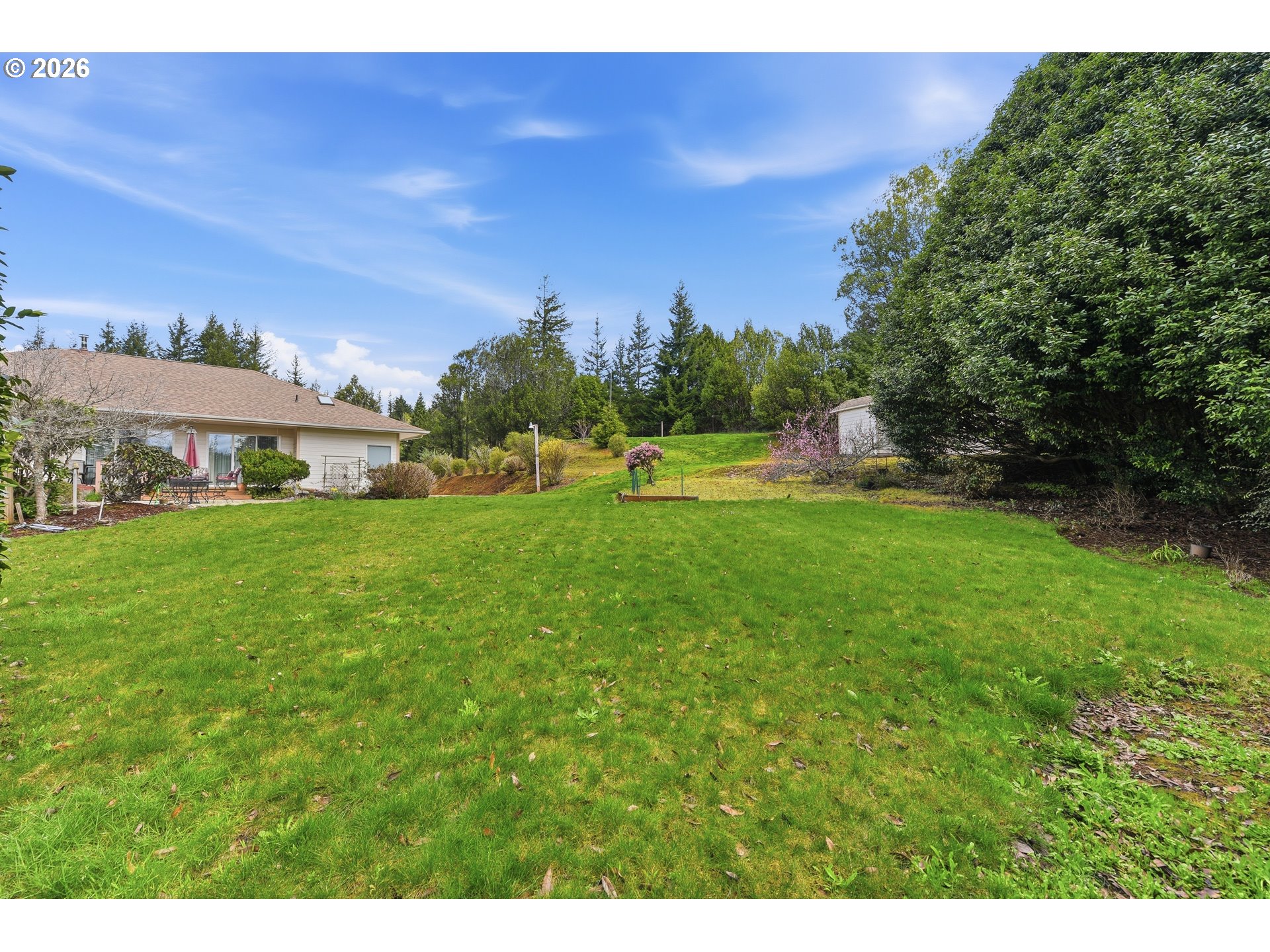 Pride of ownership shines throughout this beautifully maintained 2-acre estate in Quail Meadows, one of Coquille’s most sought-after communities. This one-level home offers a fantastic layout with 3 bedrooms, 2.5 bathrooms and an additional office space off of the dining room, along with dramatic high ceilings, tall arched windows, formal living and dining areas and a spacious great room with a cozy wood stove. The kitchen is both functional and inviting with granite countertops, stainless steel appliances, a gas range, island, skylights and vaulted ceilings that bring in great natural light. The primary suite is a true retreat with a slider leading out to the covered porch, an oversized walk-in closet and an attached en-suite bath boasting dual sinks, jetted tub and separate walk-in shower. Down the hall you will also find two generously sized guest bedrooms, a full bathroom and a large laundry room with tons of storage. There is also a convenient half bath located in the 846 SqFt. 3-car garage. Outside, this property is a gardener’s dream. The fully fenced 2-acre setting features an electric gate at the entrance, beautiful landscaping, raised garden beds, grapes, berries, fruit trees, valley views, a covered porch, flagstone patio and a peaceful water feature out back. There is also tons of parking for RVs, boats, trailers, toys and all the extras, giving you the space and flexibility that is hard to find. The roof was installed in 2016 and is a lifetime 50-year roof, adding even more value and peace of mind. This is a rare opportunity to own a standout property in one of Coquille’s finest residential areas. Check out the video tour and schedule your showing today!