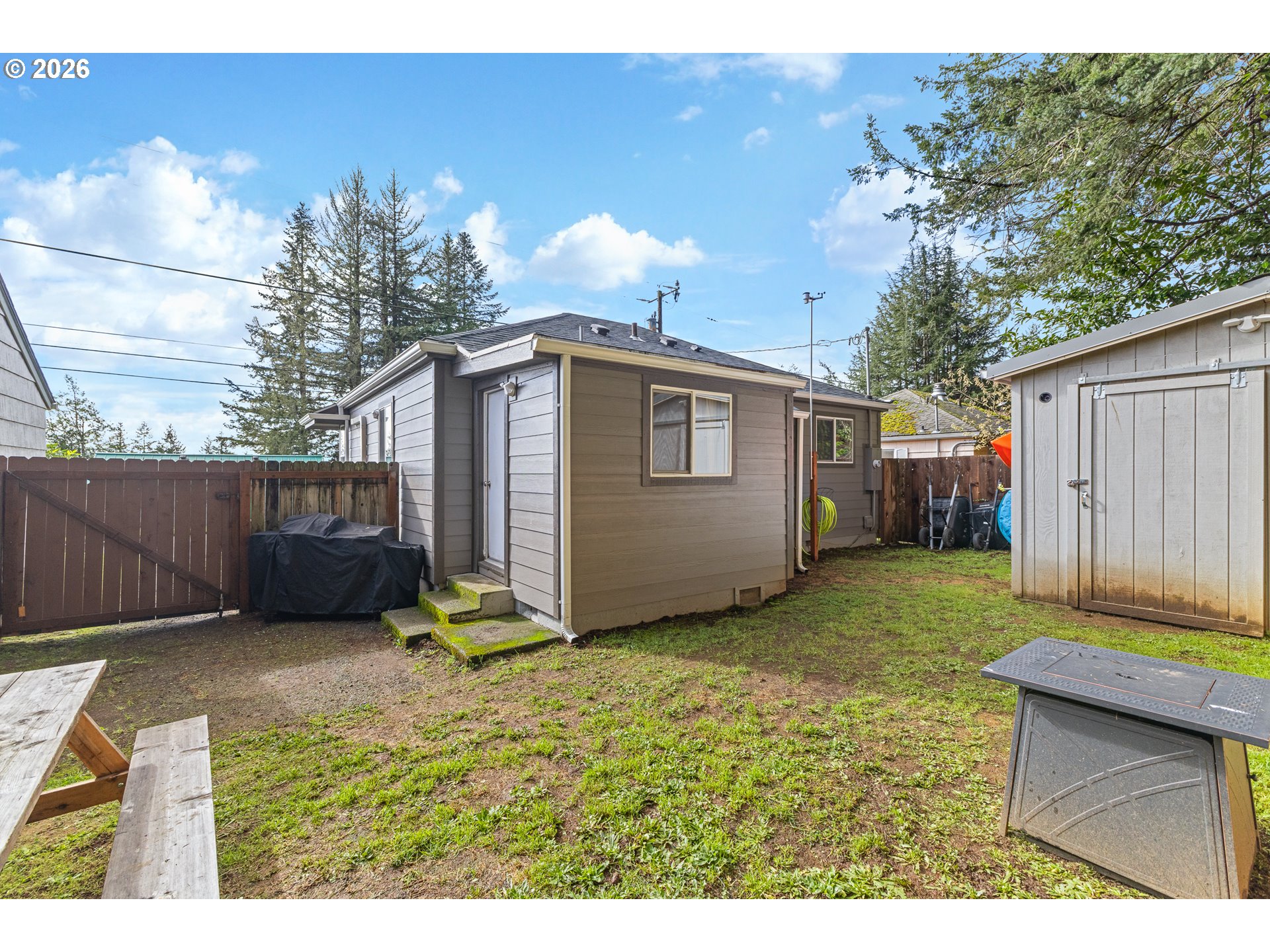 This could be the one! Charming 2 bedroom/1 bath home with nice updates for comfortable living and great location in Coquille! Updates include: mini split with 2 heads 2025, new flooring in kitchen and laundry 2024, new upgraded kitchen appliances Fall 2025, new exterior siding and paint 2024, storage shed/shop 12x12 in backyard new in 2022, and new backyard fence 2025. Call for a showing today. Listing agent is related to seller.