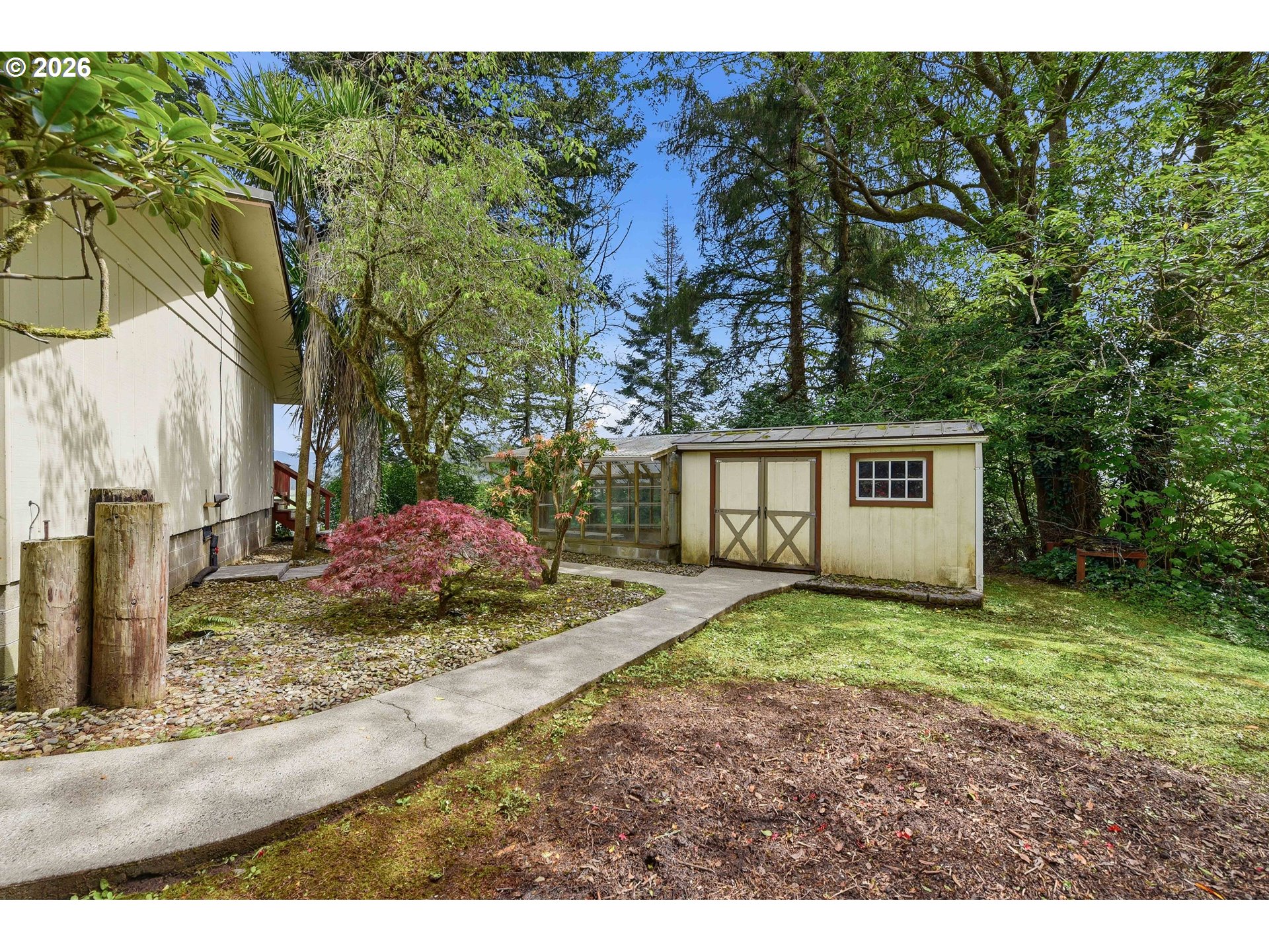 Welcome to this spacious and inviting ranch-style home, offering 3 bedrooms, 2 bathrooms, and 2,292 square feet of comfortable living space on a generous 0.78-acre lot in the highly desirable Timber Park neighborhood. Designed with both everyday living and entertaining in mind, the home features a large family room, a separate living room with a cozy fireplace, and an spacious dining room complete with a pellet stove, beautiful views of the river and double sliding glass doors that lead to a sprawling deck overlooking the Coos River, perfect for relaxing or hosting gatherings.The primary suite is complete with an updated en suite bathroom featuring a beautifully tiled walk-in shower. Comfort is enhanced year-round with a brand-new furnace, and the durable metal roof adds long-term value and peace of mind.Outside, enjoy mature landscaping along with a greenhouse and tool shed, providing both charm and functionality. An oversized two-car garage offers plenty of room for parking, storage, or hobbies.Combining single-level convenience, generous living space, and a picturesque scenic setting, this property is a rare opportunity to enjoy tranquil living surrounded by natural beauty.