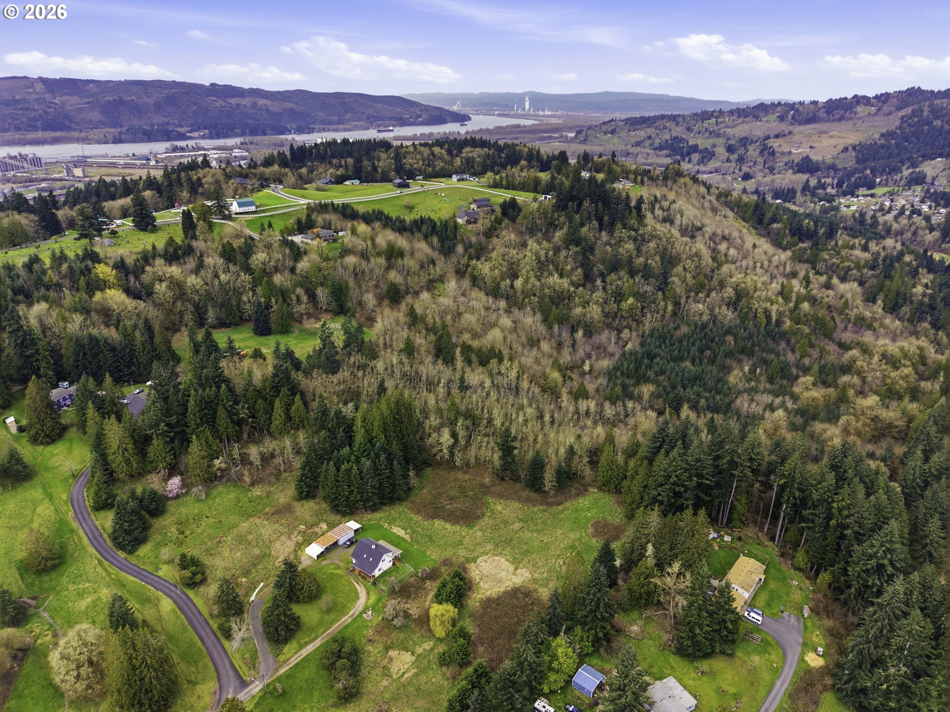 Rare 20-acre opportunity in Kalama, WA — four contiguous 5-acre parcels with rolling terrain, sweeping territorial views, privacy, trees, streams, and abundant natural light. Kalama is one of SW Washington's fastest-growing communities, with a booming port, new schools, and expanding business parks — get in before values climb further. Only 5 minutes to downtown Kalama and I-5, under 35 minutes to PDX. Access established with a clean easement; power nearby. Perfect multigenerational estate or smart land investment with equity on day one. Well and septic needed. Shown by appointment only — use 709 Spencer Creek Rd and follow the signs. Park in 709 driveway and walk down.