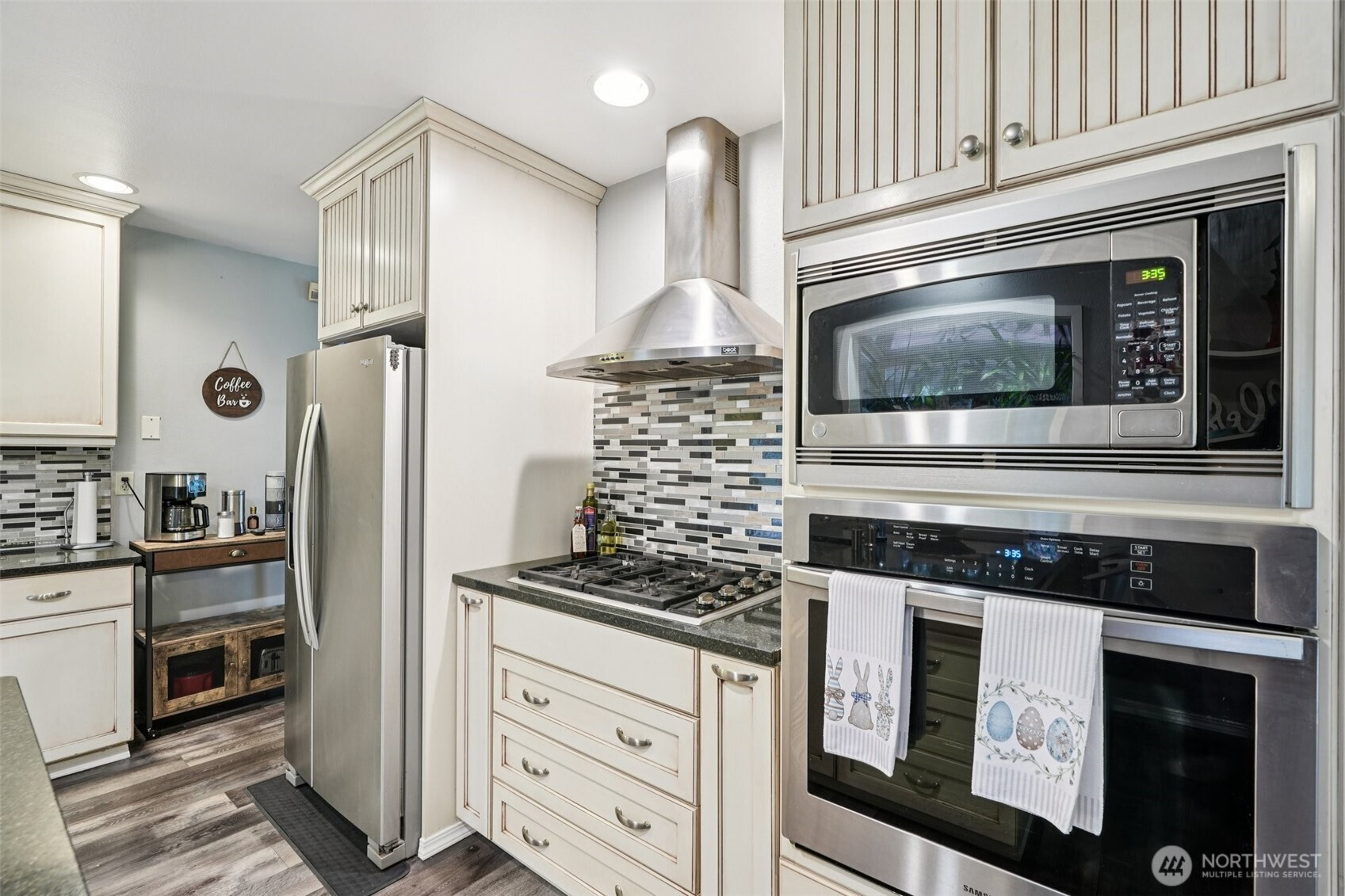 Welcome to this beautifully remodeled NW Contemporary tri-level home in Longview! Well-maintained home features 4 bedrooms and 2 baths, with soaring vaulted ceilings in the living/dining area. The main living room features a gas fireplace and ample natural light. Updated kitchen with newer appliances, gas cooktop, built-in oven, quartz counters, and garden window. The primary suite has a cozy gas stove, a built-in bookcase, and desk/sitting area. Great room downstairs with a gas stove is a perfect media room, bring the popcorn! Lovely bath with soaking tub and walk-in shower. Newer carpet/LVP. New roof in 2018, new furnace in 2016. Stunning outdoor entertainment area with gorgeous rock fireplace, large covered deck, and pond! Covered RV area. Too many features to list, this home is a must-see!