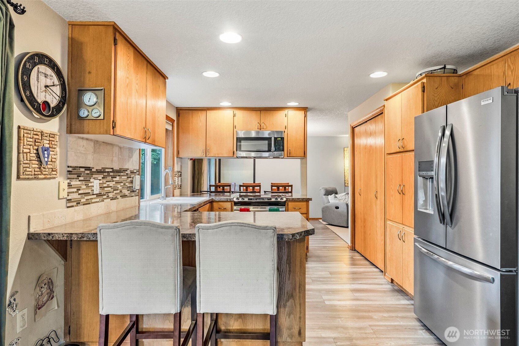 Come see this updated 1850 sq ft, 3bd 2.5 bath Home situated in the desirable Lexington area of Kelso near I-5 and many amenities. Home features new roof, newer flooring, paints, trims, fixtures, and more. The living room, kitchen, and dining room flow together very well. The Primary en-suite is spacious with a large walk in closet, propane fireplace, and updated bathroom. A/C heatpump for added efficiency and a wood burning stove on main floor to cozy up to when needed. Outside you will enjoy a covered back deck, a fenced back yard, and well maintained landscape. There is an enclosed carport for additional storage and the the attached garage also has a wet bar in it! This home is very clean and ready for you!