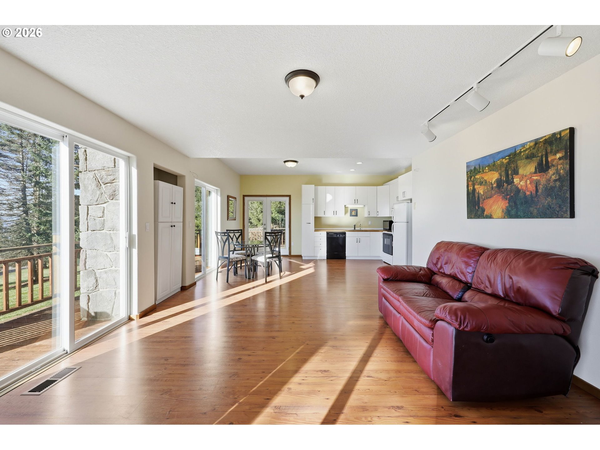 (503) 893-8874Wake up to sweeping Columbia River and valley views from this peaceful 3-acre Woodland retreat, where privacy, space, and natural beauty define everyday living. Tucked behind a gated entrance on a quiet private road, this fully fenced property offers a true sense of seclusion while remaining close to town. The main home is designed to capture light and river views from nearly every room. The upper loft provides a stunning vantage point—perfect for a home office, studio, or quiet escape. The rest of the main house features the primary bedroom and 2 additional bedrooms, formal dining room, living room, and a light-filled kitchen with cook island and cozy nook with quartz countertops. Refinished wood floors and abundant windows enhance the warmth and openness of the space, with multiple decks inviting you to relax and take in the scenery.The lower level offers a full ADU/second living space with private entrance, full kitchen, two bedrooms, full bath, and washer/dryer hookups, ideal for guests or multi-generational living, while still connected via interior stairs. The impressive 30’ x 60’ barn includes three bays and a lean-to, fully equipped with water and power. Whether you need space for RVs, boats, and toys or envision stalls and a hay loft for a working barn, this versatile structure enhances the functionality and appeal of this standout Pacific Northwest retreat.This is a rare blend of acreage, views, and flexibility just minutes from town. Don’t miss your chance to make it yours.