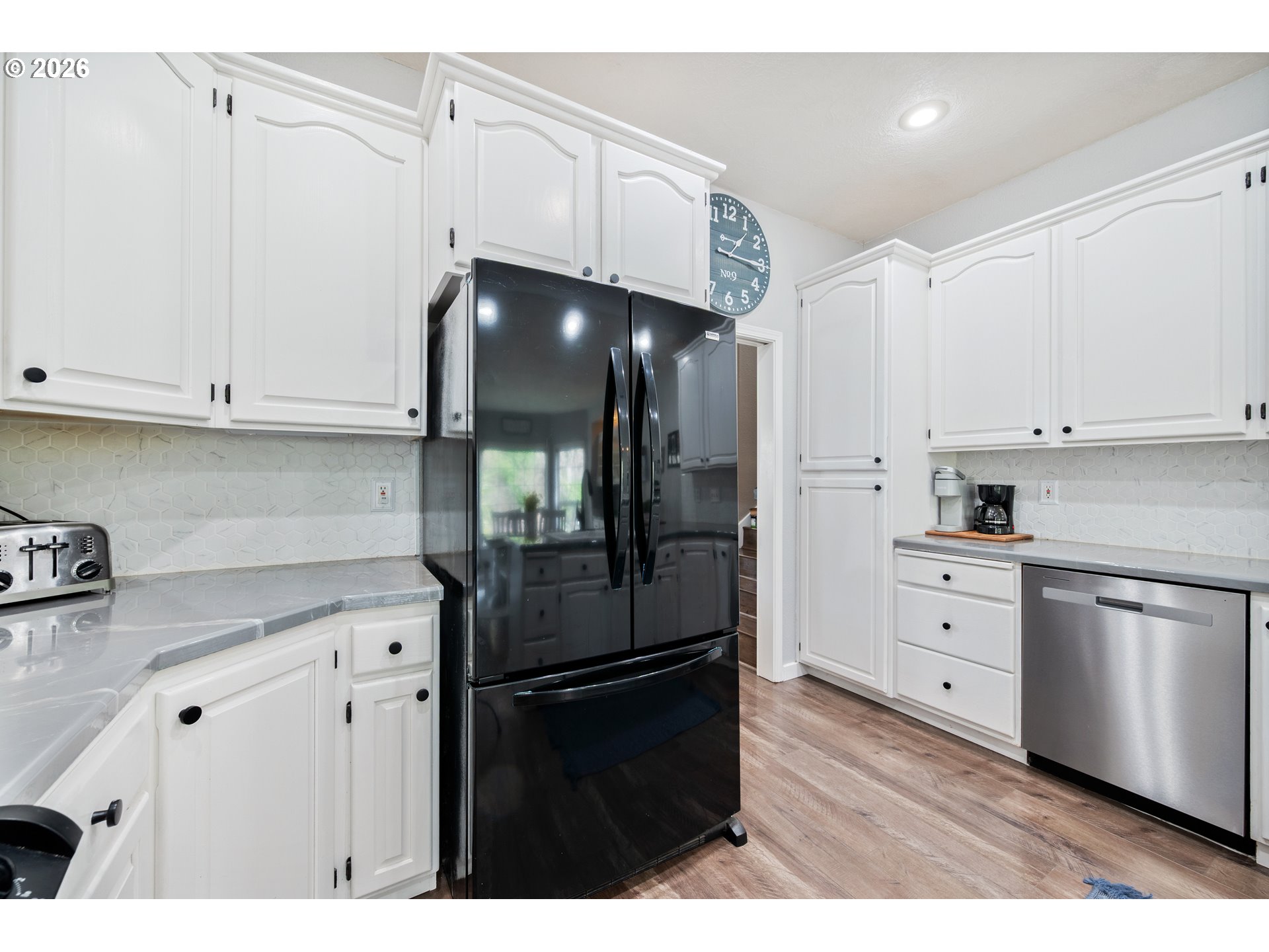 Custom built Kelso home with inviting living room with wood burning fireplace. Formal dining room with slider to backyard. Kitchen with attached breakfast nook or family room. 3 bedrooms, 2.5 baths. Large primary bedroom with walk-in closet plus second closet, bathroom with jetted tub and separate toilet/shower area. Lots of storage! The downstairs garage level includes a laundry room with half bath and convenient laundry chute. Furnace/Heat pump. Backyard with deck & patio. Large driveway plus RV parking. Make your appointment today!
