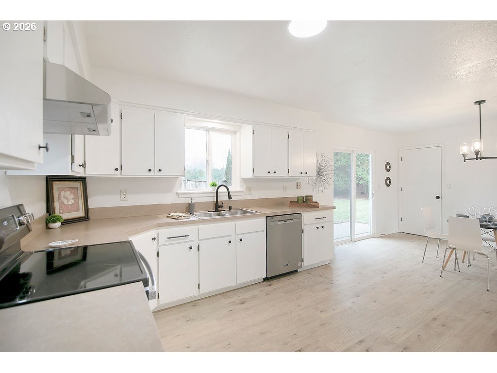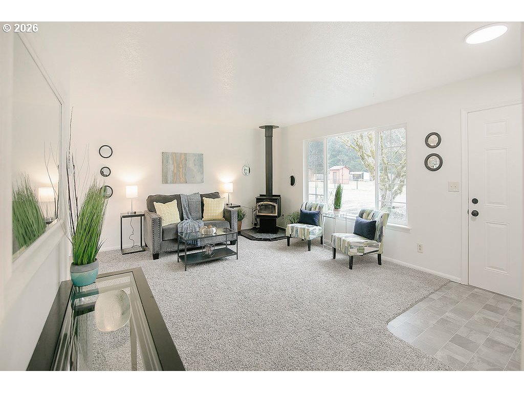 Castle Rock -- UPDATED -- 3 Bedroom / 1 Bathroom -- 1056 Sqft -- NEW Flooring Throughout -- Living Room w/ Woodstove -- Kitchen w/ NEW Stainless Appliances -- Dining Area -- Primary Bedroom w/ Access to Bathroom -- NEW Fixtures -- New Interior & Exterior Paint -- Vinyl Windows — Double Garage -- Large Yard -- Dog Run -- Patio -- RV Parking + More -- Large Lot 16,177 Sqft -- Trees -- Landscaped -- Garden Space -- Dead End Street -- Minutes To Downtown Castle Rock -- Less Than An Hour To Vancouver / PDX