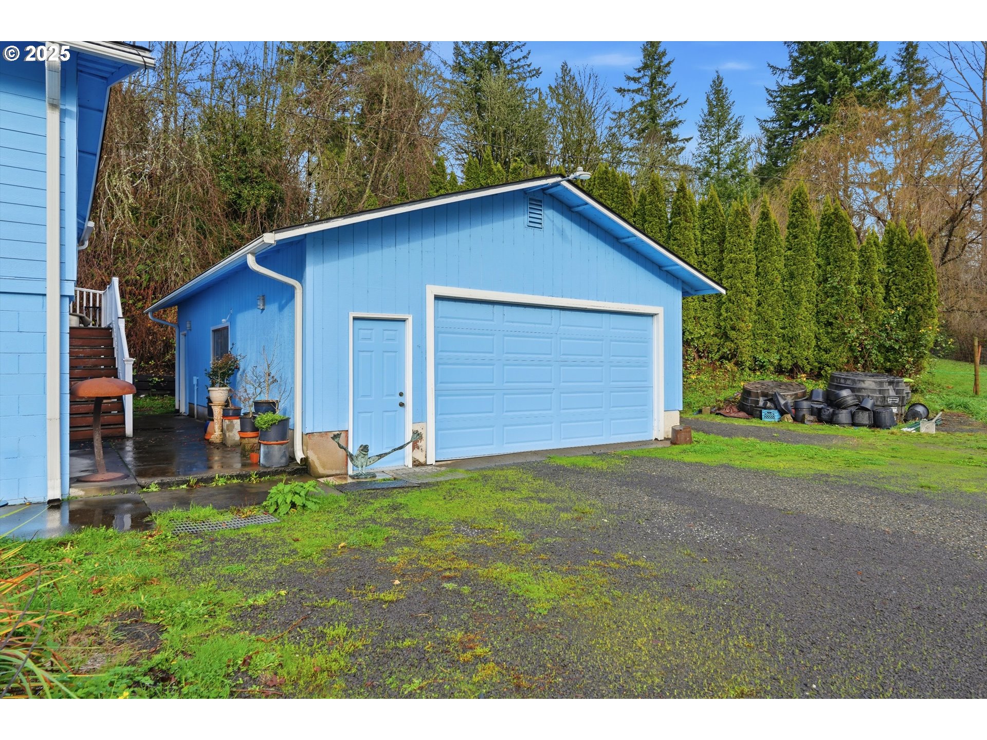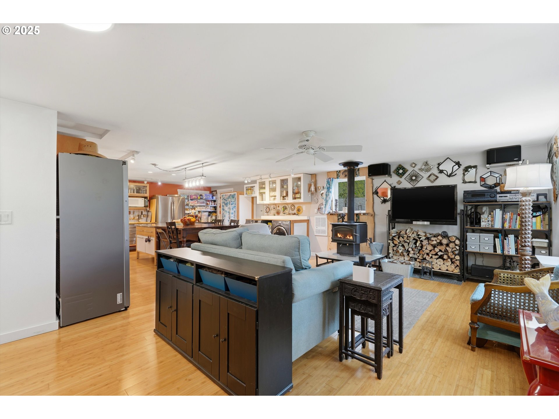 Unique country living in this one-story home on elevated foundation. The open-concept and thoughtfully designed 2 bedroom, 1 full bath home sits on 2 acres and is a true delight. Inside, the layout is warm and inviting with bamboo flooring, cozy wood stove, and natural light throughout. Bedrooms are spacious and comfortable. The exterior has fiber cement siding, New Roof (2024), New Exterior Paint (2024), and a durable Composite-type Deck ideal for morning coffee or relaxing evenings. The detached garage offers parking, storage, or workshop space. New septic system installed in 2025 adds peace of mind. The elevated foundation provides exceptional access with its impressive 8-ft crawlspace. Most of the acreage is level and ready for gardening, animals, or future possibilities. Enjoy several varieties of apple and other fruit-producing trees, perfect for fresh pies, cider, or simply welcoming wildlife! Come see this well-cared-for home and make it yours!