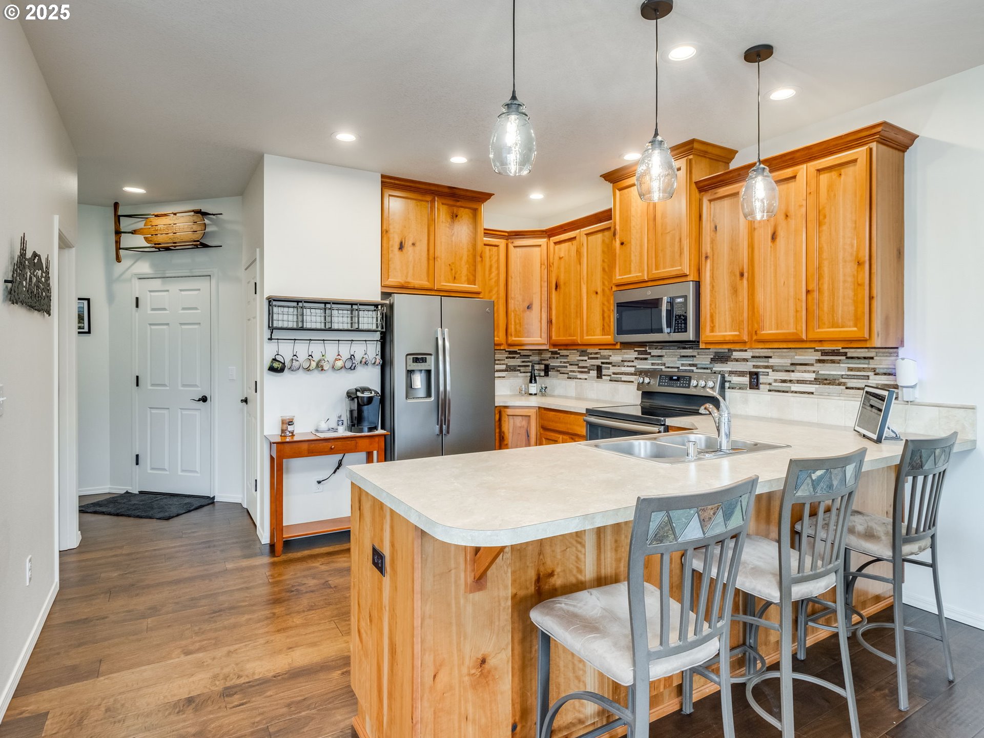 Lightly lived-in 3BR/2.5BA home on a large corner lot in a fun Kalama neighborhood. Features beautiful engineered hardwood floors, a freshly painted interior, and a bright open layout. The kitchen offers a double oven and opens to a covered patio overlooking a beautifully landscaped yard with sprinklers front and back. Enjoy territorial views and easy access to the Kalama waterfront, public market, freeways, the Columbia River, hunting, fishing, and coastal adventures.