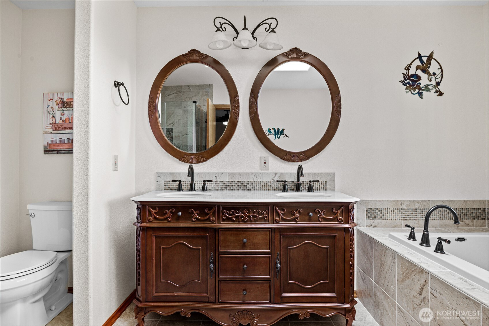 HOME OF THE GREAT NORTHWEST!! In the Heart of the West Hills, Nestled in a HUGE CORNER PARCEL, gorgeous 4 BEDROOM (3 Bath Septic) – 4 BATHROOM RETREAT. An absolute dream! PRIVATE, SPACIOUS, LUXURIOUS - The best of both worlds! Secluded and just Minutes from City Center and all Amenities. HUGE PRIMARY-EN-SUITE BATHROOM - JETTED TUB - Gorgeous shower - Walk-in Closet. A PERFECT RETREAT! Modern Kitchen - NEWER UPGRADES throughout: Carpet, Bathrooms, Counters, Roof - all to be enjoyed!! DOWNSTAIRS LIVING AREA: Private Exterior Access - Full Bathroom. Ready for multigenerational living. Gorgeous Deck-W/Views - SPA/HOT TUB AREA. Circle Drive - Large Parking Area - Garage Bays w/OFFICE Above! Make an Appointment. COME HOME TO THE GREAT NORTHWEST!!