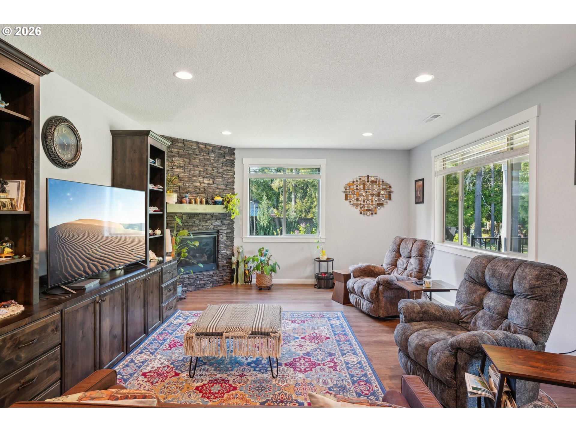 Welcome to one of the most private & desirable homes in Silverlake Village—backing to peaceful greenbelt & a wildlife-filled retention pond-deer, birds, and serene natural views become part of everyday life. This beautifully maintained ranch offers 1,651 sq ft of thoughtfully designed living w/upscale finishes & a flowing open layout. Expansive windows frame tranquil forest views & fill the home w/natural light, creating a seamless connection to the outdoors. The stunning kitchen is the heart of the home, featuring granite countertops, full tile backsplash, SS appliances, gas range with pot filler, & charming custom pantry door. The great room invites relaxation with its floor-to-ceiling stone fireplace, custom built-ins, & inviting atmosphere. Step outside to your covered Trex deck with heater & gas BBQ hookup—perfect for year-round enjoyment. The fully fenced and landscaped backyard offers rare privacy within the community, creating a peaceful retreat with no rear neighbors. The spacious primary suite overlooks the greenbelt & features a walk-in closet, dual sinks, & tiled walk-in shower. Luxury vinyl plank flooring, heat pump with heating & cooling, finished 2-car garage & quality craftsmanship throughout. Located just minutes from Silverlake’s public boat launch, fishing, hiking & year-round recreation, this home offers the ideal blend of modern convenience, low-maintenance living & PNW beauty. Enjoy newer construction, privacy & nature—without the upkeep of acreage.