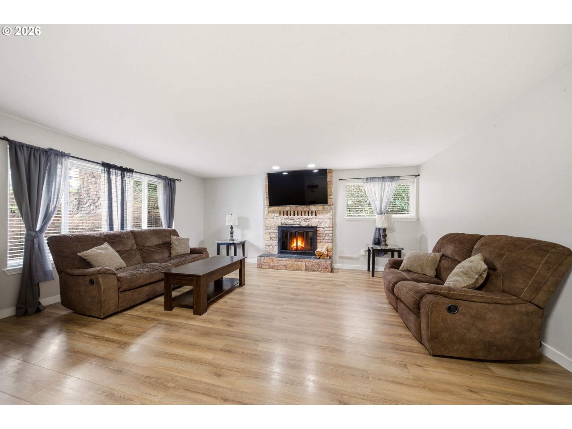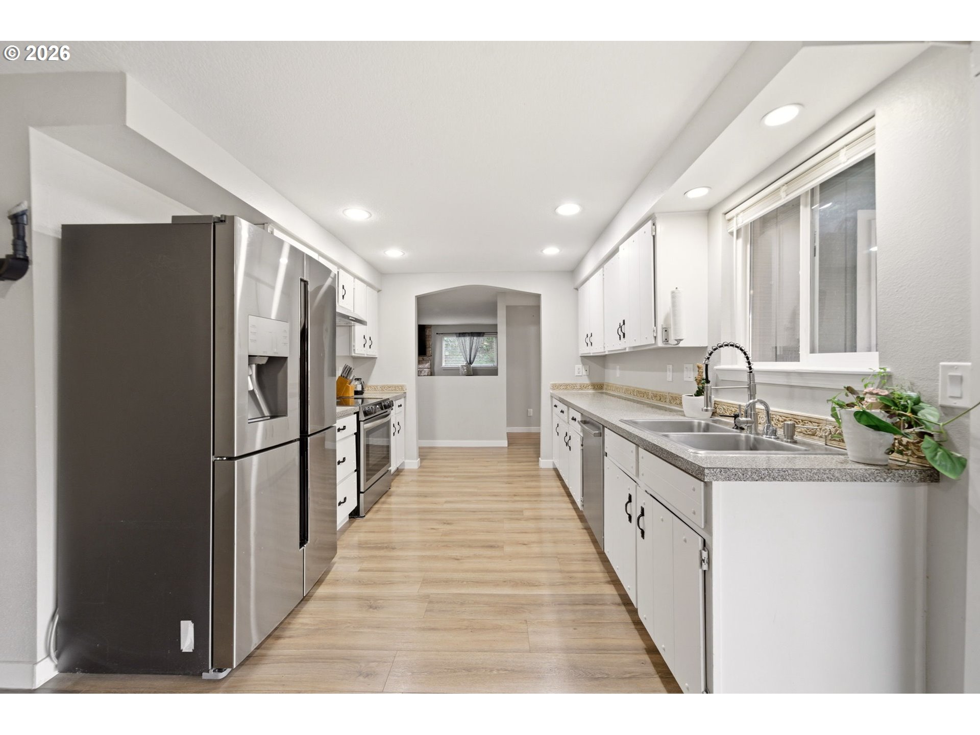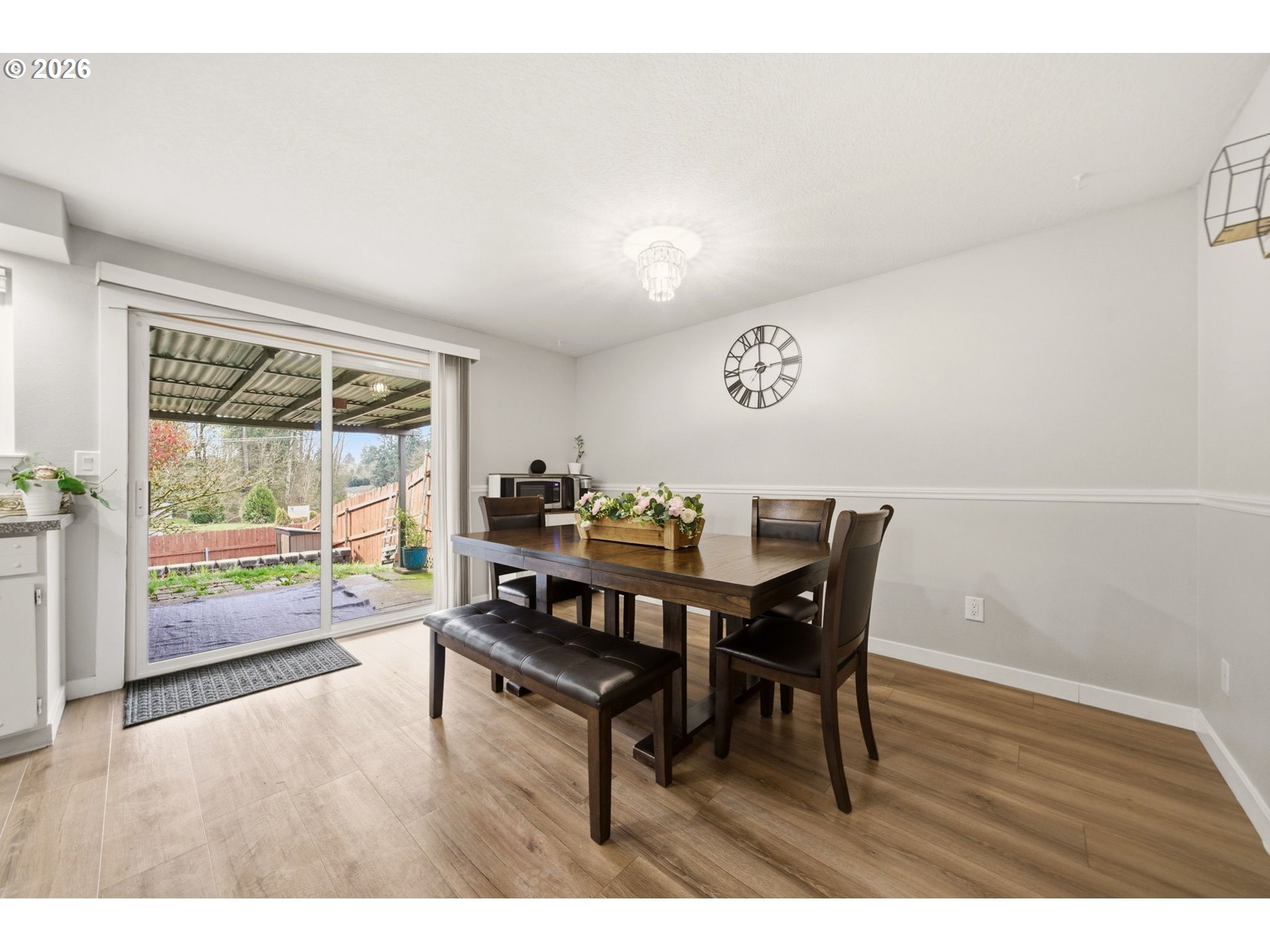 Welcome to this beautifully updated one-level detached home featuring 3 bedrooms and 2 bathrooms across 1,329 square feet. Step inside to a spacious living room with a cozy wood burning fireplace—perfect for relaxing evenings at home. The kitchen is equipped with stainless steel appliances and a double stainless steel sink, making meal prep a breeze. Enjoy meals in the dining area with an accented lighting feature, and a slider to the covered patio overlooking the tiered yard. Entertain or unwind in the fenced backyard complete with a large patio space. The primary bedroom offers the comfort of an ensuite bath for added convenience. Property is just steps away from Highland Park. Don’t miss your chance to make this well-appointed home yours—schedule a tour today!