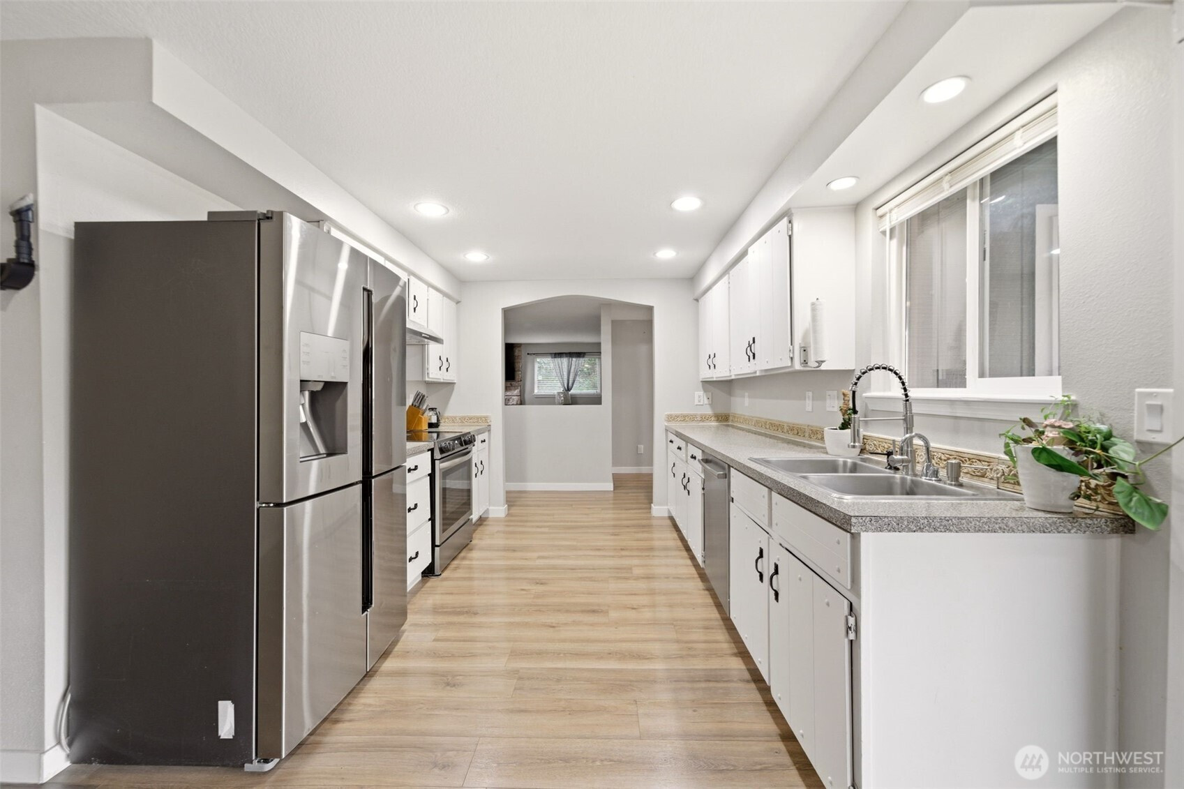 Welcome to this beautifully updated one-level detached home featuring 3 bedrooms and 2 bathrooms across 1,329 square feet. Step inside to a spacious living room with a cozy wood burning fireplace. The kitchen is equipped with stainless steel appliances and a double stainless steel sink. Enjoy meals in the dining area with an accented lighting feature, and a slider to the covered patio overlooking the tiered yard. Entertain or unwind in the fenced backyard complete with a large patio space. The primary bedroom offers the comfort of an ensuite bath for added convenience. Property is just steps away from Highland Park. Don’t miss your chance to make this well-appointed home yours—schedule a tour today!