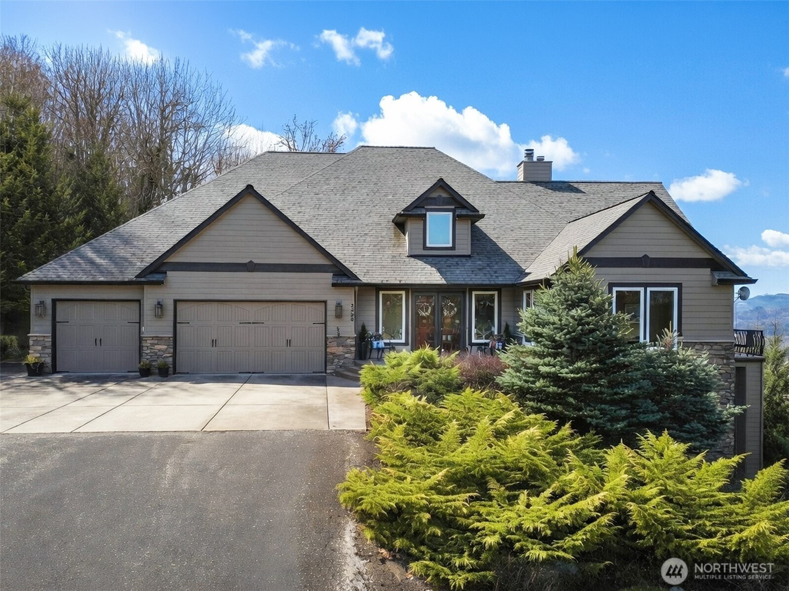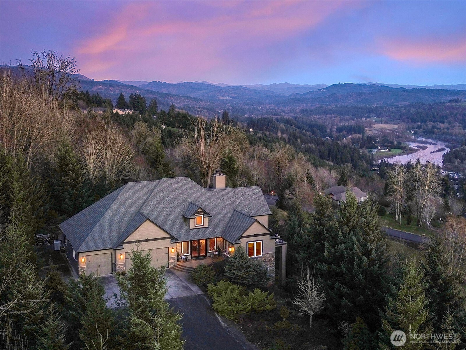 Perched to capture sweeping views from nearly every room, this stunning custom residence delivers an exceptional blend of craftsmanship, and serenity. A grand entry welcomes you with soaring ceilings and luxury hardwood floors that lead gracefully into an elegant formal dining area, perfectly sized for gatherings. The great room exudes warmth with a cozy gas fireplace wrapped in custom granite, crown molding, and beautifully integrated built-ins that elevate the space. The kitchen is a true showpiece, offering double dishwashers, built-in oven, six-burner range with an additional oven, expansive island, massive walk-in pantry, and a wet bar designed for entertaining. The bar features two beverage refrigerators, glass-front cabinetry for display, and sink that doubles as an ice well. The main-level primary suite is a private retreat, anchored by a double-sided fireplace and framed by breathtaking views. The ensuite invites relaxation with a large temperature-controlled jetted tub, spacious walk-in shower, and refined finishes throughout. The daylight basement is an entertainer’s dream, featuring a state-of-the-art home theater, family room, kitchenette, and 3 additional bedrooms and ensuites. Direct access to the lower patio creates seamless indoor-outdoor living. The property is equally impressive outdoors, offering RV parking with hookups, and a massive five-car garage. The panoramic vistas stretch across PDX, Lewis River, and mountains. A must-see!