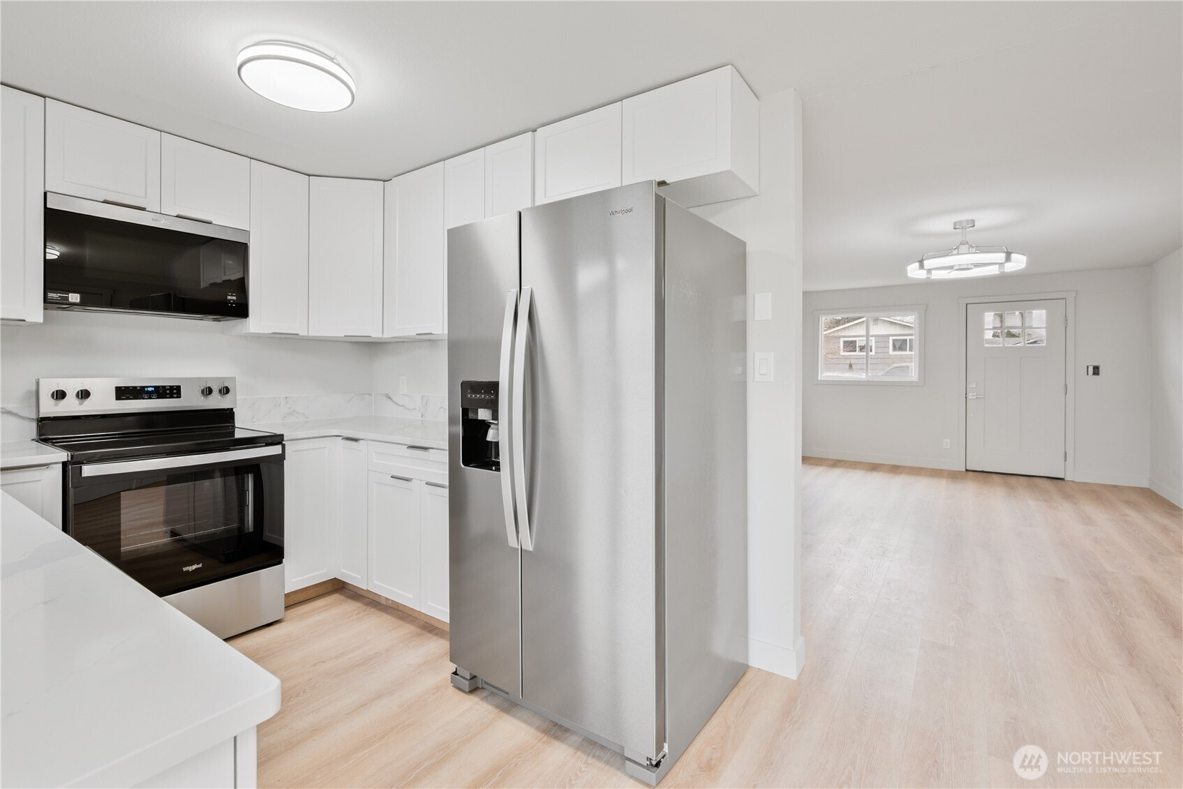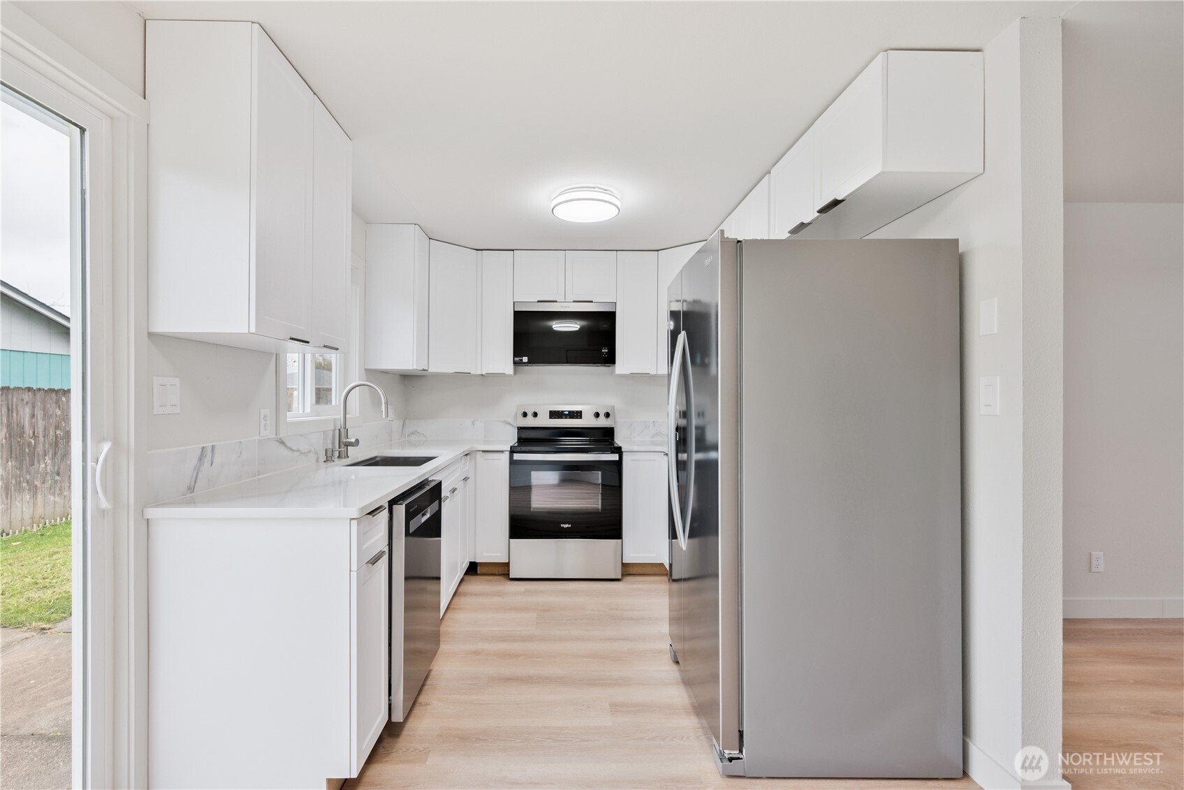 Charming and updated, this beautifully refreshed one-level home offers comfort, style and an unbeatable location—just a short walk to Lake Sacajawea and close to schools, shopping and everyday conveniences. Step inside to stunning new luxury vinyl flooring throughout the entire home. The fully remodeled kitchen features elegant quartz countertops, brand-new stainless steel appliances and modern finishes that make both cooking and entertaining a joy. This home offers three spacious bedrooms with ample storage, along with a beautifully updated bathroom. You’ll also appreciate the all-new lighting, trim and doors that give the home a crisp, contemporary feel. The extra-large laundry room provides additional flexibility and storage space. A two-car garage plus an enclosed storage room off the garage adds even more functionality. Outside, enjoy a fully fenced yard with a patio perfect for entertaining. With a brand-new roof and fresh interior and exterior paint, this home is truly move-in ready. Don’t miss your chance—schedule your private tour today!