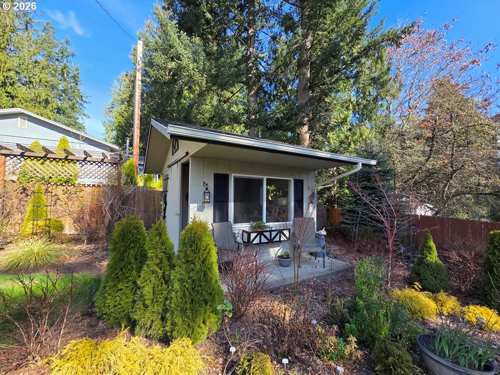 Charming single-level home in desirable Butler Acres! Tucked away on a quiet dead-end street, yet just minutes from shopping, dining, and schools. This well-maintained home offers both a living room and a family room, complete with a cozy wood-burning fireplace. The kitchen features custom Selix cabinetry, quartz counter tops, and Jenn-Air appliances — perfect for everyday living and entertaining. Step outside one of two sliding glass doors to an over-sized back deck overlooking a beautifully manicured, fully fenced backyard. Enjoy the peaceful setting among mature fir and cedar trees, along with a garden/tool shed and tranquil water feature. The paved driveway includes an additional concrete parking pad, ideal for a boat or RV.