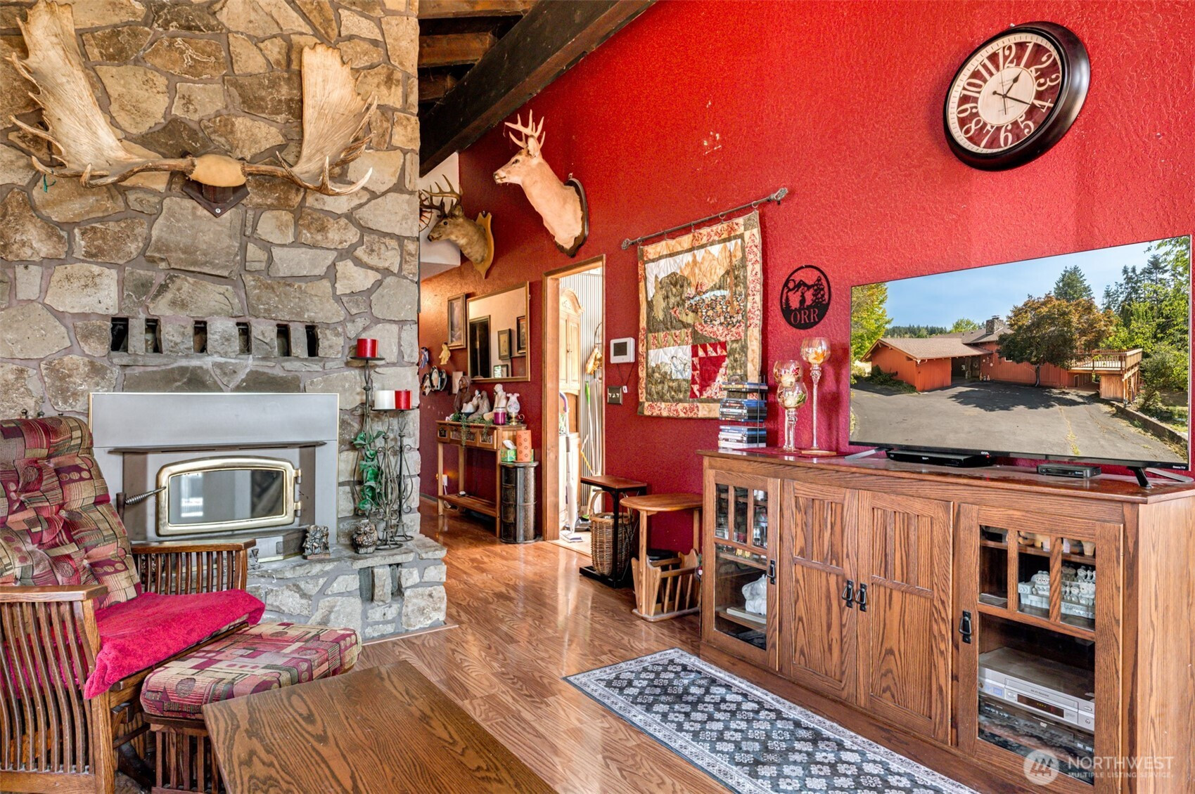 So much potential with over 2,500 sq. ft. of living space for you to make your own! Vaulted great room features a stunning floor-to-ceiling rock fireplace and flows into the dining room, highlighted by a wall of windows to take in the surroundings. Brand-new exterior paint and a brand-new expansive wrap-around wood deck! Newer roof and windows! Heat pump for efficient heating and cooling year-round. The barn and pasture provide space for livestock or simply room to spread out. Enjoy plum, cherry, and apple trees, plus room for a garden or hobby farm. The fully finished basement offers excellent potential for a separate living area or multi-generational living.
