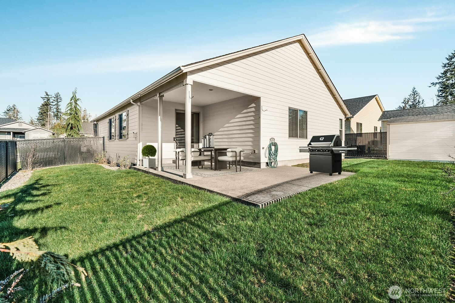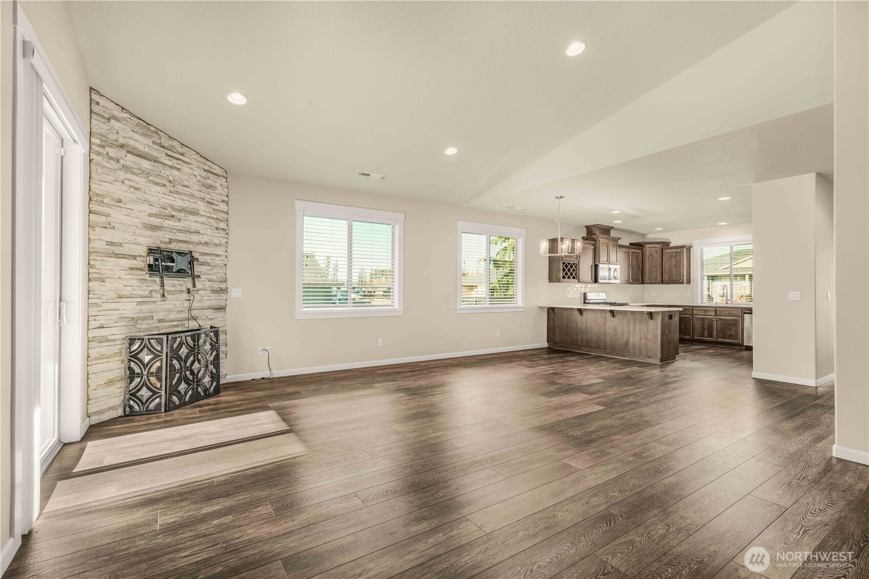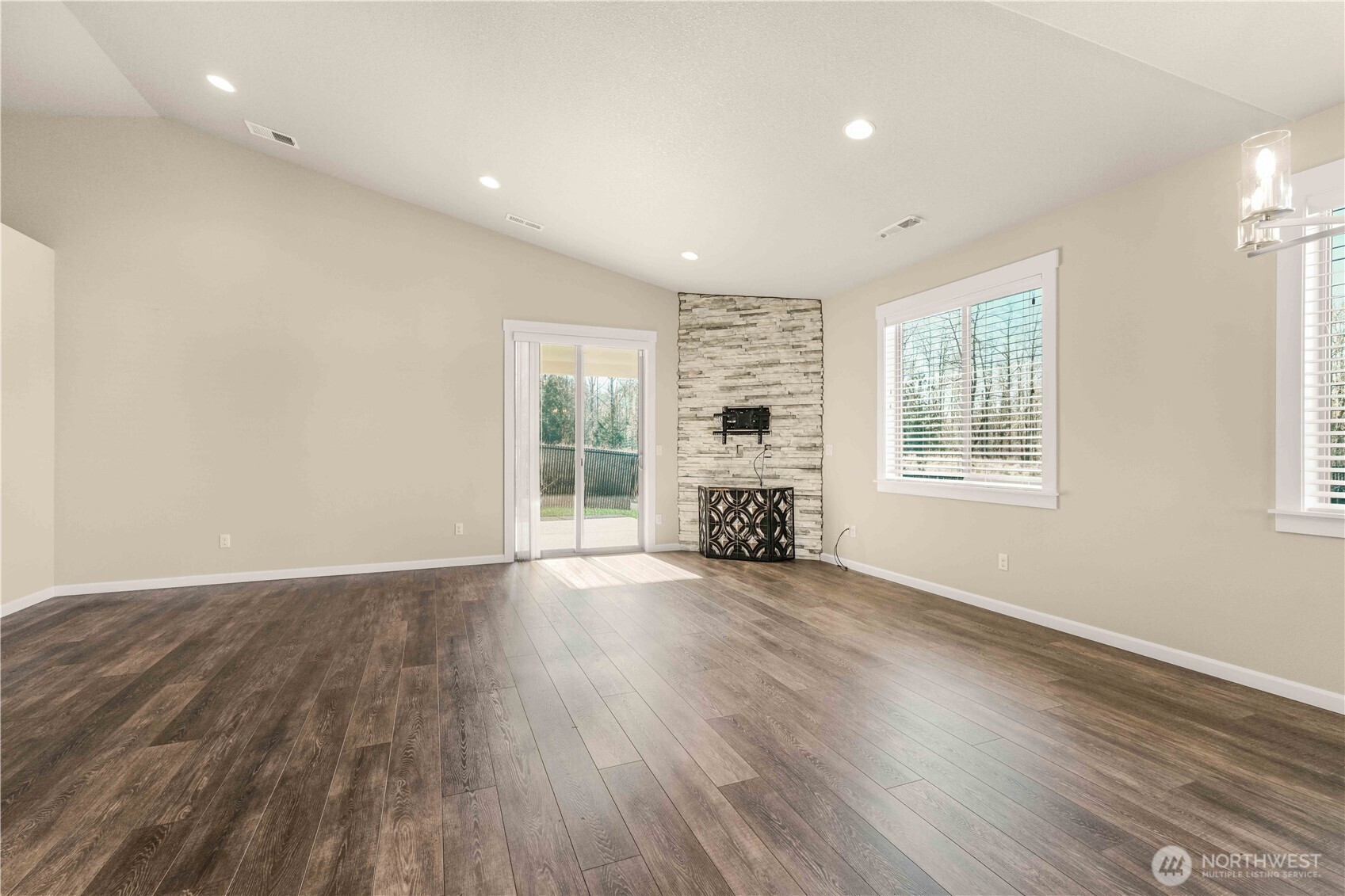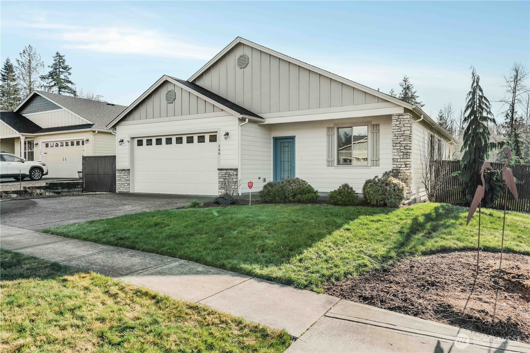 Move-in ready and thoughtfully designed, this 2017-built home offers modern finishes, functional space, and effortless livability. Featuring 3 bedrooms and 3 bathrooms, the open layout is filled with natural light and enhanced by vaulted ceilings and durable LVP flooring throughout the main living areas. The kitchen is well-appointed with quartz countertops, stainless steel appliances, an eat-in bar, pantry, and excellent flow into the dining and living spaces—ideal for everyday living and entertaining.The living room centers around a striking floor-to-ceiling stone fireplace and opens to the fully fenced backyard through sliding glass doors, creating a seamless indoor-outdoor connection. Enjoy a covered patio, additional open patio space, RV parking, and a tool shed—perfect for storage, hobbies, or outdoor enjoyment.The primary suite features vaulted ceilings, abundant natural light, a walk-in closet, and a private bath with double sinks, tile flooring, and a beautifully tiled walk-in shower. Two additional bedrooms offer good closet space and natural light. A large laundry room with built-in storage adds convenience and functionality. A desirable corner lot home with modern finishes, appealing outdoor spaces, and turnkey readiness
