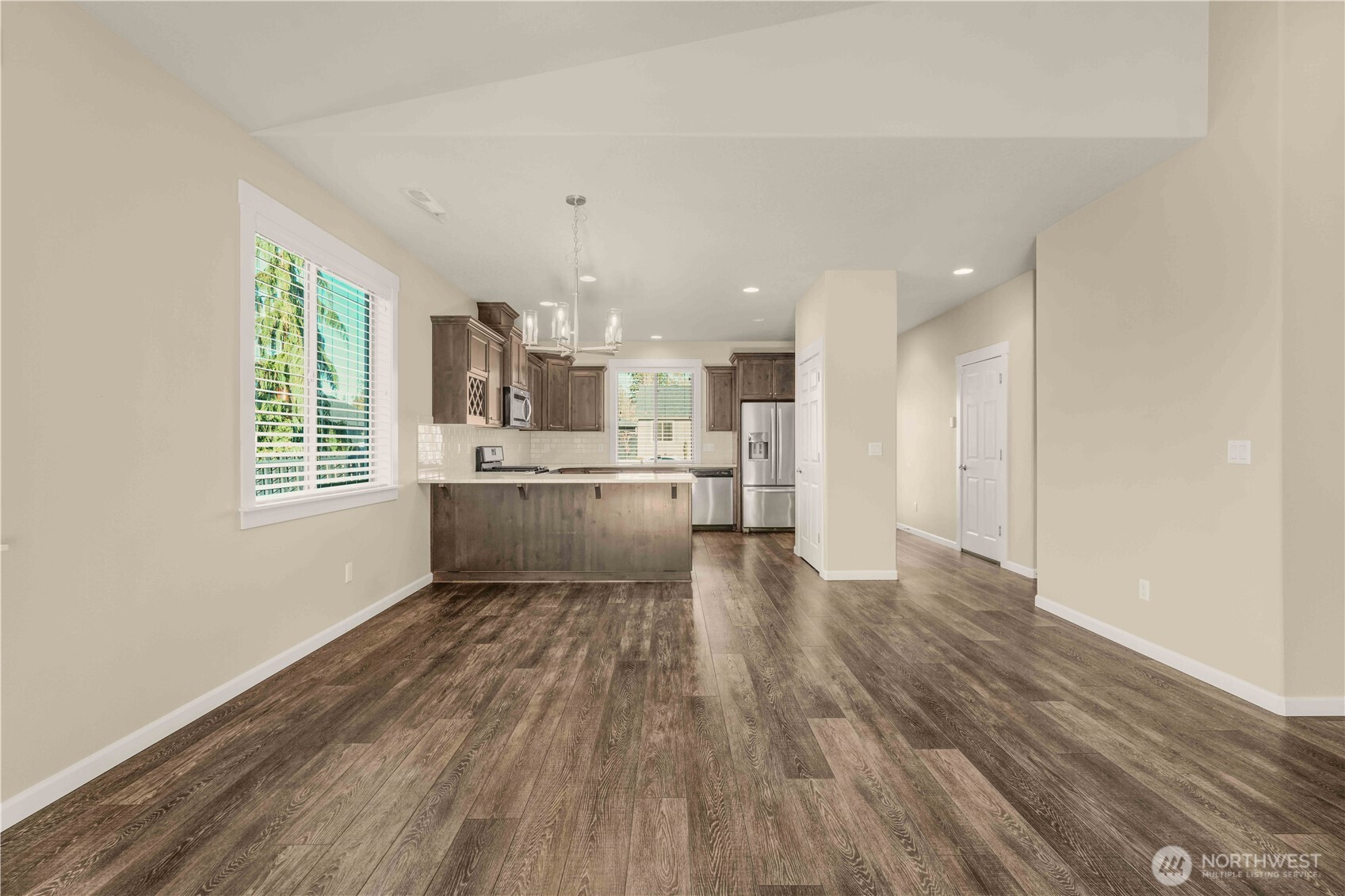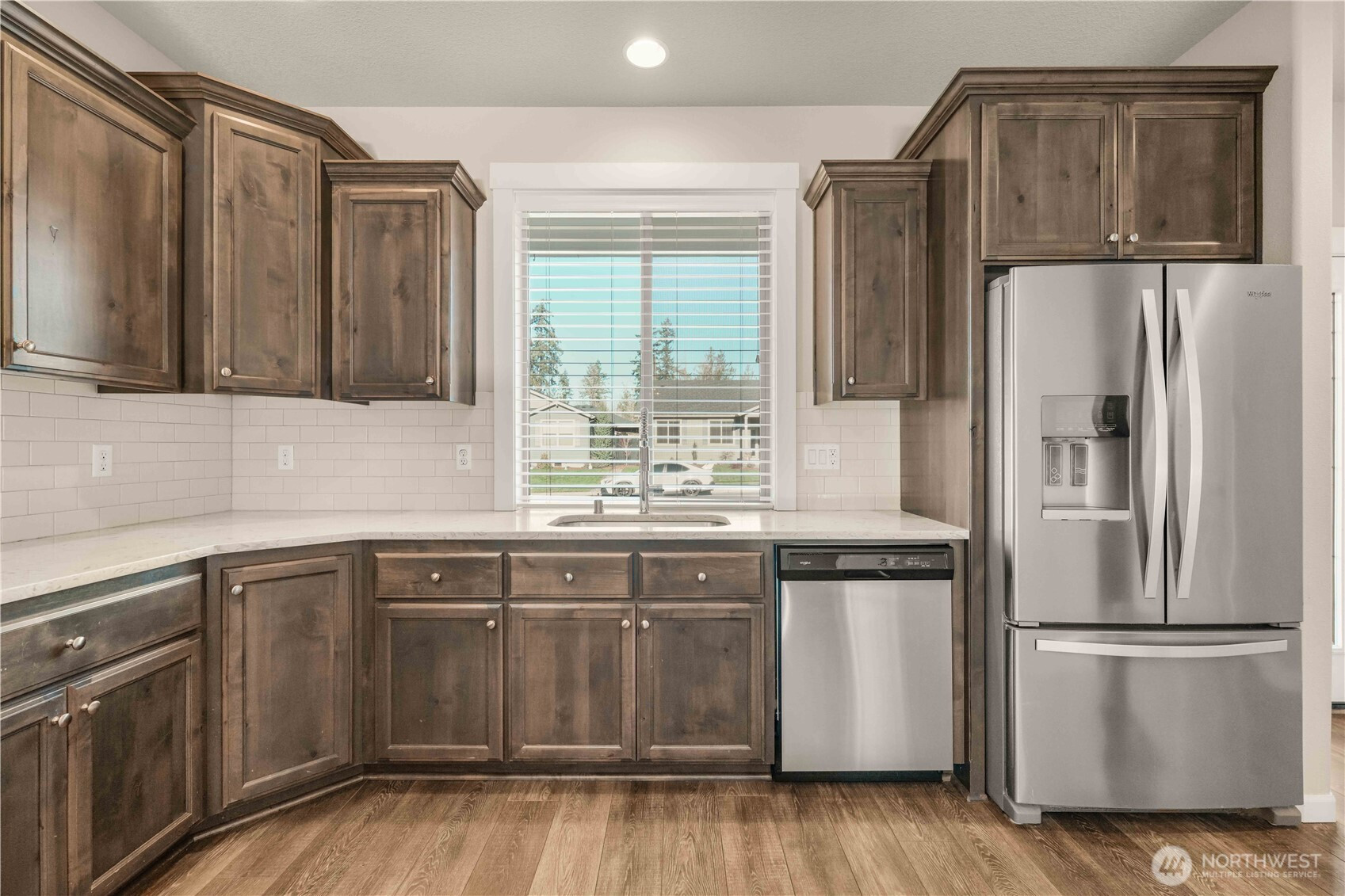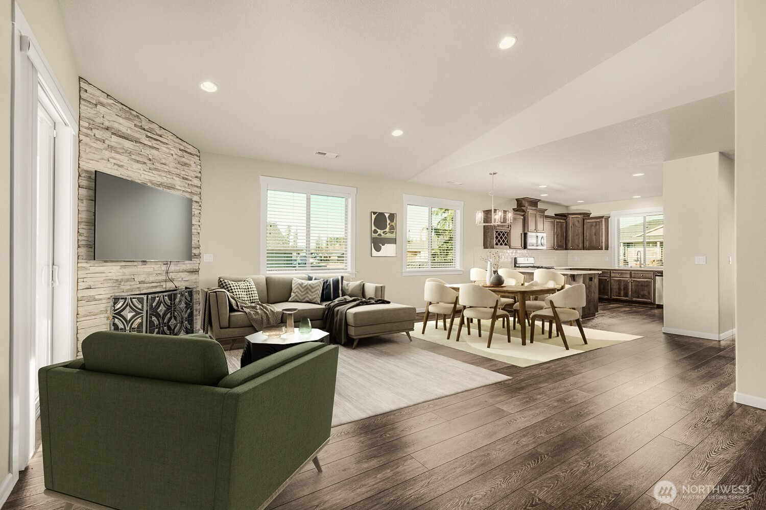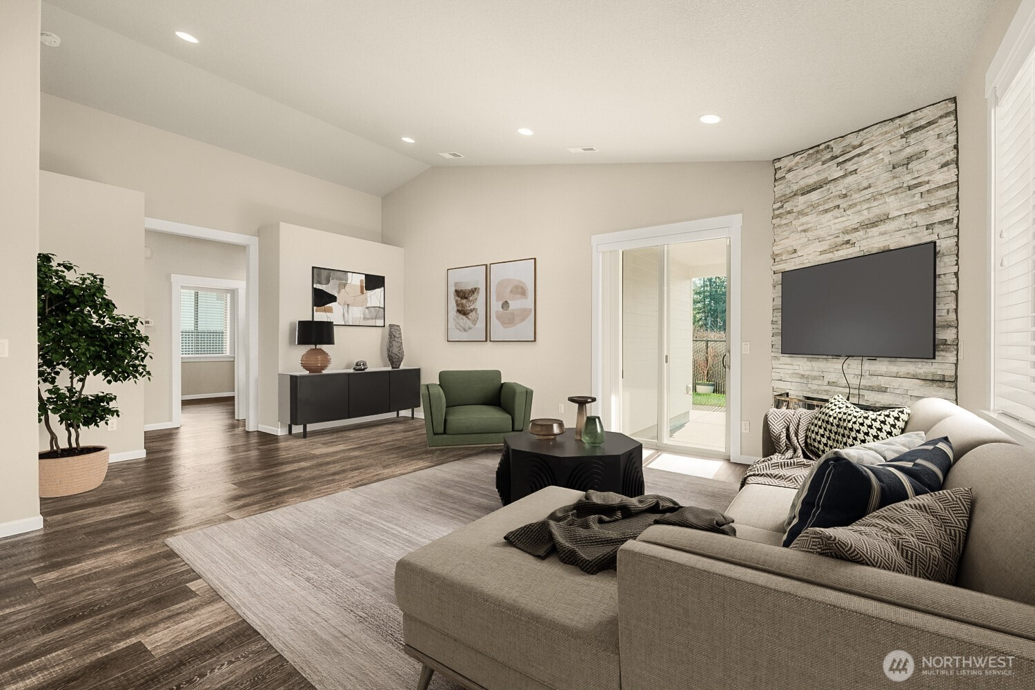 Move-in ready and thoughtfully designed, this 2017-built home offers modern finishes, functional space, and effortless livability. Featuring 3 bedrooms and 3 bathrooms, the open layout is filled with natural light and enhanced by vaulted ceilings and durable LVP flooring throughout the main living areas. The kitchen is well-appointed with quartz countertops, stainless steel appliances, an eat-in bar, pantry, and excellent flow into the dining and living spaces—ideal for everyday living and entertaining.The living room centers around a striking floor-to-ceiling stone fireplace and opens to the fully fenced backyard through sliding glass doors, creating a seamless indoor-outdoor connection. Enjoy a covered patio, additional open patio space, RV parking, and a tool shed—perfect for storage, hobbies, or outdoor enjoyment.The primary suite features vaulted ceilings, abundant natural light, a walk-in closet, and a private bath with double sinks, tile flooring, and a beautifully tiled walk-in shower. Two additional bedrooms offer good closet space and natural light. A large laundry room with built-in storage adds convenience and functionality. A desirable corner lot home with modern finishes, appealing outdoor spaces, and turnkey readiness