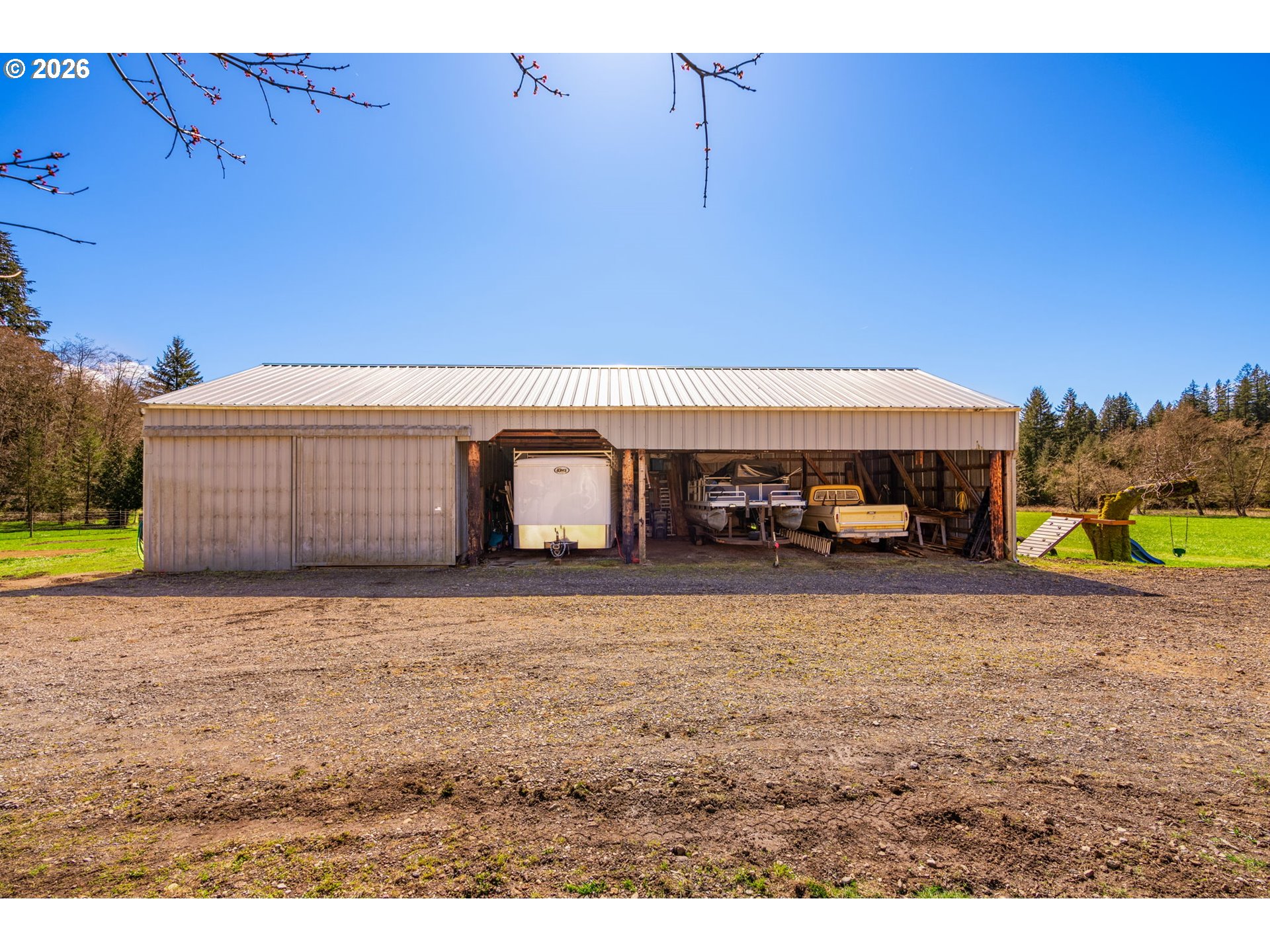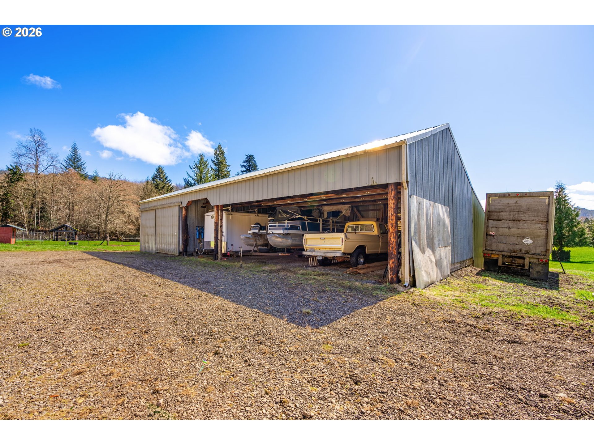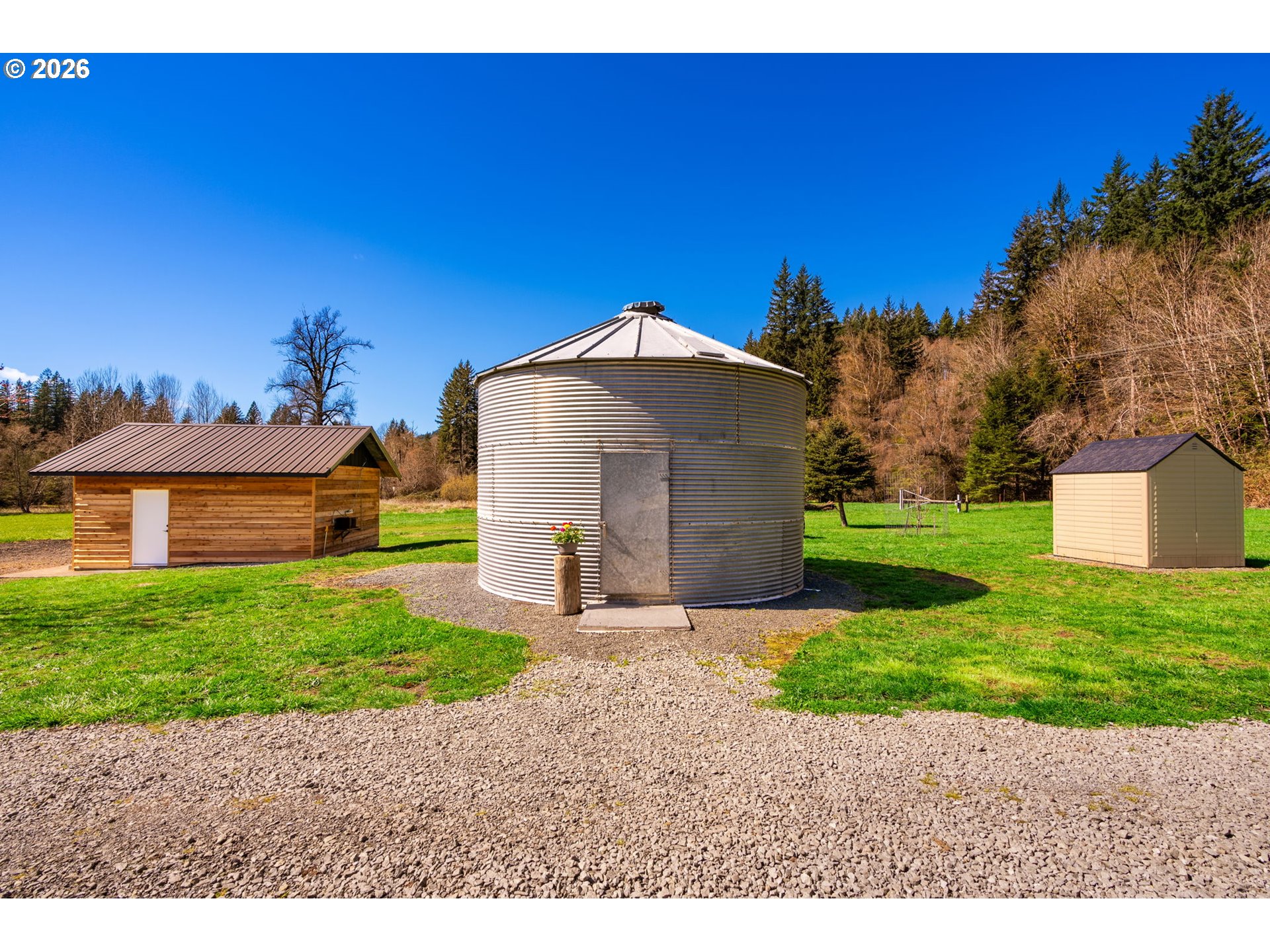 Ultimate homestead in the heart of the Lewis River Recreation Corridor. Surrounded on three sides by 80+ acres owned by the Rocky Mountain Elk Foundation, this property offers unmatched privacy, territorial views, and abundant wildlife including elk, deer, and resident eagles. Three fenced, flat, well-draining pastures support animals and agriculture. Two water sources—a 22 GPM well plus irrigation spring—create true self-sufficiency. Infrastructure includes a 50x70 barn, 24x30 shop, walk-in cooler, butcher room, and canning shed. Entertain in the iconic grain silo bar or relax in the saltwater hot tub. Cozy 2 bed, 2 bath home with tons of character, PEX plumbing (2020), pellet stove, and propane setup. Orchard, berries, and black walnut trees complete the setting. Potential to divide (buyer to verify).