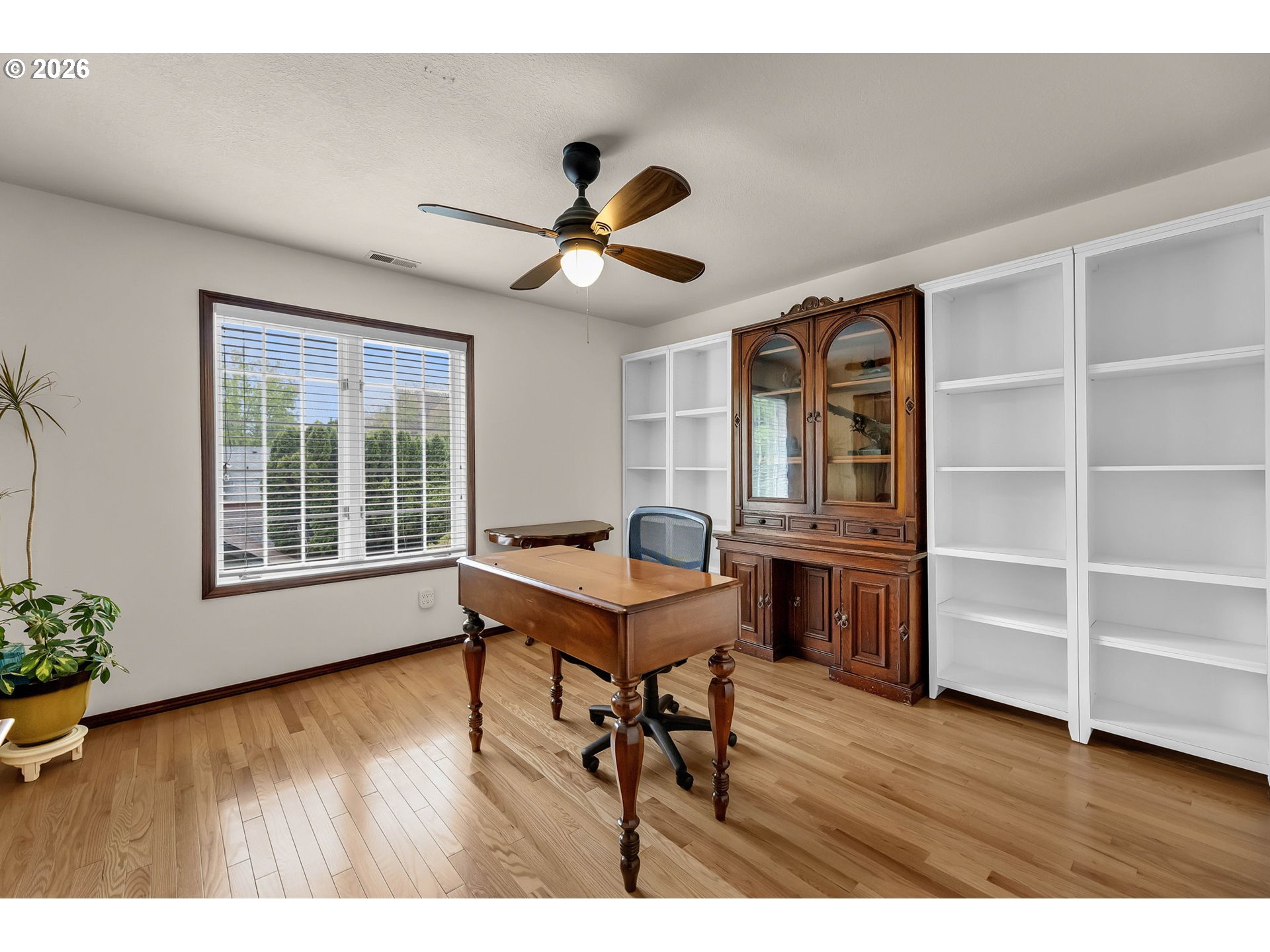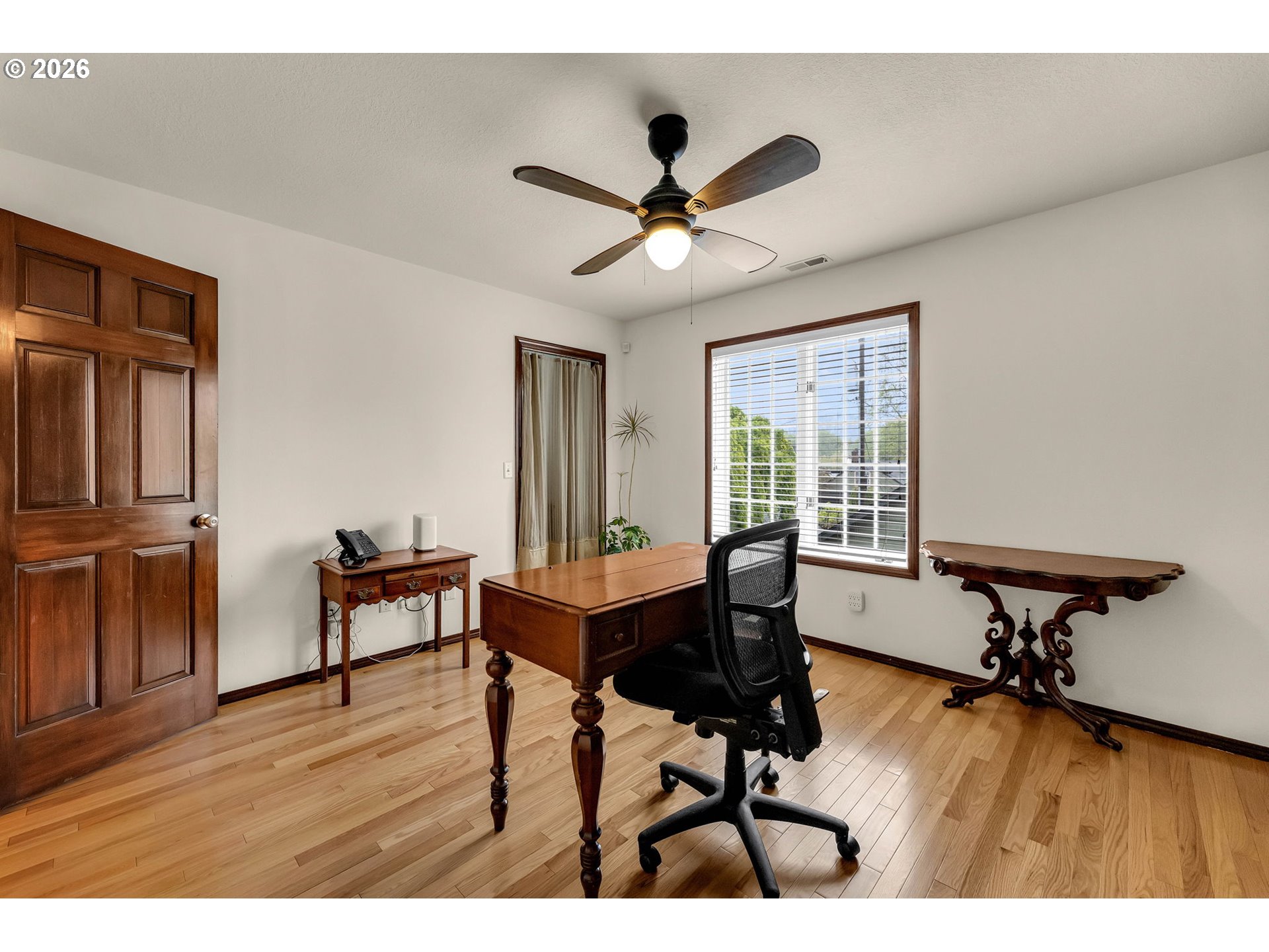CeilingFan, HardwoodFloors, HighCeilings, WalltoWallCarpet
