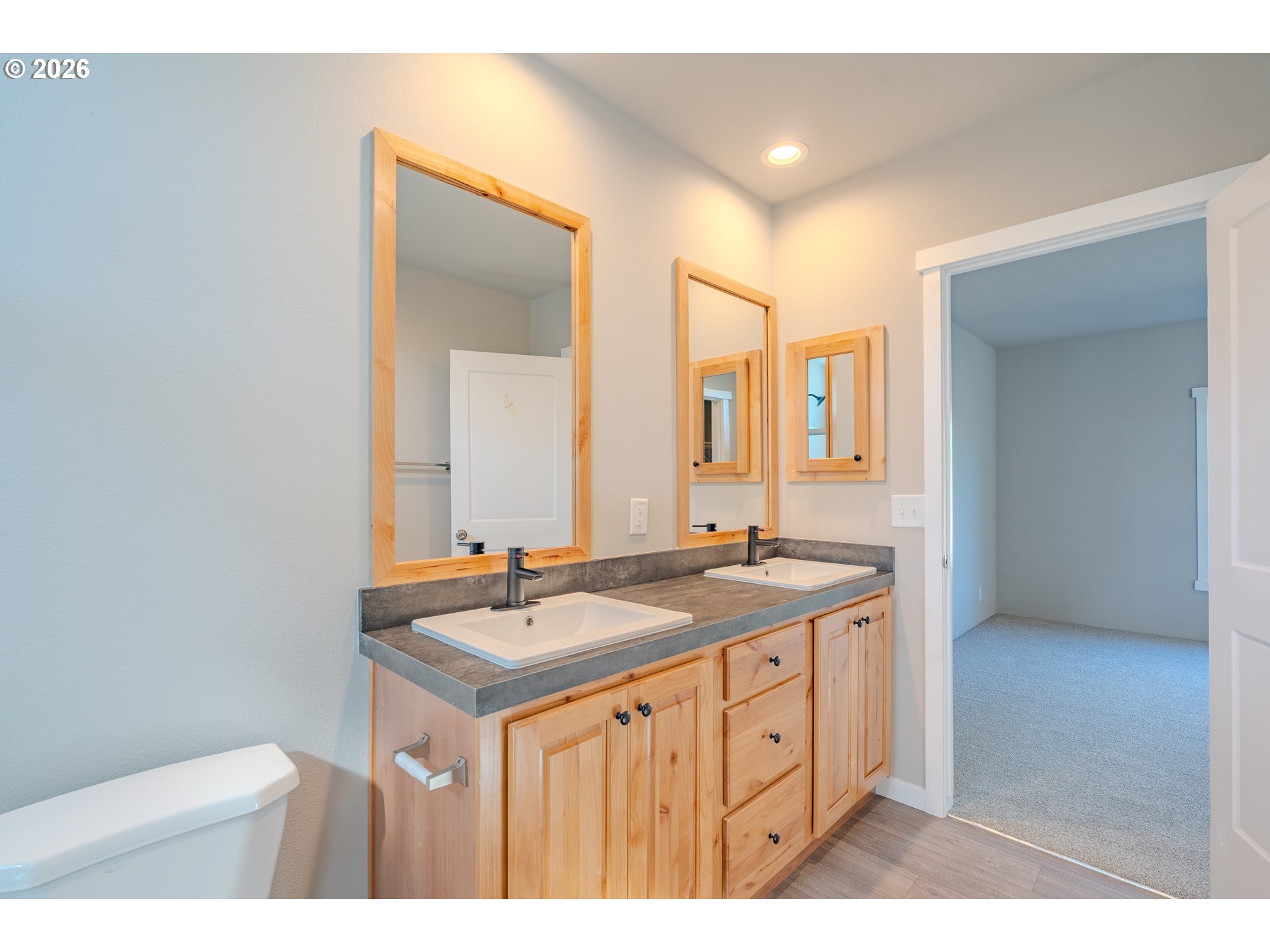 Brand new manufactured home on a completely level 2.5-acre lot in a newly subdivided area, offering space, privacy, and modern comfort. This thoughtfully designed home features beautiful upgraded cabinetry, enhanced trim work, and custom pantry shelving for a refined finish throughout. The spacious primary suite includes a double vanity, step-in shower, and an oversized walk-in closet. Step outside to a large back deck—perfect for entertaining, relaxing, or enjoying the peaceful surroundings. Shared well and onsite septic. Be the first to own in this emerging community with room to grow.