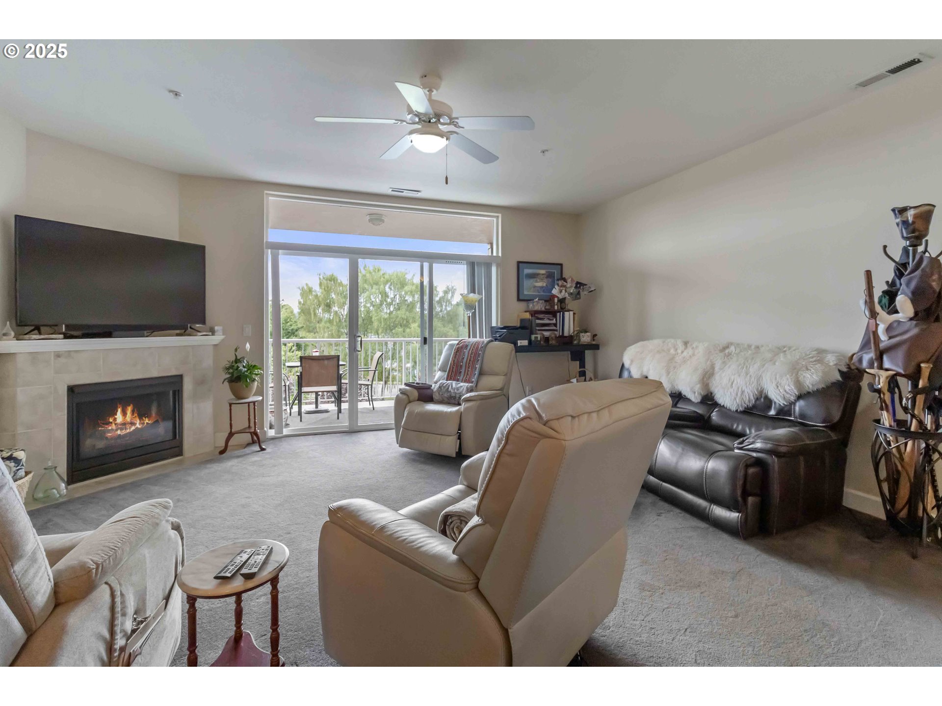 Welcome to Rivers Edge Condominiums—where comfort meets convenience! This stylish one-level condo features two bedrooms, two bathrooms, and an inviting open-concept design. Enjoy updated granite countertops, a cozy gas fireplace, and fresh interior paint. The spacious primary suite now includes a walk-in ADU shower for added ease. Relax on the covered balcony/patio with a gas hookup or explore amenities like garage parking with an EV charger, a rooftop deck with river views, a common room, and an exercise space. HOA dues cover water, sewer, garbage, cable, internet, insurance, yard care, and security. Plus, enjoy a brand-new high-efficiency HVAC with a transferable 10-year warranty. Call today to schedule a showing!