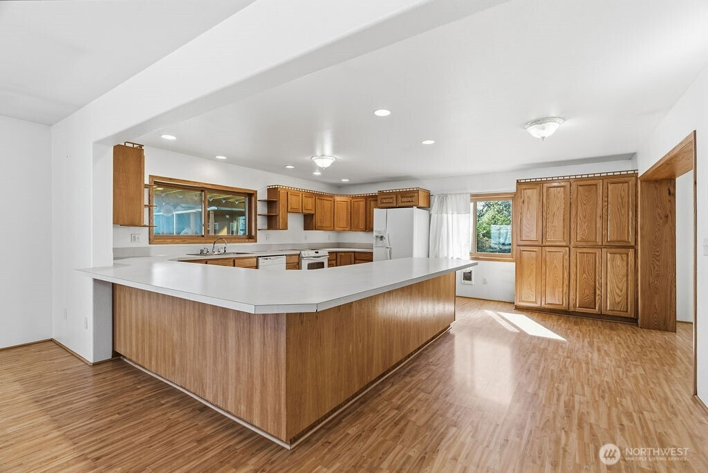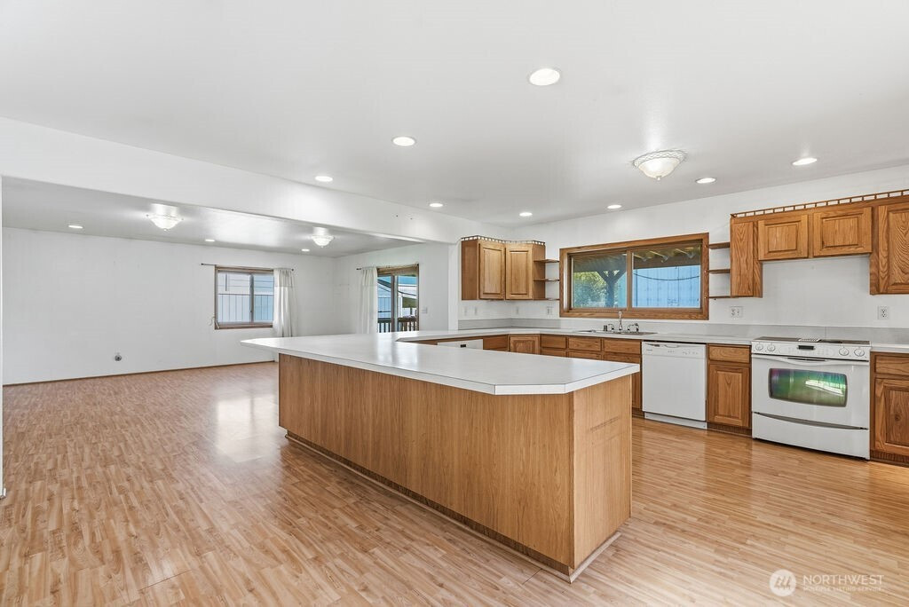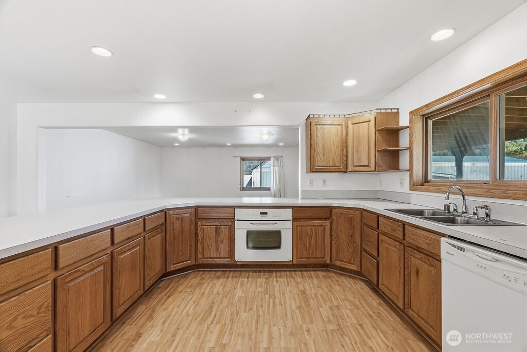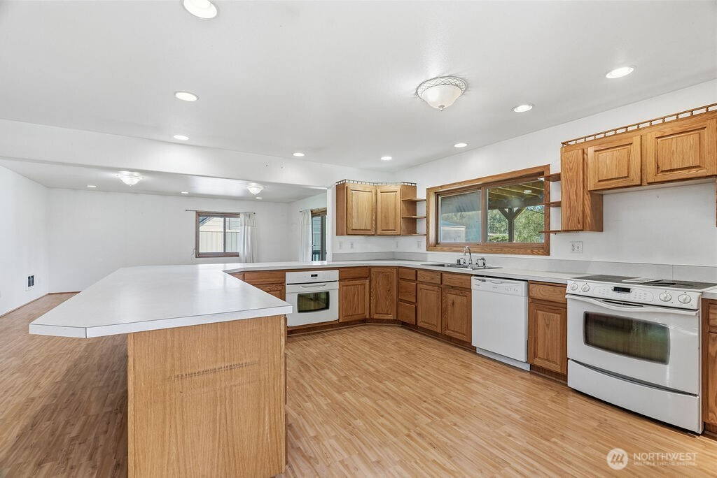 Dont miss your chance to own this nearly 2500 sq ft home with a SHOP, large lot, and situated on a dead end street for added privacy! Home was added onto/remodeled in 2002 and features; Huge kitchen, peninsula seating, dual ovens, custom hardwood cabinetry throughout, large primary bed/bath combo, with large bedrooms and bonus rooms. Wood burning stove keeps the place cozy in the winter months. Outside you will enjoy big covered deck for entertaining, an oversized yard, and a 24x50 shop with power! Lots of room for RV parking and or trailers. This home has lots to offer and is ready for you!
