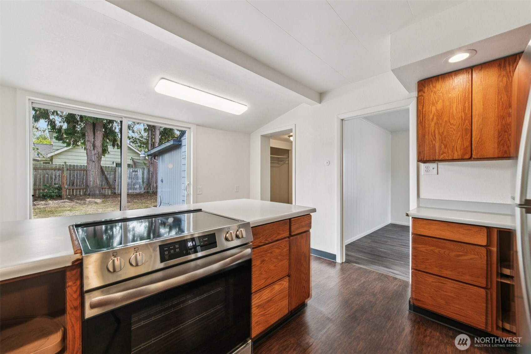 Welcome to this charming 3 bed - 1 bath Cape Cod in Kelso, offering the perfect mix of privacy and convenience. Tucked away in a secluded spot yet just minutes from shopping and I-5, this remodeled home is move-in ready and full of character. Enjoy a spacious front deck, bright interior, fresh paint, new flooring, and a cozy woodstove. The kitchen features stainless appliances, eat-up bar, and slider to the private, fenced backyard. Two bedrooms are on the main floor, including one oversized, plus a non-conforming bedroom upstairs for added flexibility. Additional updates include newer roof, carpets & vinyl windows. Attached garage offers workshop space, and the yard includes a garden shed & chicken coop/dog run.