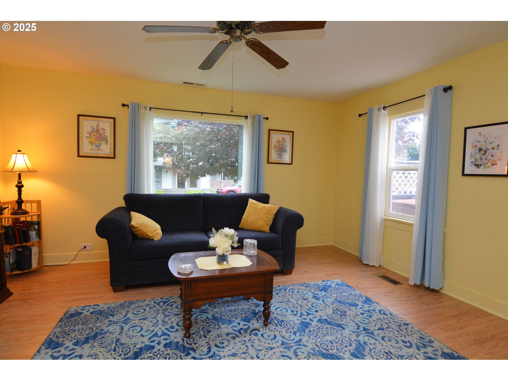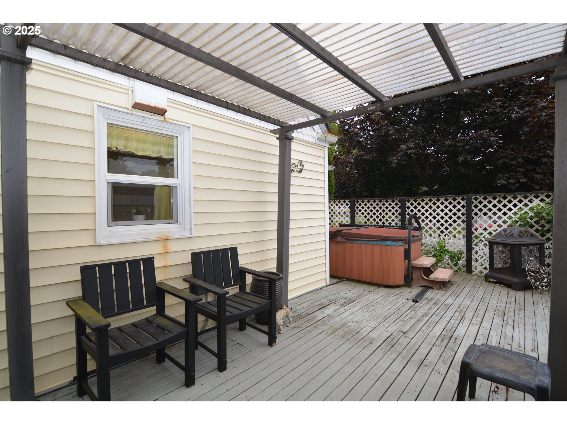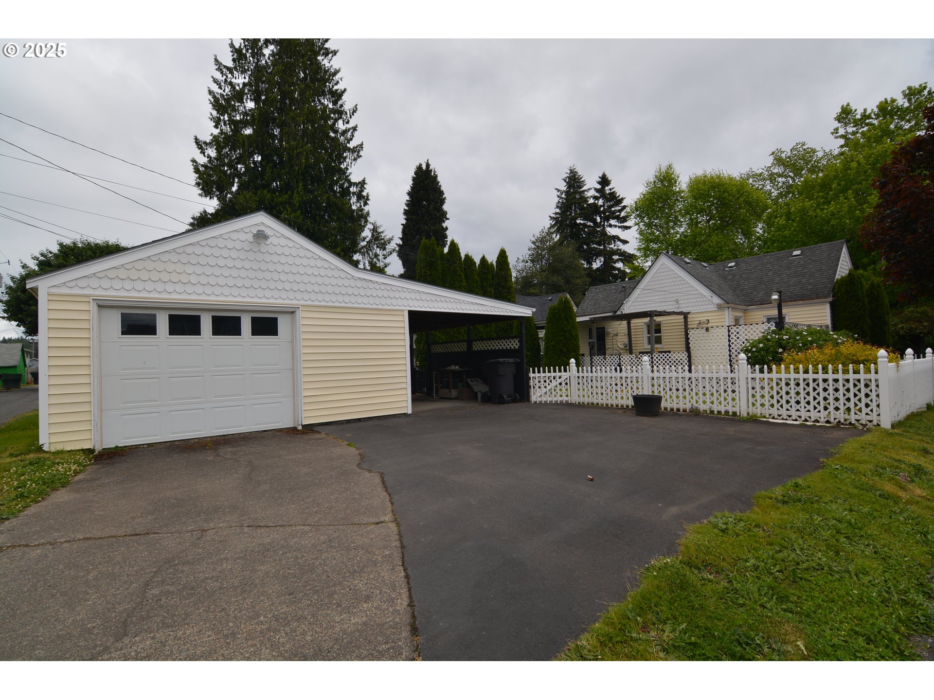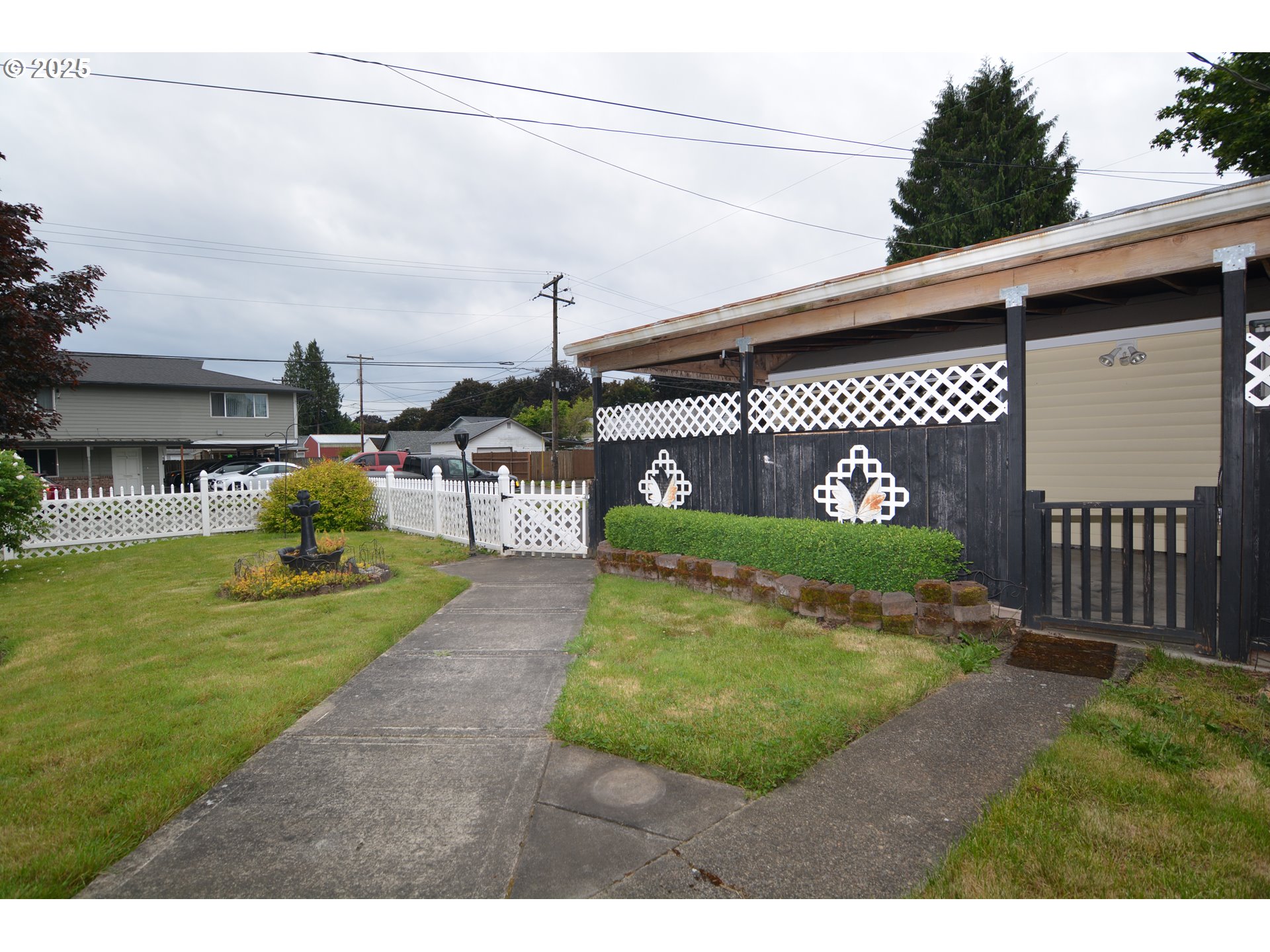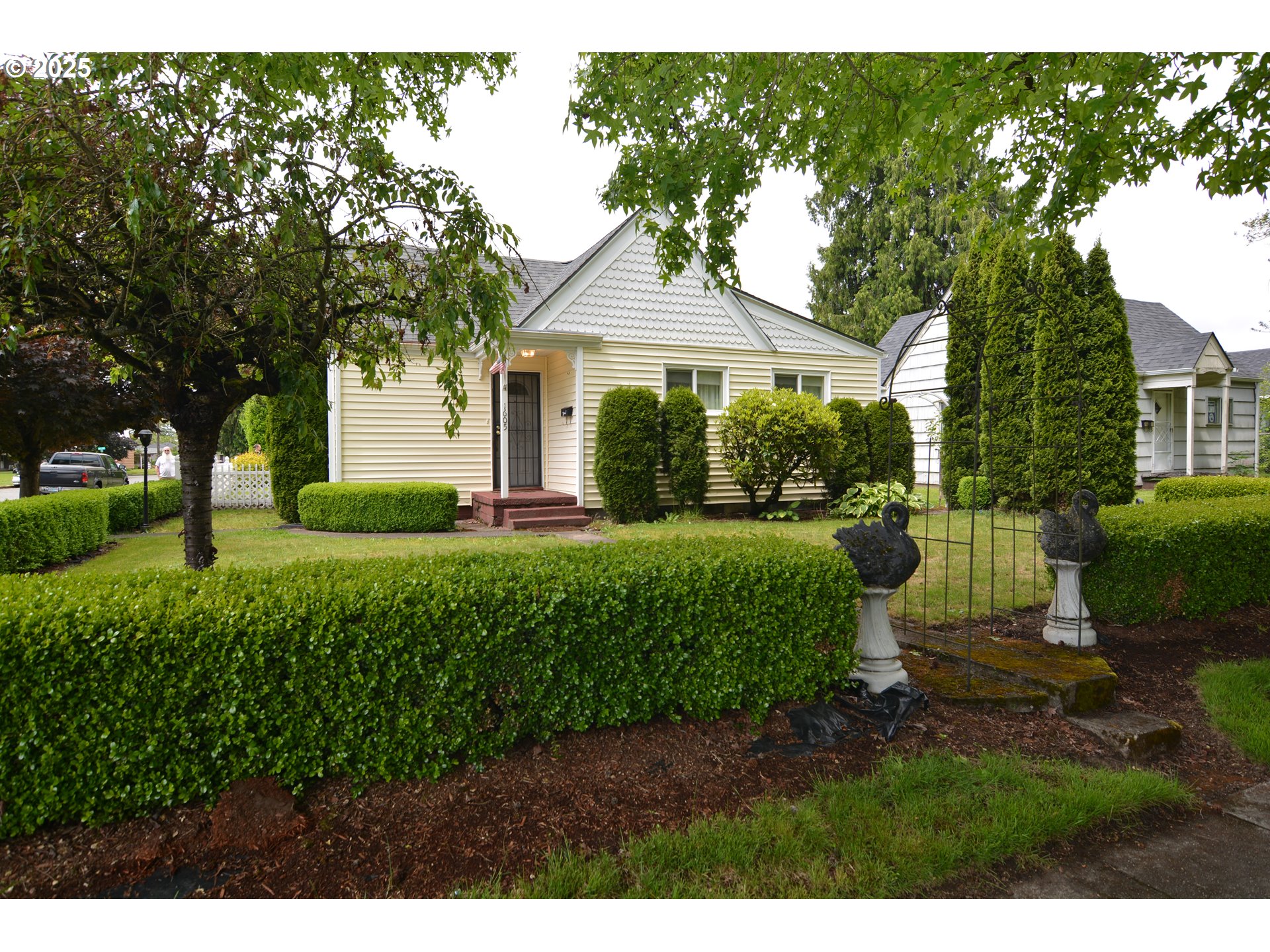 Curb appeal abounds in this one level home near the Fairgrounds and Kaiser Permanente! Charming home boasting 792 SF, light filled formal living room & dining area w/laminate flooring, updated kitchen w/white cabinetry, large primary bedroom with ample closet space, hall bathroom w/walk-in Jacuzzi bathtub, ceiling fans, spacious utility room, huge deck w/hot tub & gazebo, Trane heat pump, vinyl siding w/scalloped dormers, vinyl windows and a newer 30 year architectural roof. The grounds feature a manicured boxwood hedge, vinyl picket fence, flower gardens & trellises. The 396 SF oversized one car garage/shop has an attached carport, 220 outlet and ample parking.