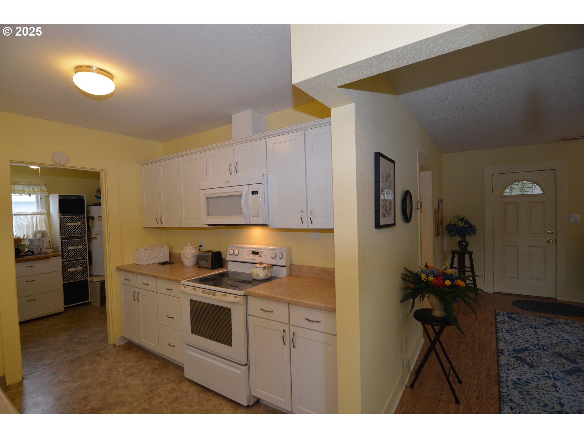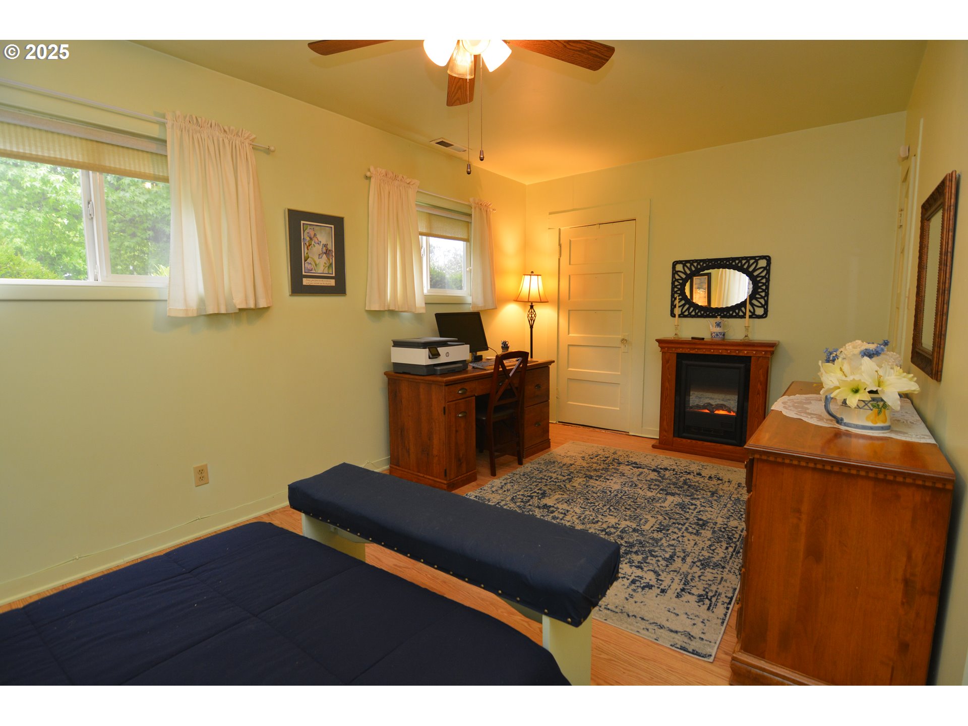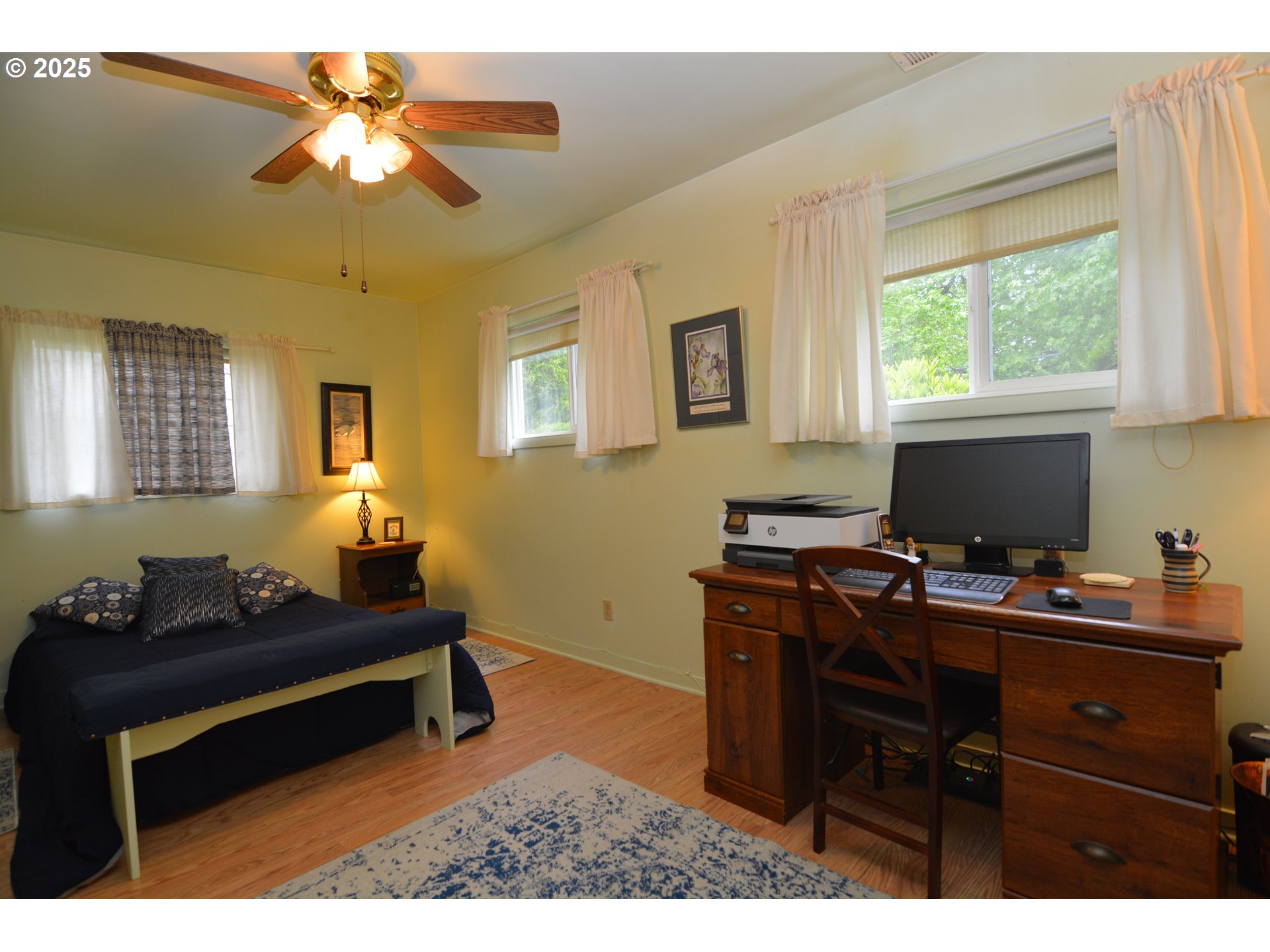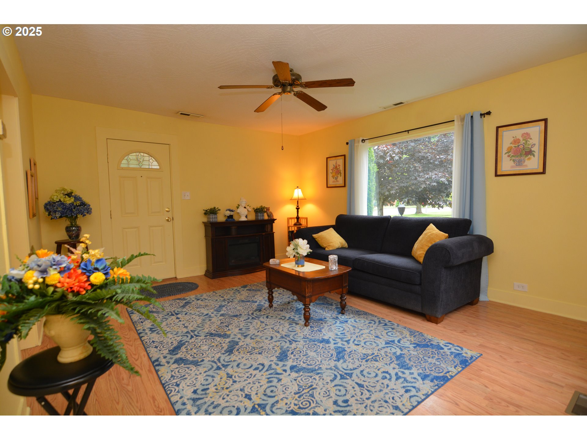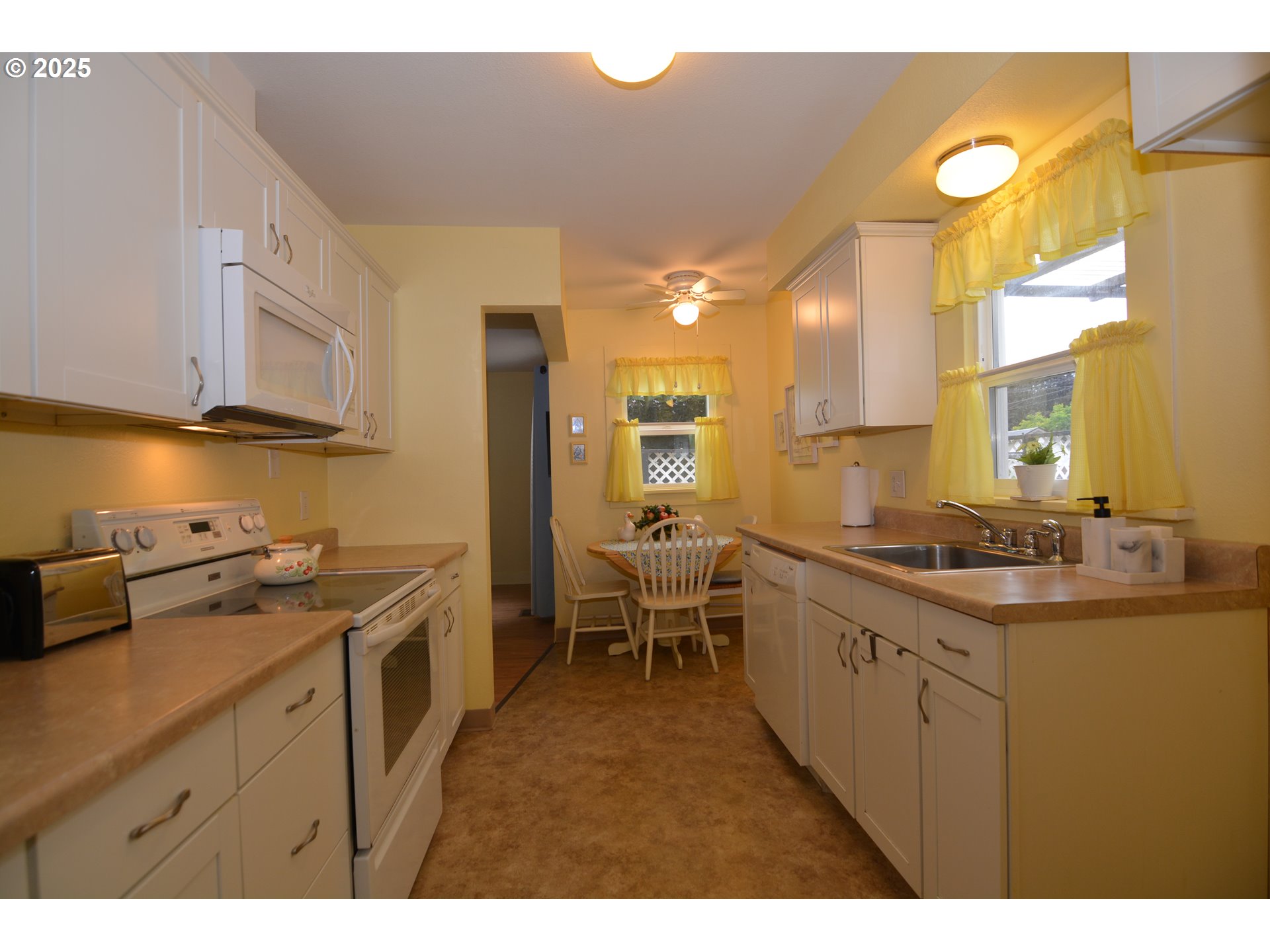 Curb appeal abounds in this one level home near the Fairgrounds and Kaiser Permanente! Charming home boasting 792 SF, light filled formal living room & dining area w/laminate flooring, updated kitchen w/white cabinetry, large primary bedroom with ample closet space, hall bathroom w/walk-in Jacuzzi bathtub, ceiling fans, spacious utility room, huge deck w/hot tub & gazebo, Trane heat pump, vinyl siding w/scalloped dormers, vinyl windows and a newer 30 year architectural roof. The grounds feature a manicured boxwood hedge, vinyl picket fence, flower gardens & trellises. The 396 SF oversized one car garage/shop has an attached carport, 220 outlet and ample parking.