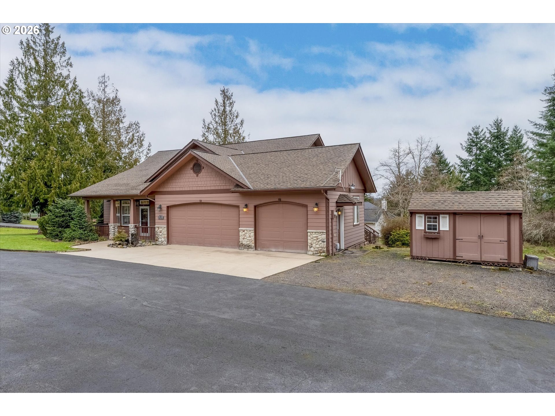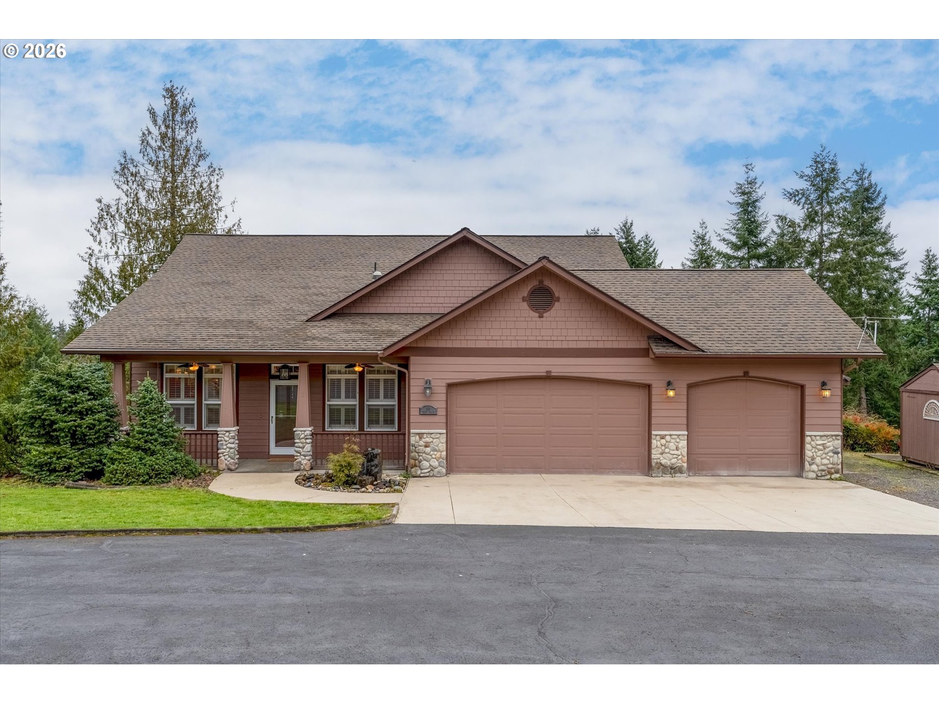 (503) 893-8874Tucked away on nearly two private acres, this quality-built home offers peaceful country living with easy access to town. The great room design features vaulted ceilings, formal dining room and office, abundant natural light, and a stunning river rock fireplace. The main-level primary suite includes a soaking tub and two walk-in closets, while maple cabinetry and thoughtful finishes highlight the home’s craftsmanship throughout. Upstairs you’ll find two additional bedrooms, one full bath and a spacious bonus room—ideal for work, guests, or hobbies. Enjoy year-round comfort with a heat pump, ample parking with a three-car garage plus a three-bay shop, and relax on the deck overlooking a serene, treed setting. Designed for both comfort and entertaining, the attached three-car garage includes an incredible finished party room complete with carpet and a pool table—ideal for game nights and gatherings. Just 10 minutes to I-5 and close to the lake—privacy, space, and convenience all in one.