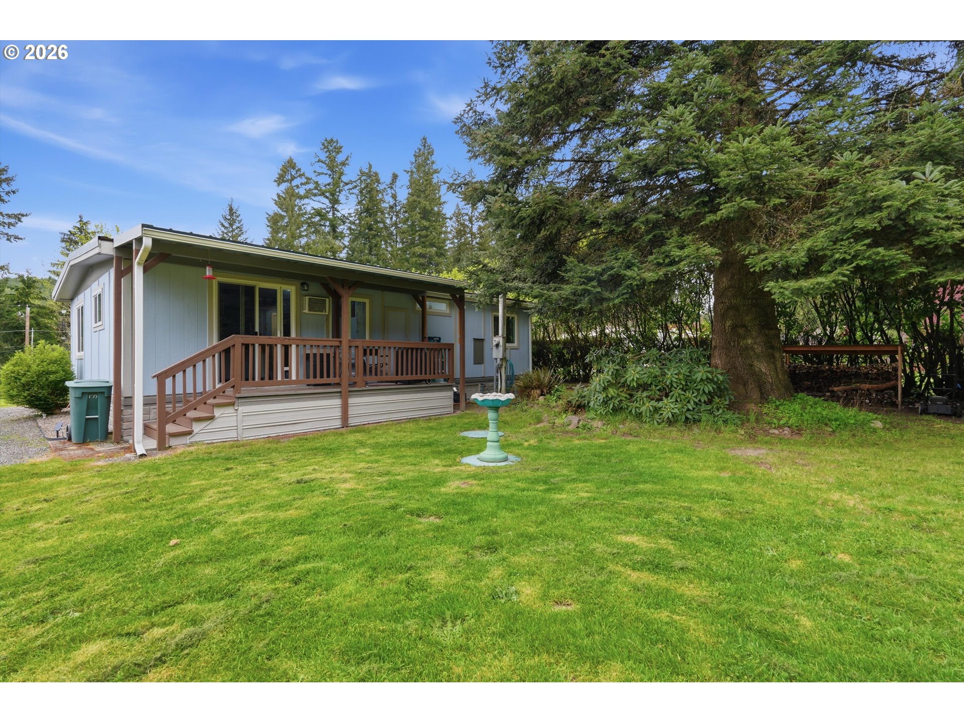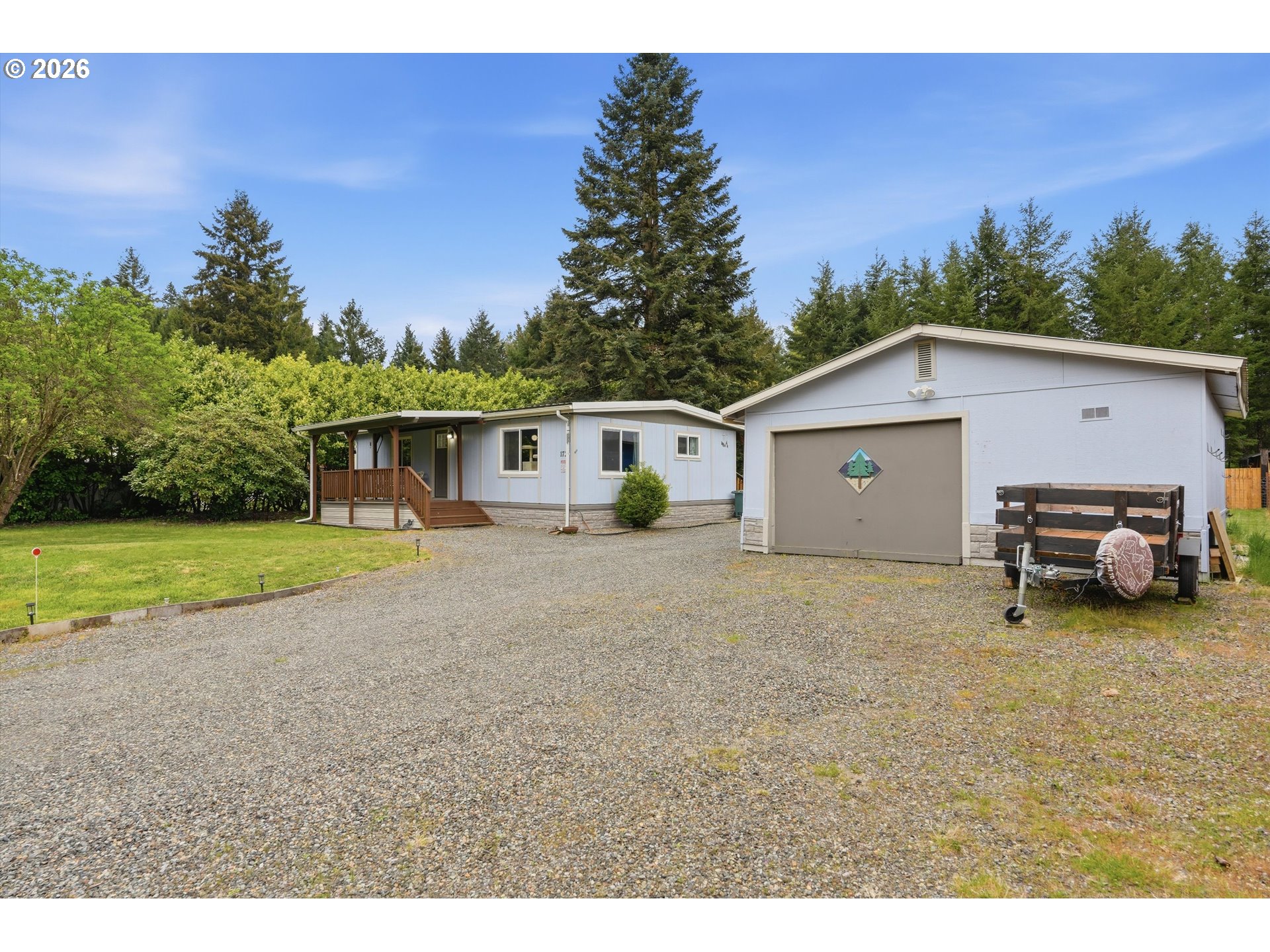 Nestled in the peaceful setting of Castle Rock, this extensively updated manufactured home sits on 0.46 acres, offering privacy and the calming sound of the river just across the street. Major system upgrades have already been completed, including new PEX plumbing, drain lines, septic system, water heater, and forced air unit (2022). The exterior has been thoughtfully improved with a metal roof (2023), new siding and weather barrier (2024), vinyl windows, gutters, and awnings over both front and rear decks.Inside, you’ll find updated sinks, faucets, toilet, LED lighting (2025), GFCI outlets, and a wall-mounted A/C unit for added comfort. Additional improvements such as new skirting with rodent barrier, ground and floor barriers, corner anchors, and removed axles provide long-term stability and peace of mind. The property features a fully fenced backyard (2025), plus a detached garage with shop space, updated lighting, and work benches. Ample parking available. Low HOA of $125/year includes access to a private fishing and camping area.