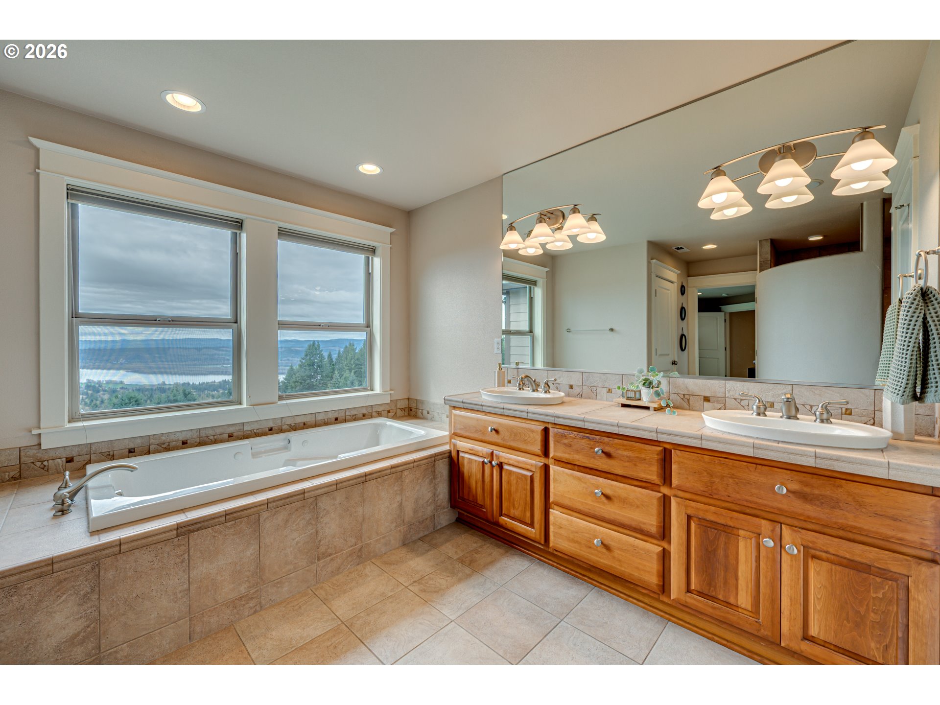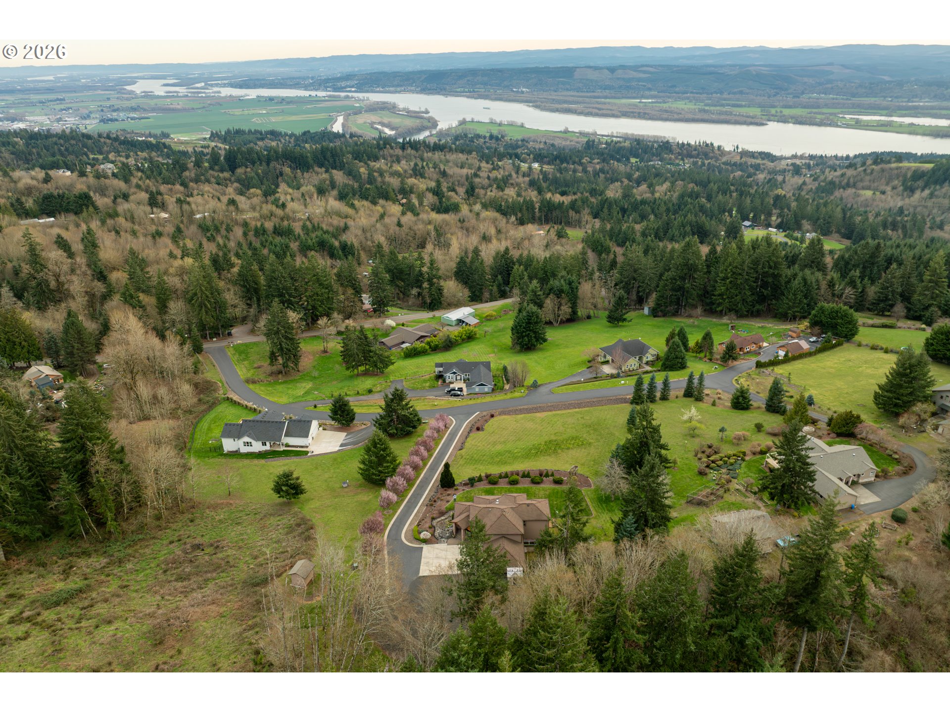 (503) 893-8874Custom home with sweeping Columbia River, city, and valley views. Nearly every window is positioned to capture natural light and the views. One owner home that has been meticulously maintained. Expansive floor plan offering over 4,580 square feet with 5 bedrooms, an office, flex space, bonus room, and theater room. Gourmet kitchen features granite countertops, cherry cabinetry, gas appliances, walk-in pantry, and it is open to the main living areas. Walkout basement extends to a concrete patio and is plumbed for a future hot tub. Tri level HVAC zoning provides efficient and comfortable climate control throughout. Thoughtfully designed property with paved driveway, 3 car attached garage, RV parking, and generous additional parking. Electrical panel in place for future shop. Serene setting enhanced by a handcrafted koi pond. Located just 40 minutes to PDX and under 10 minutes to I-5.