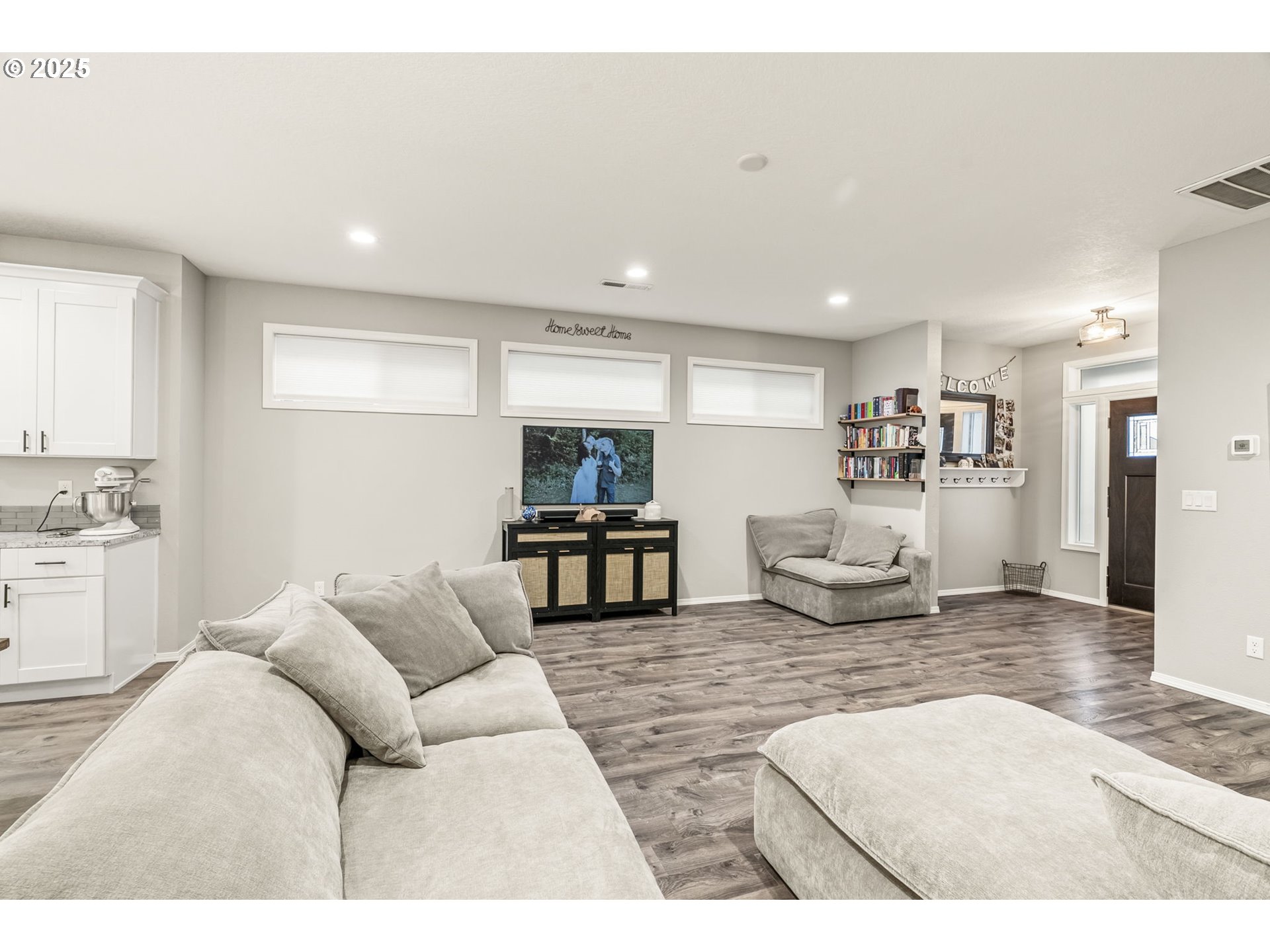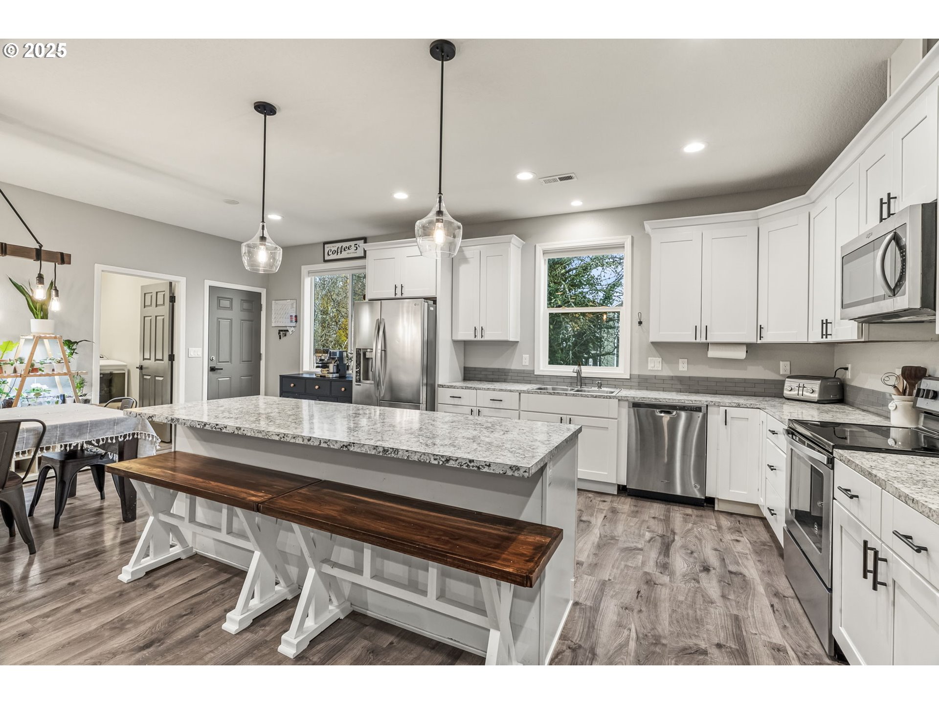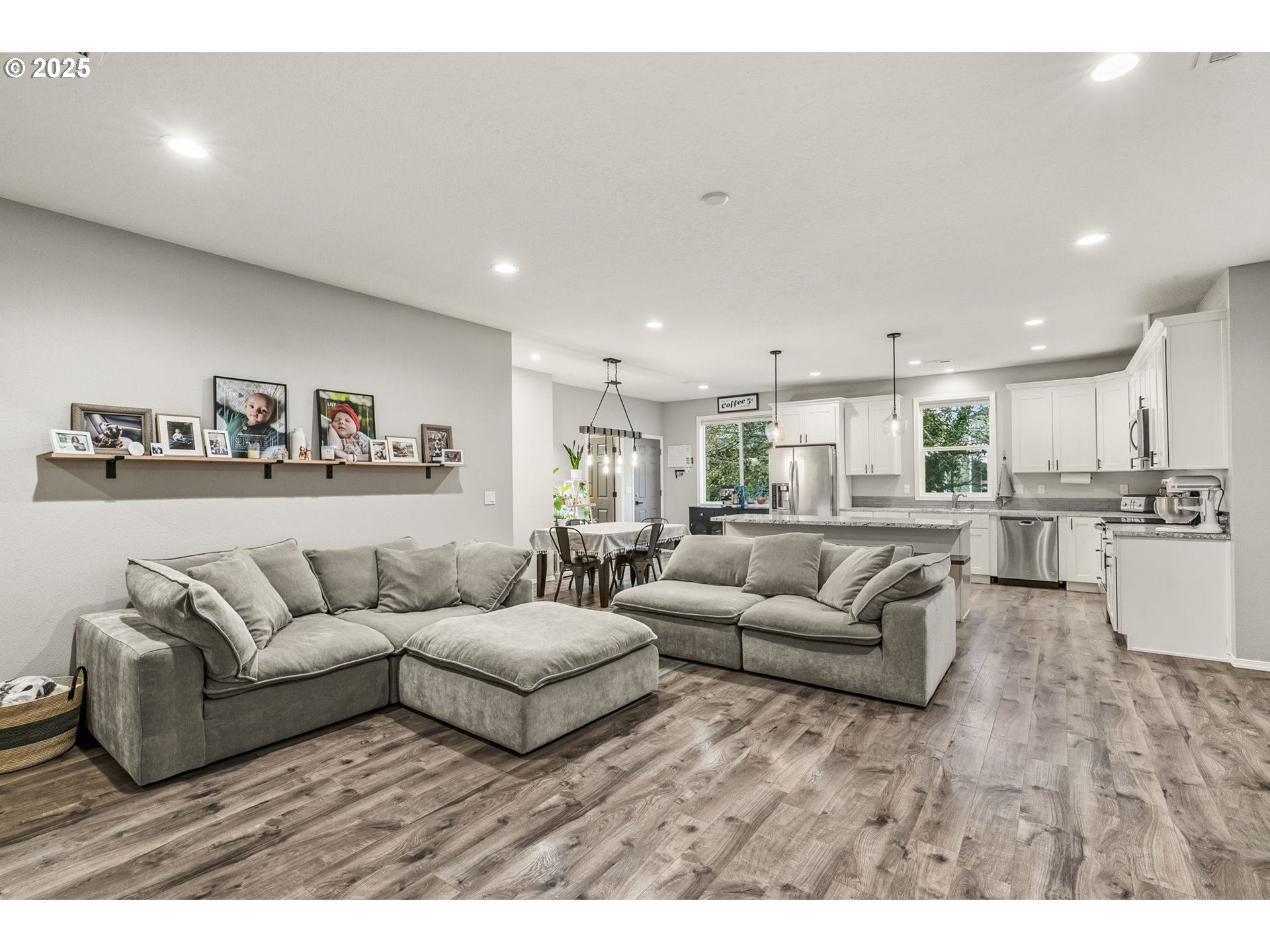 Discover the perfect blend of function, style, and comfort in this inviting 3 bedroom, 2 bath home featuring high ceilings, an open layout, and generous room sizes. The elevated design sits a one level plan above a massive garage with space for 5–6 cars plus! Perfect for hobbies, storage, or extra workspace. Relax in the fenced backyard around the firepit or watch squirrels and birds from the kitchen window. Two closets in the primary bedroom! Lots of storage throughout. Clean and bright with neutral color choices and easy care materials. This home offers convenient access to nearby schools, parks, churches, downtown Woodland, and freeway connections. Minutes from Lewis River and Horseshoe Lake for summer fun. Home in the center of it all!