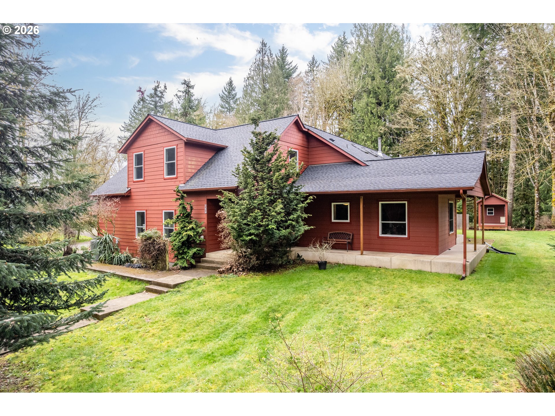 Remarkable custom built home nestled on 2.7 acres with an incredible shop. This stunning home with new roof and windows, features 3 bedrooms and 2.5 baths and showcases exceptional craftsmanship with warm fir floors, inviting living room with rock surround and free standing woodstove. The kitchen blends charm and function with granite counters, wonderful cabinetry and Viking range, making it the perfect place for both everyday living and entertaining. You will love the wrap around porch to enjoy all year long. A standout feature of this property is the 48x60 shop with RV height doors ideal for all your toys and hobbies, and an exercise room and hobby space with 3/4 bath and heated. This home was built with energy efficiency in mind with insulated concrete forms for year round comfort. With space, quality craftsmanship and adream shop this one of a kind property offers the perfect balance of comfort and functionality. You will love the fenced garden area and greenhouse. Close to the I 5 corridor.