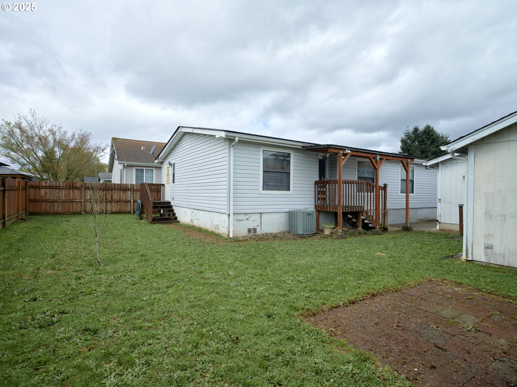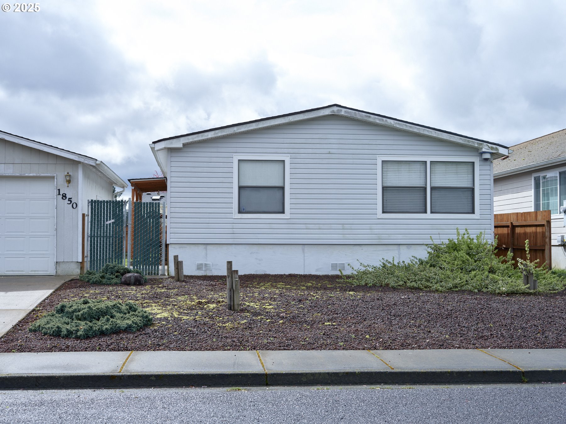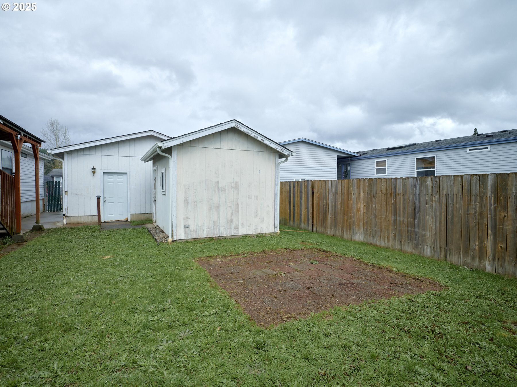 Roomy 3 bedroom 2 bath Dbl wide MH on its own lot with detached Dbl garage, garden shed and big fenced backyard. Spacious open concept living & dining room with vaulted ceilings, big primary suite w/ensuite bath and WI closet. Bring your tool kit needs some TLC to make it shine. Nice Woodland neighborhood close to shops and recreation.