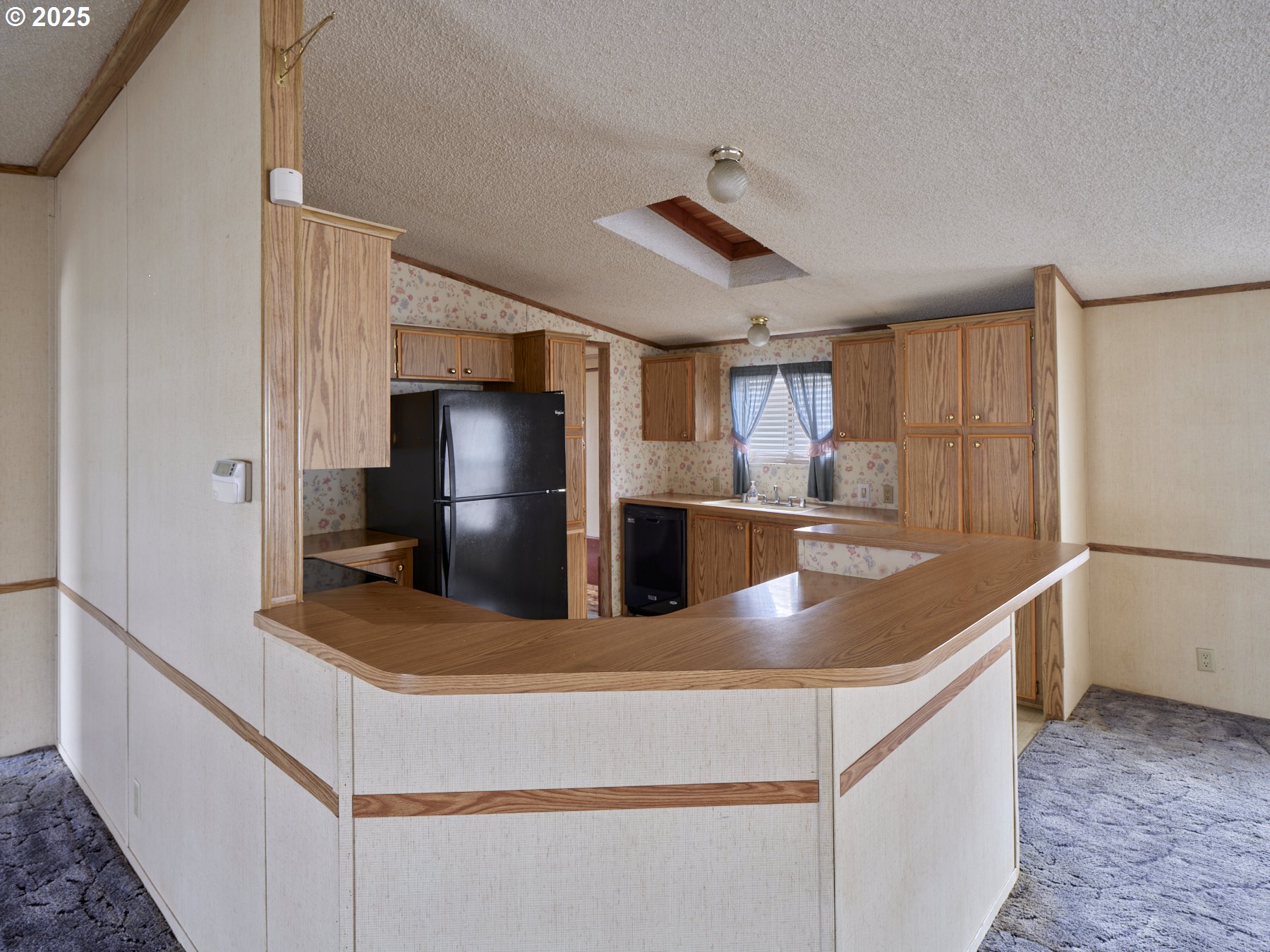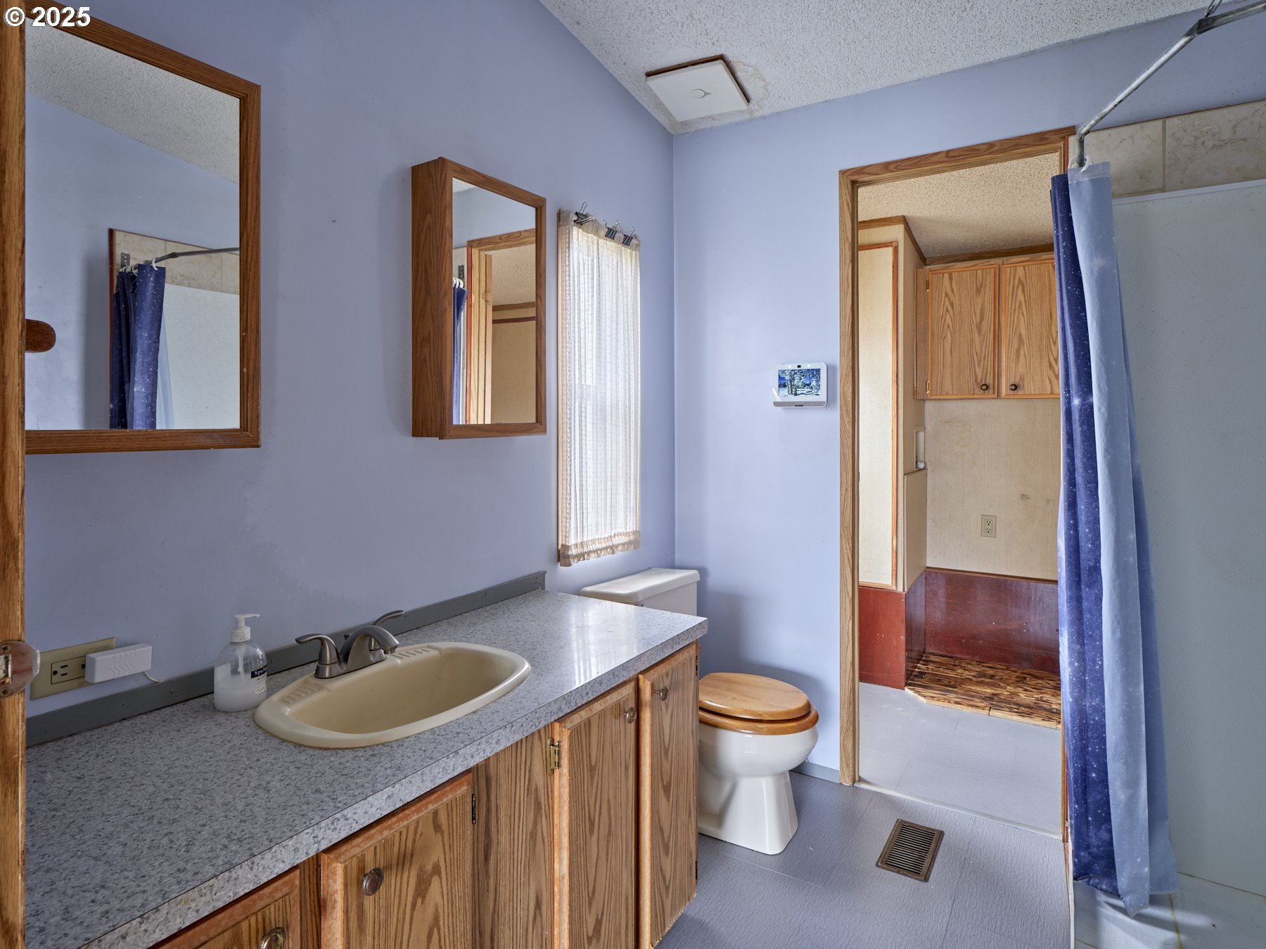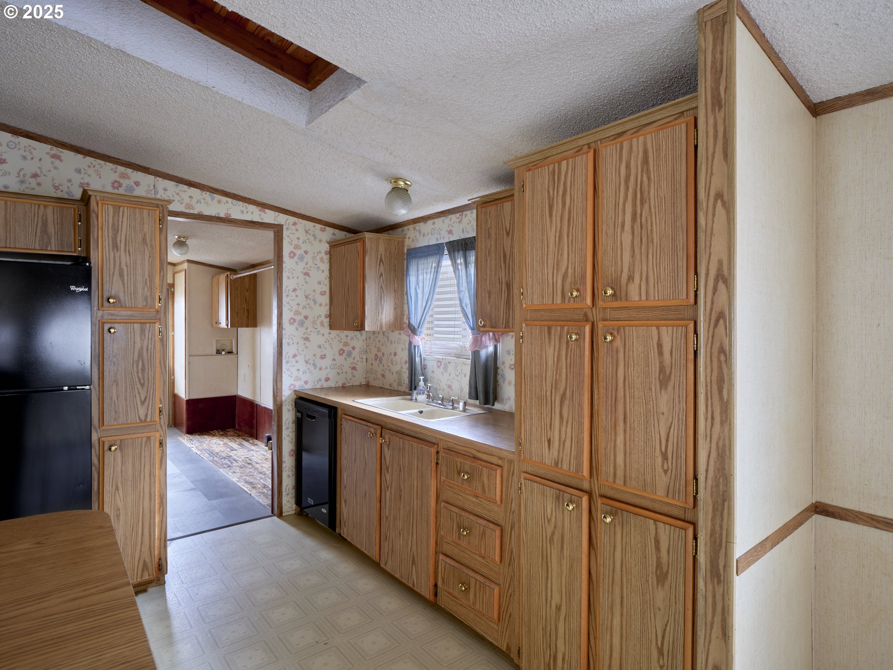 Roomy 3 bedroom 2 bath Dbl wide MH on its own lot with detached Dbl garage, garden shed and big fenced backyard. Spacious open concept living & dining room with vaulted ceilings, big primary suite w/ensuite bath and WI closet. Bring your tool kit needs some TLC to make it shine. Nice Woodland neighborhood close to shops and recreation.