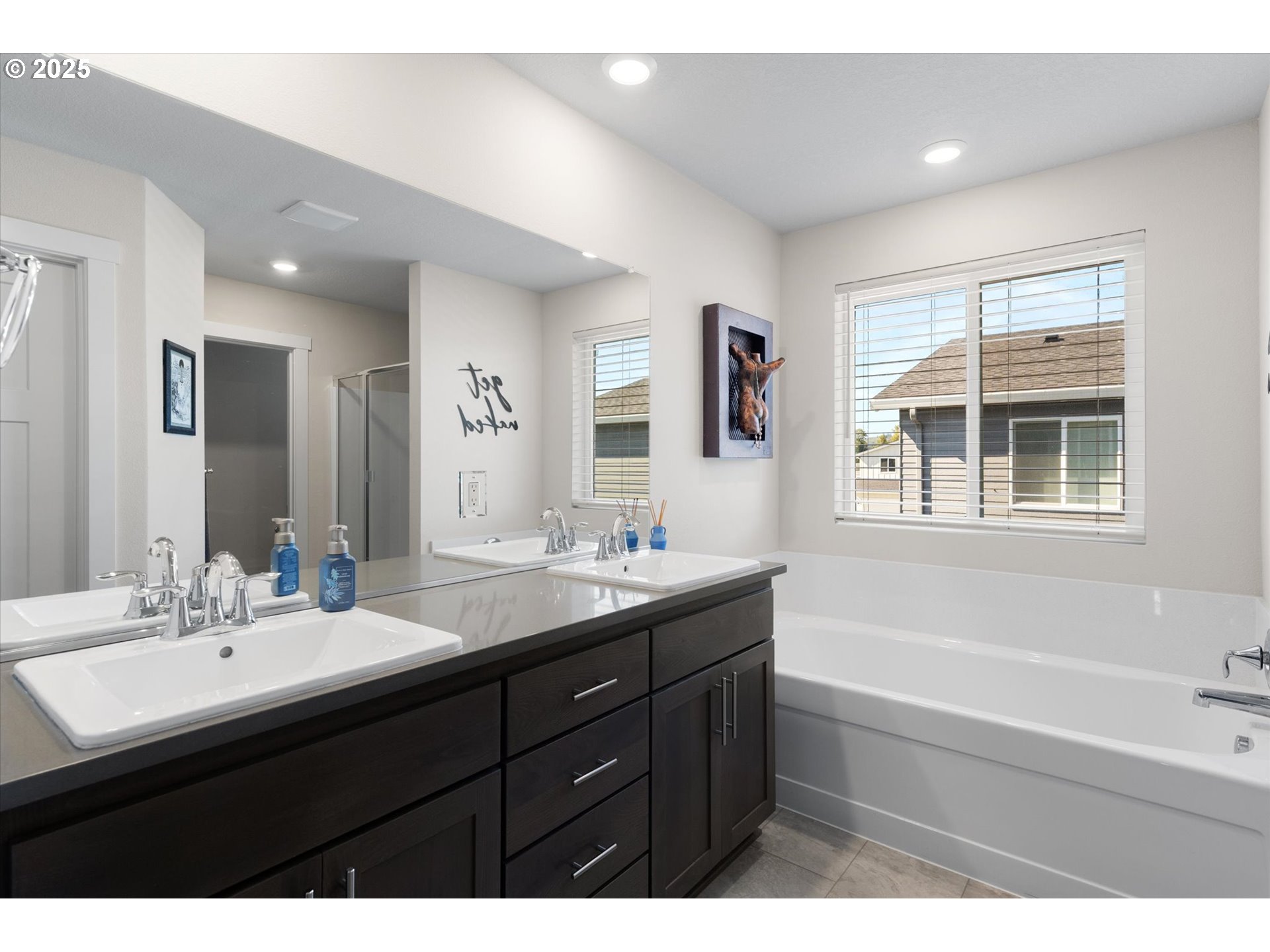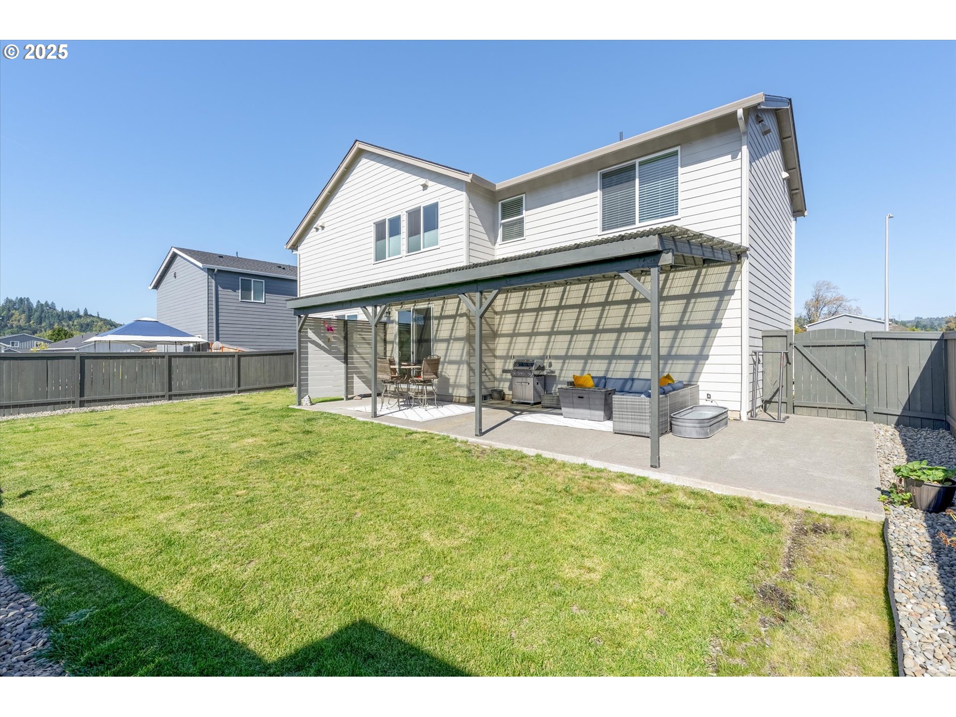 Discover your dream home in this stunning 2023 Lennar home. This spacious 3-bedroom, 2.5 bathroom offers over 2,300 sq ft. of luxurious living space. Enjoy LVP flooring throughout the main floor, featuring a beautifully designed den/office with glass double doors.. The gourmet kitchen boasts upgraded quartz countertops, a stylish tile backsplash, a large kitchen island with extra cabinets, and a walk-in pantry. Upstairs, double doors lead to the primary suite with a lavish master bath, double sinks, a soaking tub, and a walk-in shower. A tiled bonus room upstairs adds versatility. With 9-foot ceilings and an elegant tiled gas fireplace, this home is perfect for entertaining, complemented by a large front and backyard with irrigation, and a huge covered back patio Located 2 minutes from the Willow Grove boat launch for fishing and water sports. The community has a 5.5-acre park with a basketball court and picnic areas. 3.4 miles to Peace Health hospital.