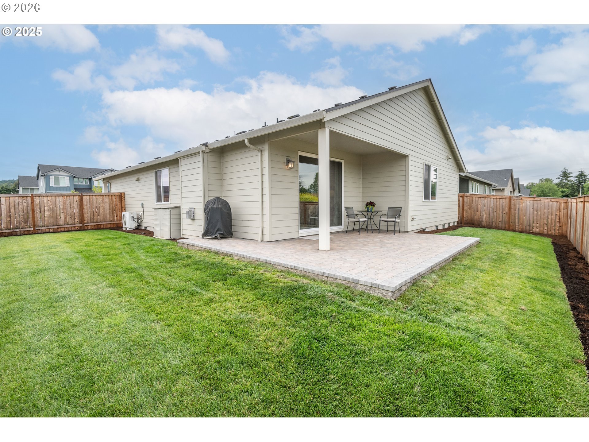 Better than new! Built in 2021, this 1,658 sq. ft. home features so many upgrades, there is nothing left to do! 3 bedrooms plus den/office and 2 bathrooms with tile floors. Kitchen with island, granite counters & upgraded stainless steel Samsung appliances & pantry. Laminate in main living areas including living room with gas fireplace & slider to fully fenced backyard with paver patio. Primary bedroom with walk-in closet, bathroom with double sinks, tile shower & granite counters. 2 additional bedrooms plus office with French doors off entry. LG washer & dryer. Whole house water treatment system, 3M UV protectant security film on windows. Attached 2 car garage with overhead storage. Start packing, this is your new house!