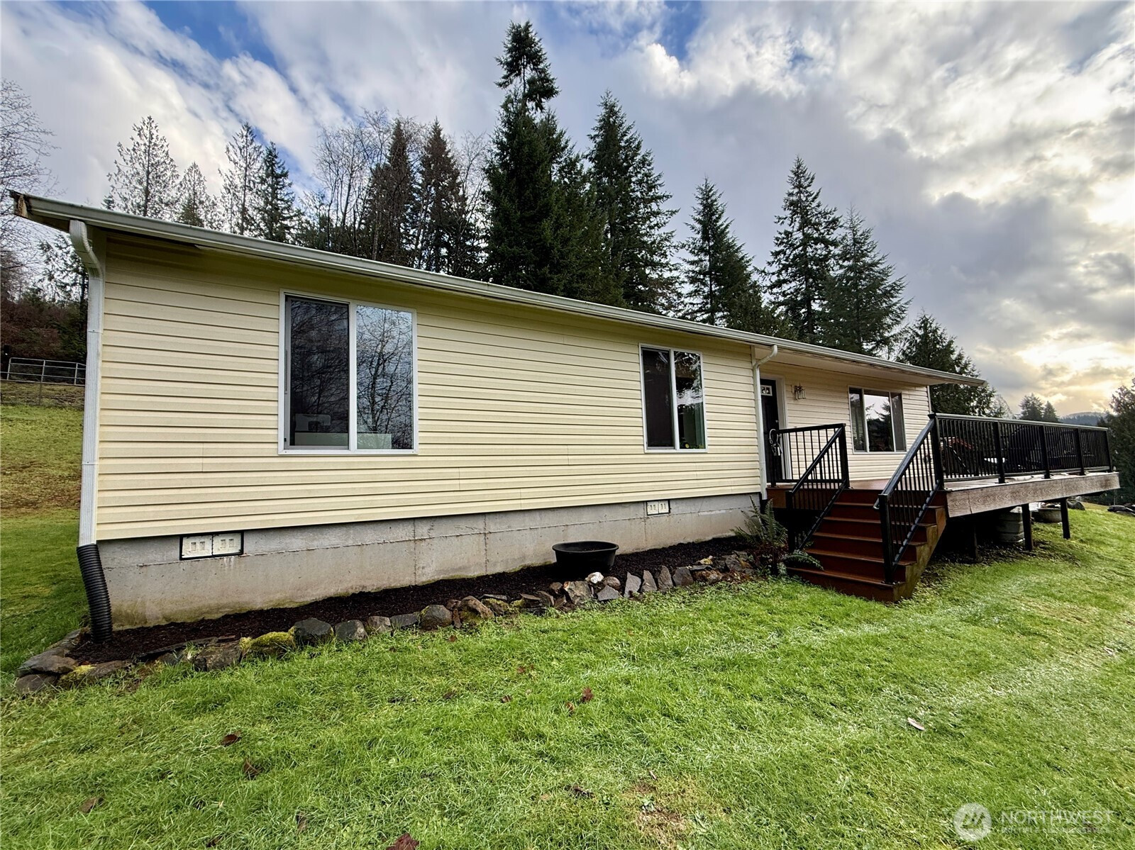 Country living at its best awaits at 2037 Delameter Rd. This well-designed HiLine home features vaulted ceilings and an open-concept great room where the kitchen, pantry, dining, and living areas come together perfect for everyday living and entertaining. Step outside to the expansive back patio, ideal for barbecuing or relaxing while taking in the peaceful surroundings. Set on 5.75 acres, the property includes outbuildings, fencing, and creek access, making it an excellent option for a hobby farm or those seeking space and privacy. The laundry room conveniently doubles as a mudroom between the kitchen and garage. The primary suite offers a spacious walk-in closet and private bath with tub and shower. Enjoy a compact, functional layout just approximately 12 minutes from I-5 access.