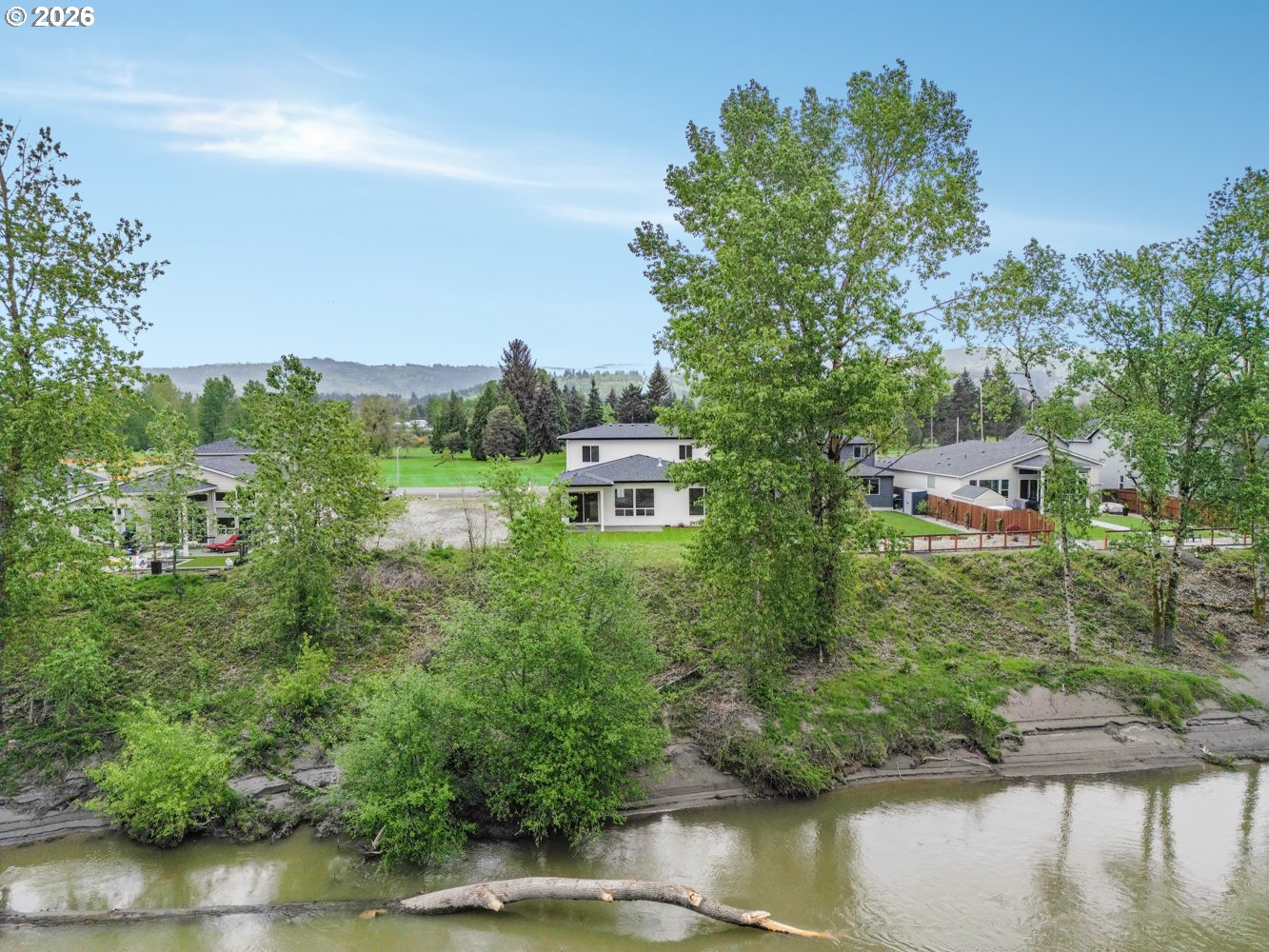 Set along the scenic banks of the Cowlitz River, this home offers a rare blend of luxury, comfort, and Pacific Northwest beauty. This exceptional riverfront property boasts direct access to the serene waterway and enjoys prime frontage along the picturesque Three Rivers Golf Course, creating a truly tranquil and private setting. Inside, the home is thoughtfully designed with both elegance and functionality in mind. The kitchen is a standout feature, showcasing beautiful custom cabinetry with built-in enhancements, a gas cooktop, micro-oven combo, and a convenient eat bar—perfect for both everyday living and entertaining. Subtle brass accents throughout add warmth and sophistication. The main level hosts a spacious primary suite, offering ease of living with a spa-like bathroom complete with an oversized walk-in shower and a luxurious soaking tub. An additional office space on the main floor provides flexibility for remote work or creative pursuits. The inviting living room features custom built-in shelving and a cozy gas fireplace, creating a welcoming atmosphere year-round. Dual laundry areas on both upper and lower levels add convenience for multi-generational living or guests. Step outside to a beautifully manicured backyard designed for relaxation and enjoyment. A covered patio provides the perfect space for outdoor dining or unwinding while taking in the peaceful surroundings, while the lush, well-maintained lawn enhances the home’s overall curb appeal. With its unique combination of river access, golf course frontage, and high-end interior features, this property offers a lifestyle that is both refined and effortlessly connected to nature.