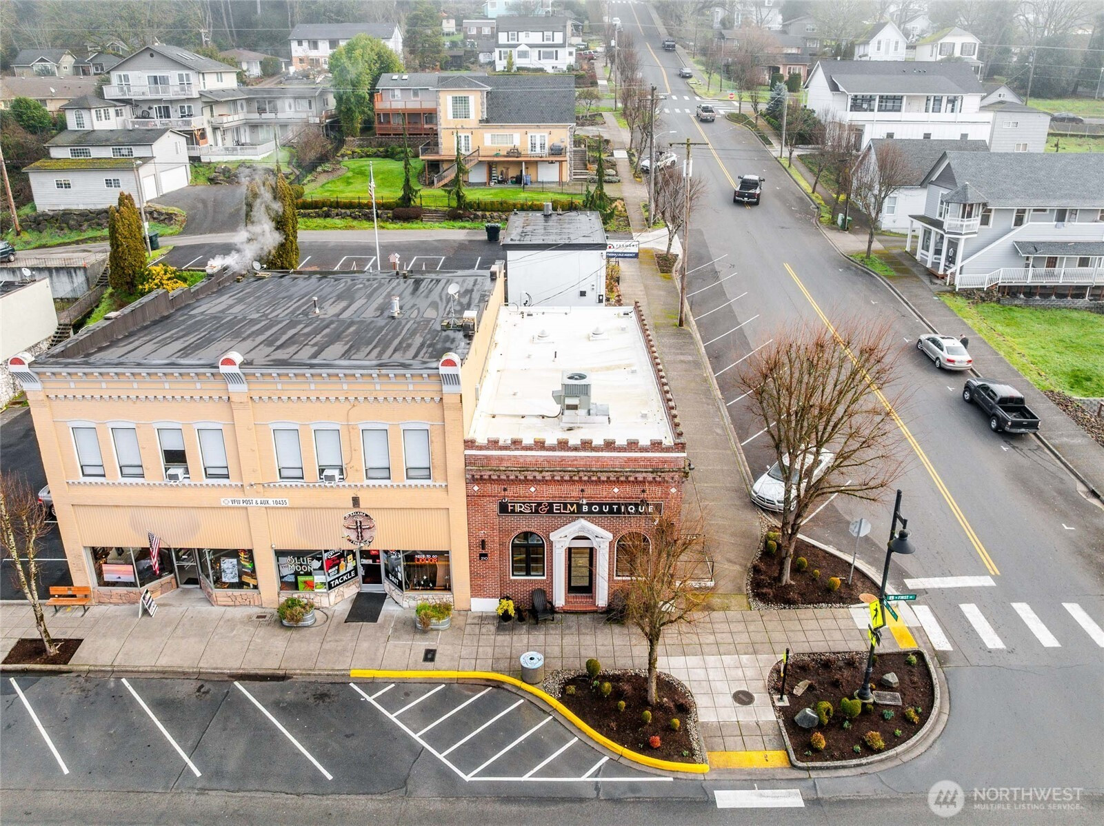 Historic brick commercial building in the heart of downtown Kalama, originally built in 1913 and was the State Bank. Over the years it has housed the post office, restaurants, and retail shops. The interior was fully refreshed in 2017 with new windows, flooring, lighting, and paint, creating a clean and functional space while maintaining its character. Three levels offer excellent flexibility. The lower level includes two rooms, a full bathroom, and a kitchenette ideal for storage, prep, or office use. The main level features counter space ready for reception or checkout. A beautiful wood staircase leads to an open upper level with its own exterior entrance, providing additional possibilities for retail, office, studio, or event space. This is a prime downtown location with endless potential for its next chapter.