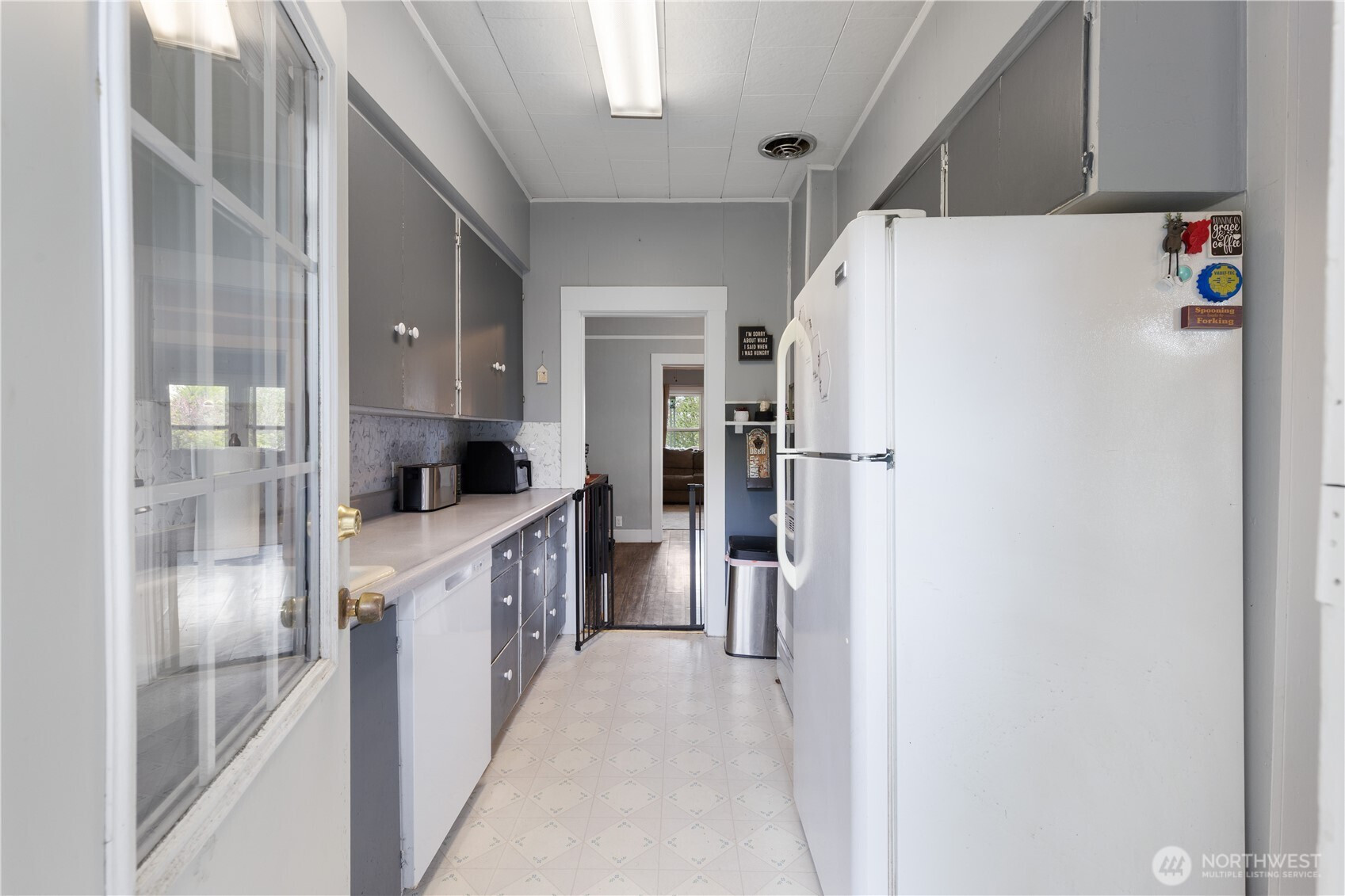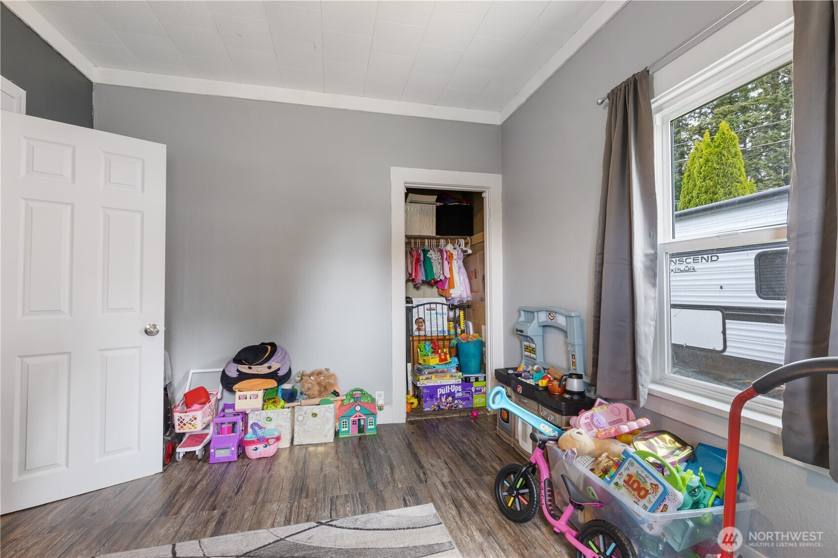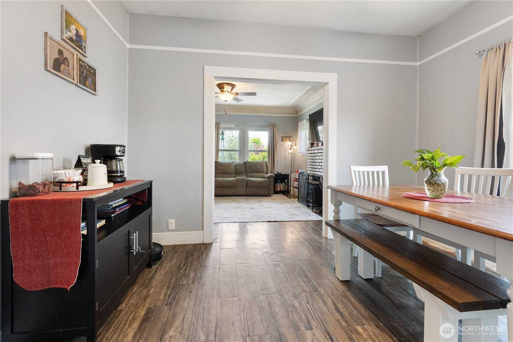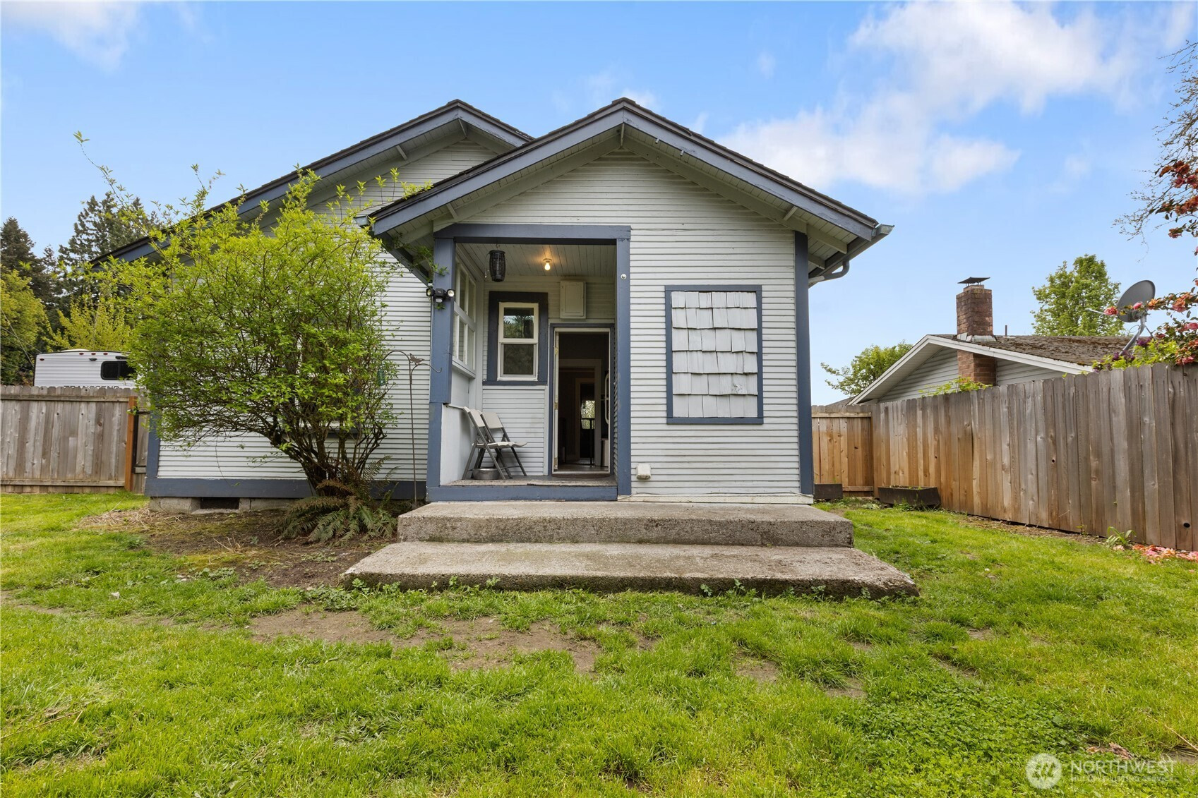 Charming 2-bed, 1-bath home on a corner lot! This inviting property features a fully fenced backyard with a plum tree, perfect for outdoor enjoyment. Inside, you’ll find original hardwood floors hidden beneath existing floor coverings, offering an opportunity to restore timeless character. Stay comfortable year-round with newer double-pane windows and a cozy wood-burning insert. The roof is approximately 5 years old for added peace of mind and room for RV or boat parking. Enjoy relaxing mornings or evenings on the covered porch. A wonderful blend of charm, potential, and practicality. Don’t miss this one!