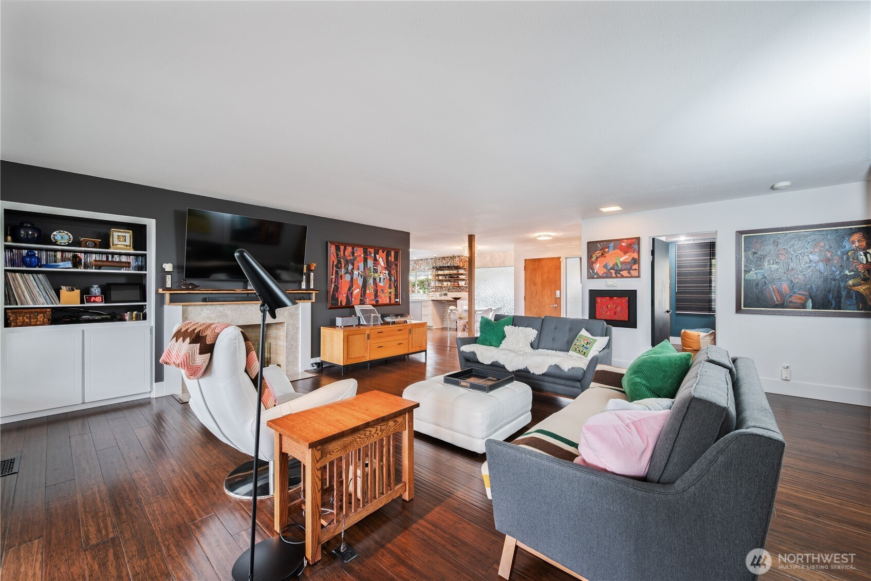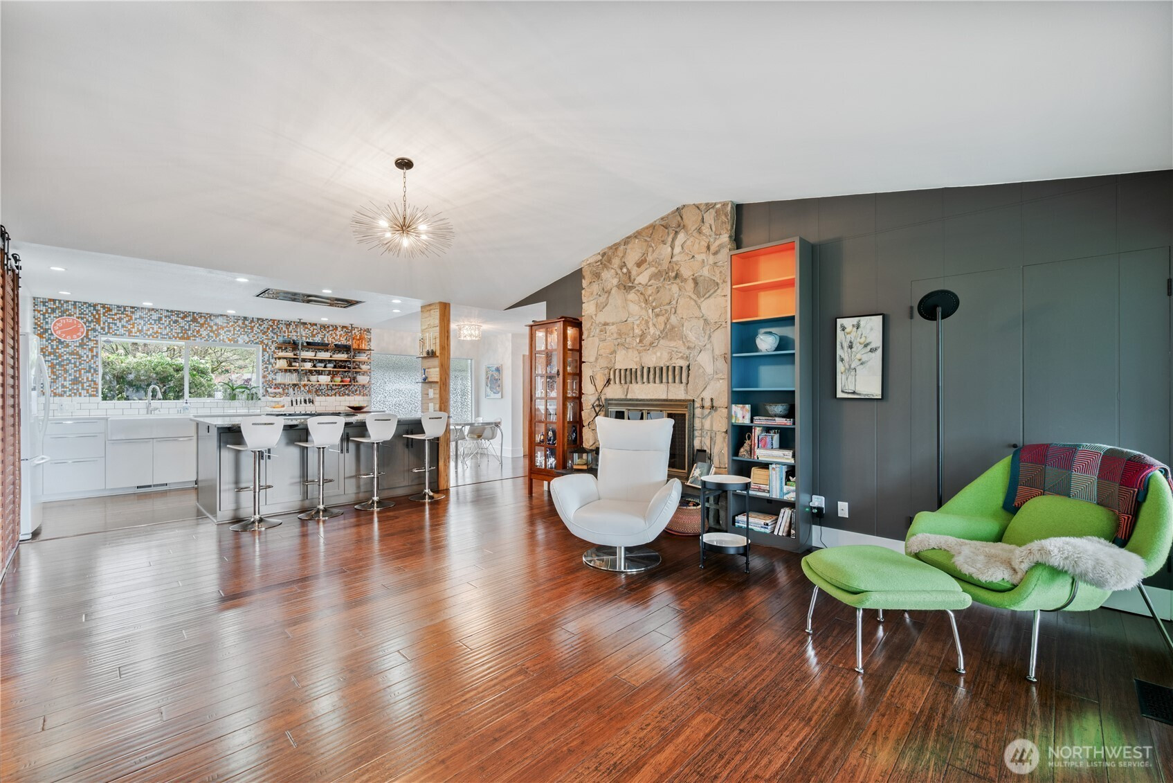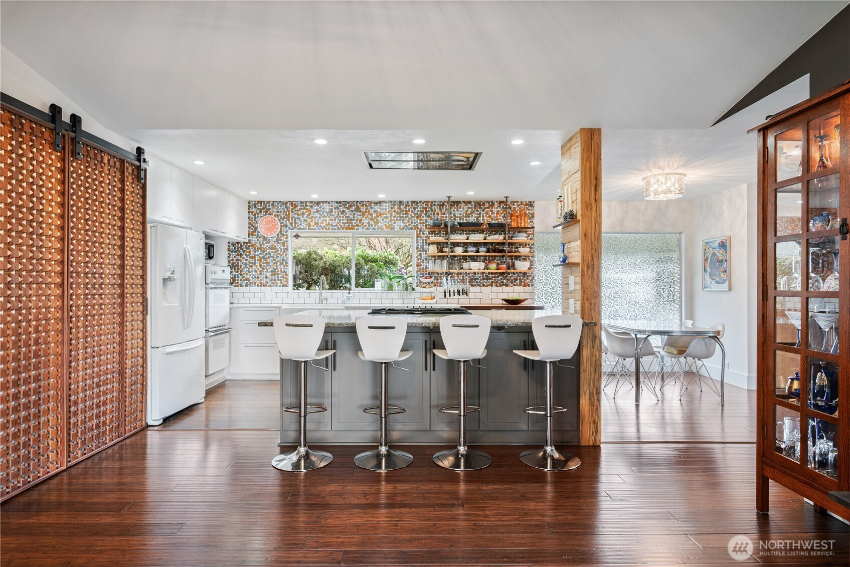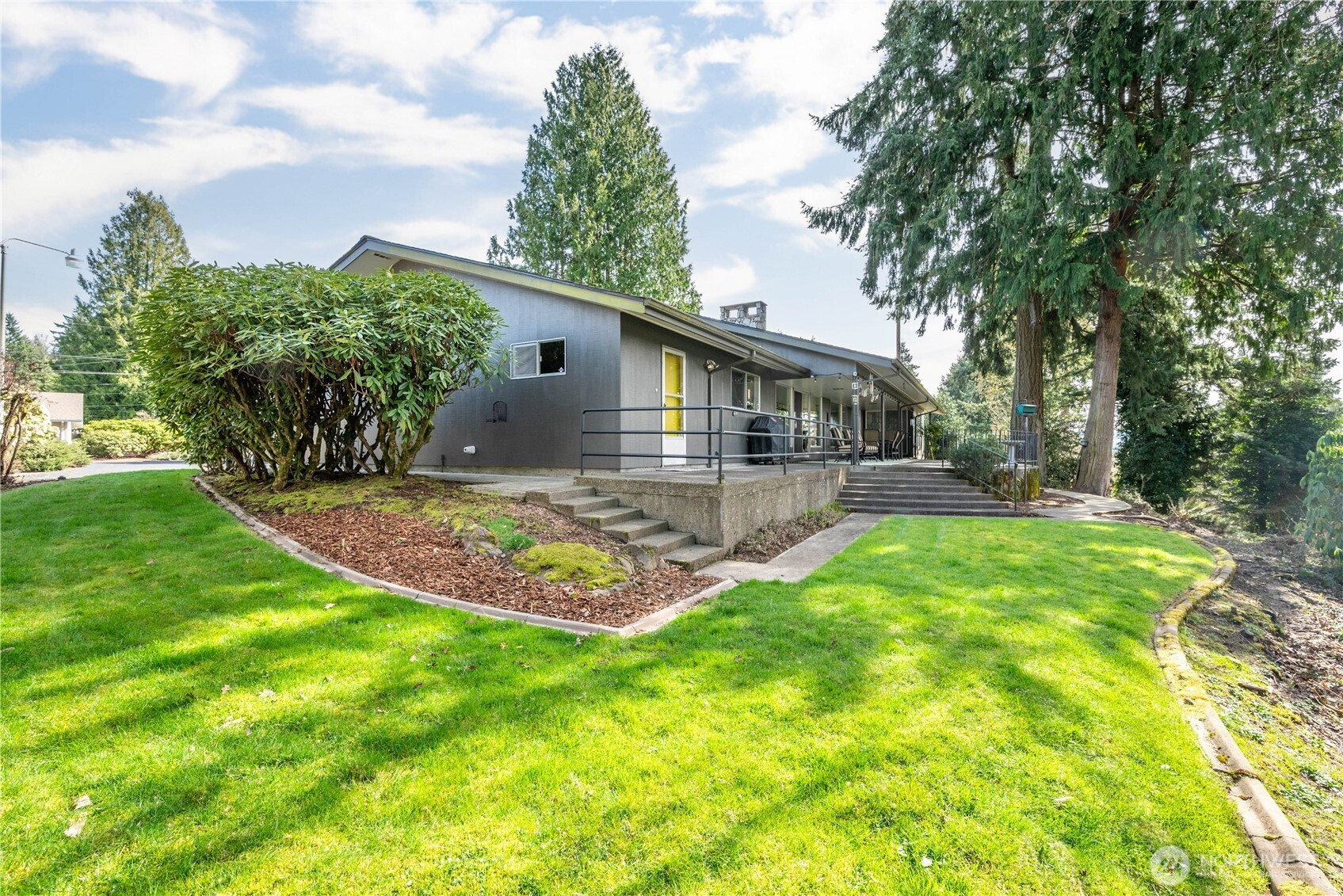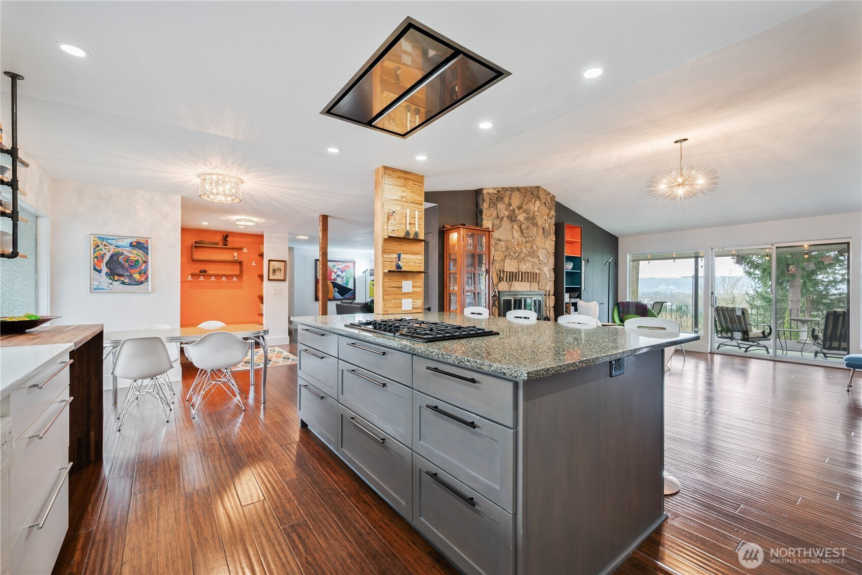 Views & vintage vibes! This updated mid-century modern home sits on over an acre with views of the Columbia River, Lewis & Clark Bridge & valley below. Designed by local architect Keith Woollen, it perfectly blends timeless style with modern upgrades. One level living with natural light, large windows and seamless flow to a spacious covered patio. Perfect for entertaining with open concept kitchen featuring custom Selix cabinetry, oversized island, Bosch gas range, pantry & wet bar. The dreamy primary suite features heated floors, a spa-like wet room & massive custom closets. Restored vintage guest bath adds character. Gas & wood fireplaces, A/C, oversized 2 car garage, workshop & ample storage (340 sq. ft storage room below). Minutes to downtown, Lake Sacajawea & I-5.
