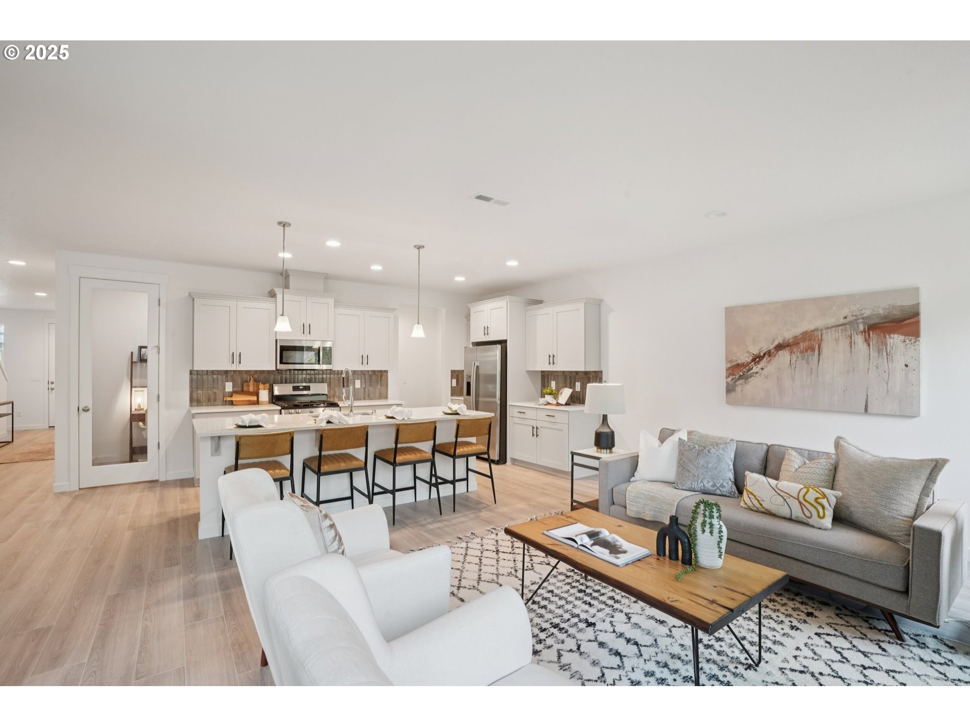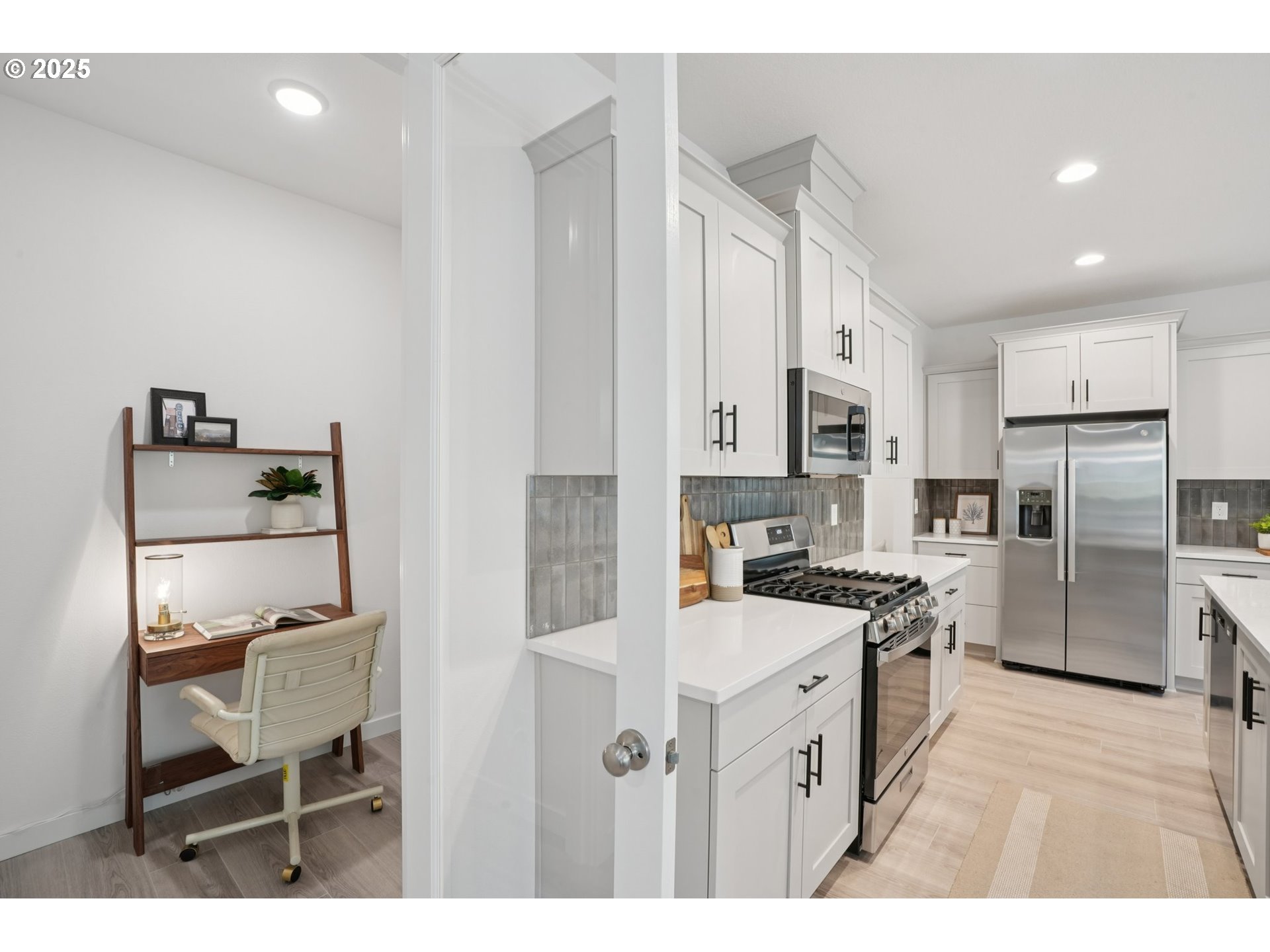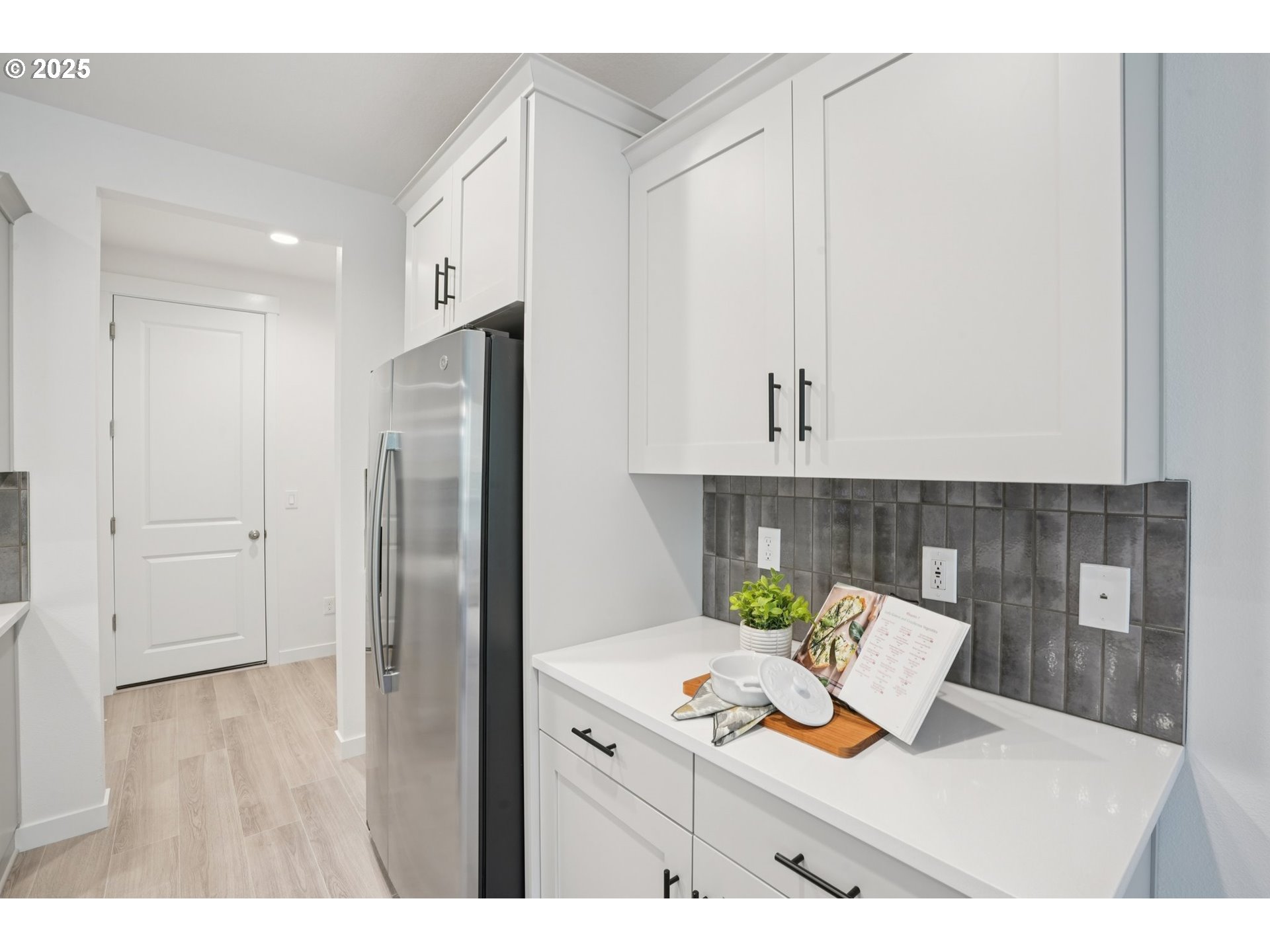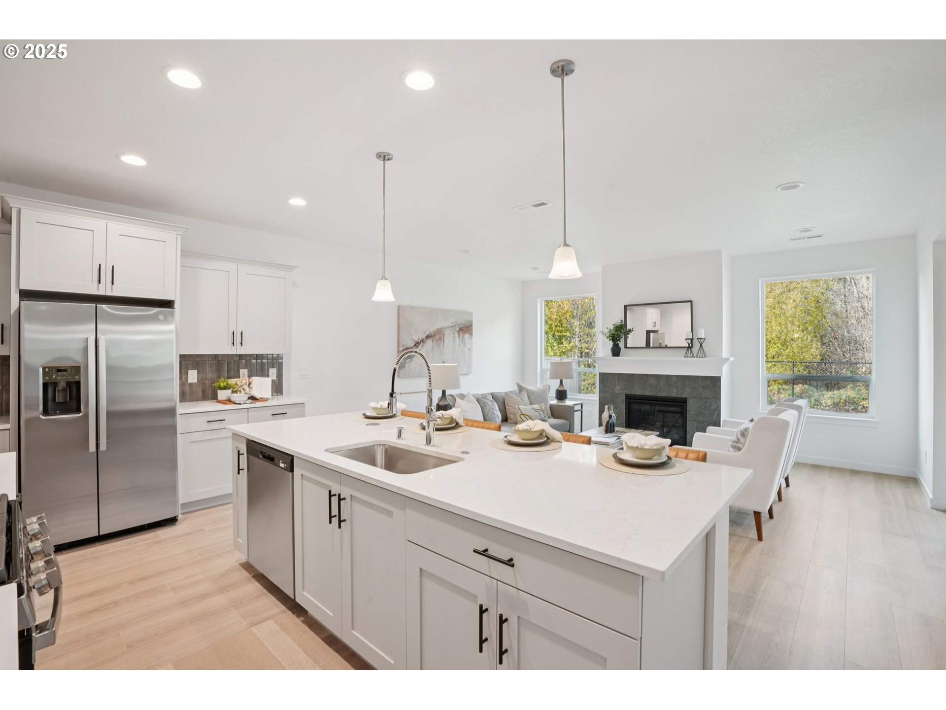 Move in Ready! Ask about Incentives! Introducing the 2184 Plan – modern living with thoughtful design. This open-concept home features a spacious great room with a gas fireplace, a gorgeous kitchen with a large quartz island, walk-in pantry now includes a stainless steel refrigerator! A convenient flex space/pocket office is located off the kitchen on the main floor. Upstairs, you'll find 3 bedrooms and a roomy loft, perfect for a second living space or play area. The spacious laundry room is centrally located between bedrooms for ease. The beautiful primary suite offers double doors, ensuite bathroom with a water closet, as well as an oversized walk-in closet. Enjoy privacy and greenspace views from the covered patio in your fully fenced backyard, complete with rear yard landscaping and irrigation!! Plus, the 3-car garage provides ample space for your vehicles, storage, and more! Come see all that this home has to offer, this home is an incredible value!! Sample photos - actual finishes may vary.