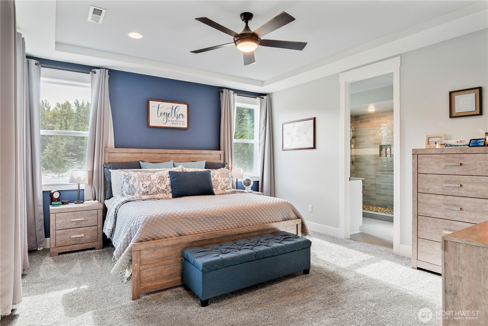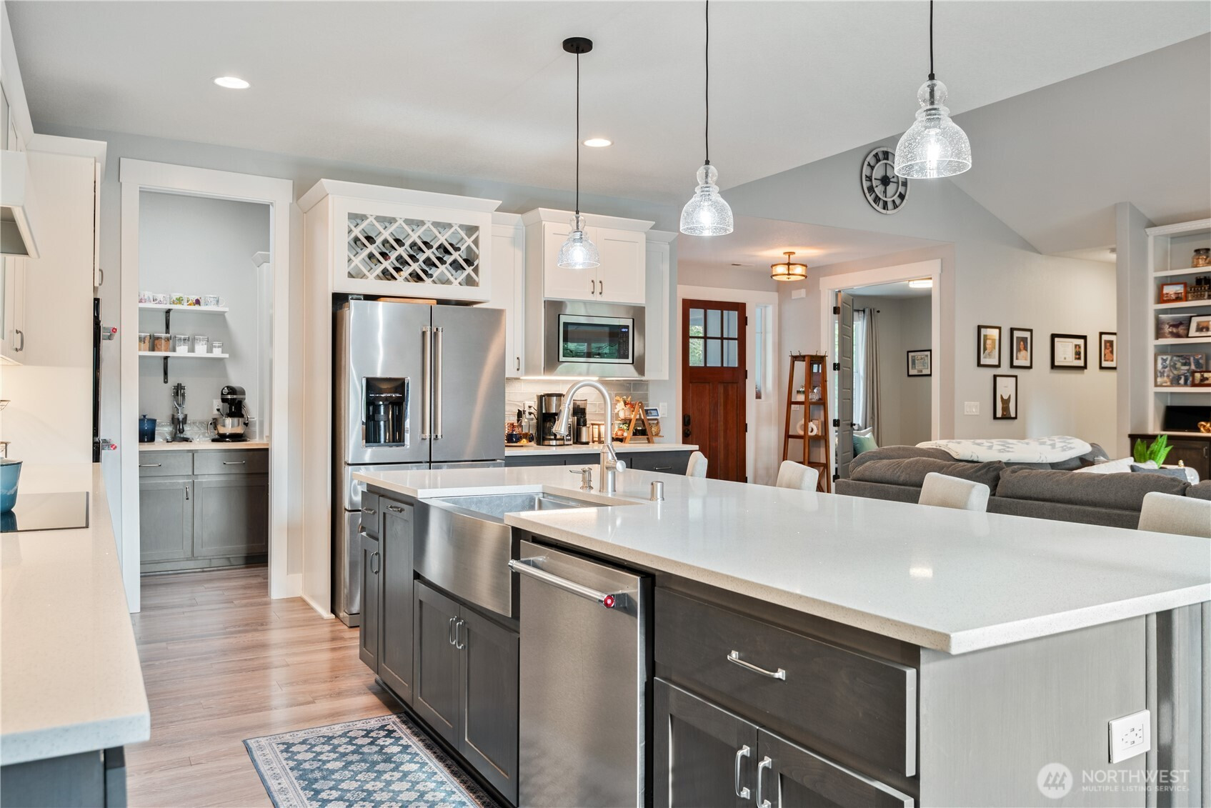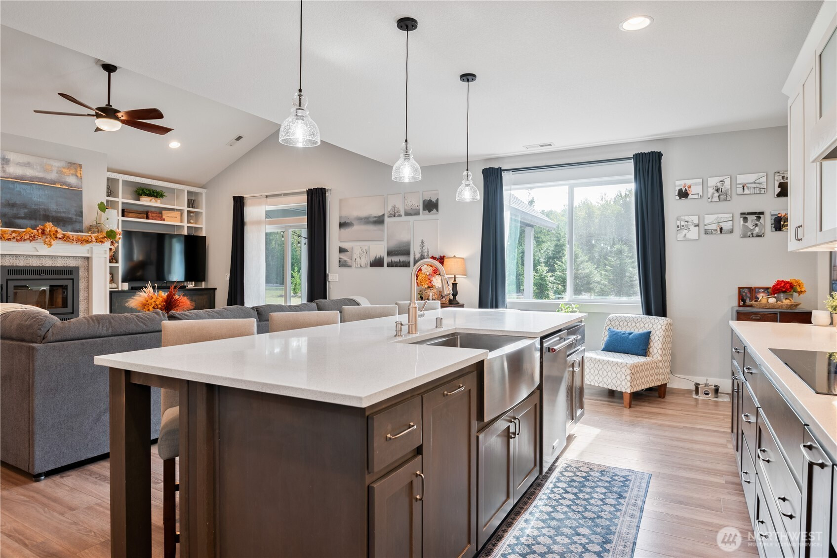 Welcome home to this custom built 4 bed, 3 bath retreat on 5 peaceful acres. With over 2,900 sf. of comfortable living space, this home blends quality craftsmanship with everyday warmth and amenities. You’ll love the beautiful 8’ doors, custom built-ins, quartz counters, wood burning fireplace and heated tile floors. Each bedroom includes a walk-in closet and bath. The kitchen features a spacious island and a butler’s pantry complete with a chilled beverage tap. Enjoy two cozy living spaces, a brewery room, and a 3 car garage with EV charging. Step outside and enjoy the spacious covered patio. Tucked in a friendly and gated HOA community with walking trails and a shared recreation area, this home is truly one of a kind and a must see!