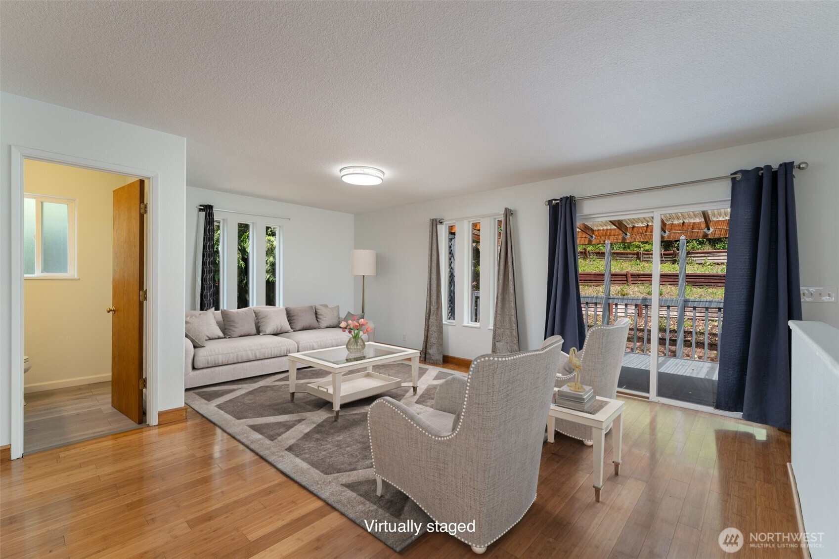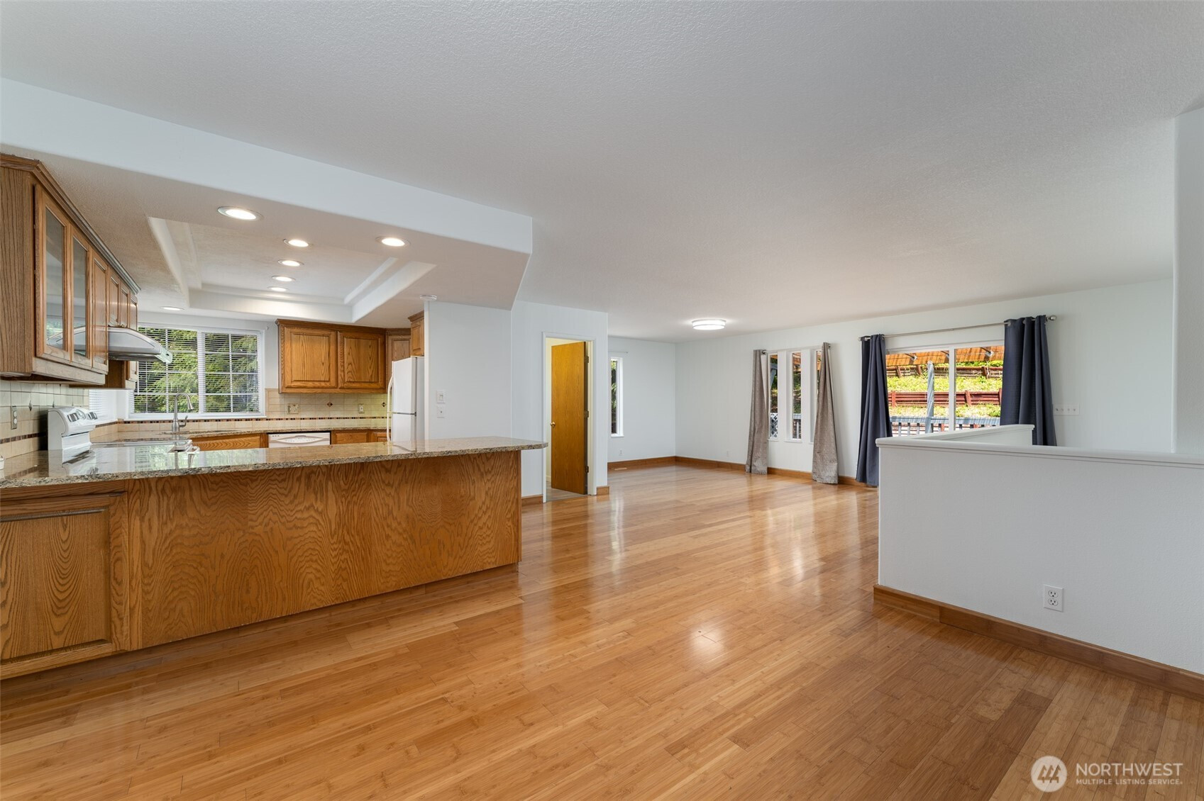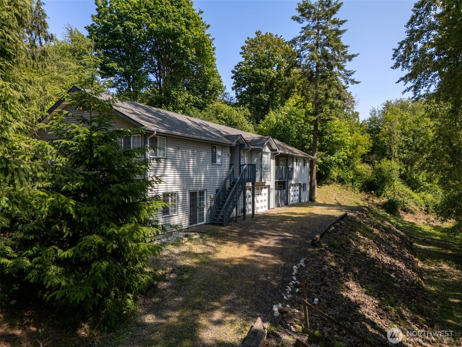 Tucked in a wooded setting and very close to I-5, this spacious and versatile home offers privacy, functionality, and room to spread out. The light-filled main living area features bamboo flooring and flows into an open kitchen with slab granite countertops, oak cabinetry, and ample workspace. Large windows invite natural light and views of the surrounding greenery.With 3 bedrooms and 2.5 bathrooms, the home provides comfortable everyday living with a flexible layout. The lower-level living area features new luxury plank flooring—ideal for a media room, guest space, or extended living. An upper-level bonus room offers additional versatility for an office, hobby space, or extra sleeping area.Enjoy outdoor living on the expansive deck, perfect for entertaining or relaxing in a serene setting. A second parcel enhances privacy and creates a natural green space buffer.Two double-car garages provide abundant room for vehicles, storage, or projects, with a separate rec room above the second garage for added flexibility. RV parking and convenient access to I-5 complete this well-rounded property.
